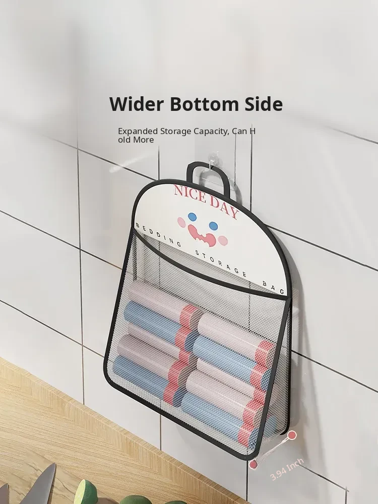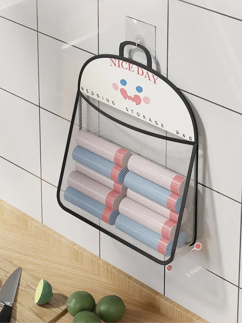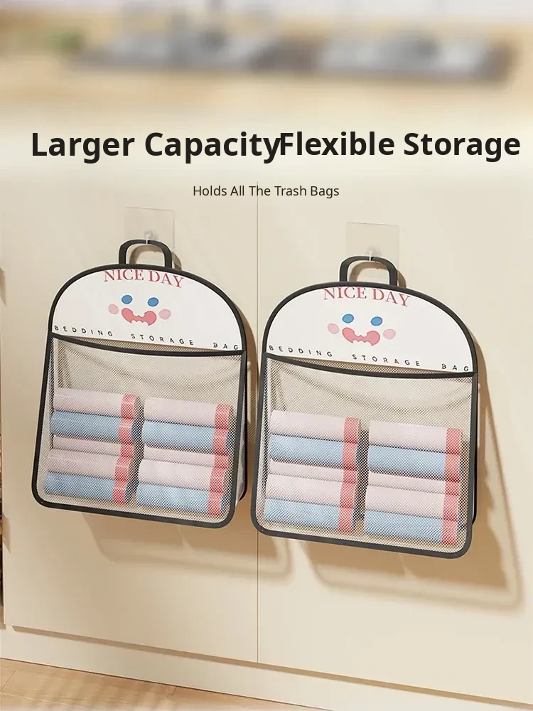 Wall-Mounted Large Capacity Garbage Bag Organizer - Perfect for Home and Kitchen, Conveniently Store Plastic Bags and Trash Bags in a Stylish Net Pocket