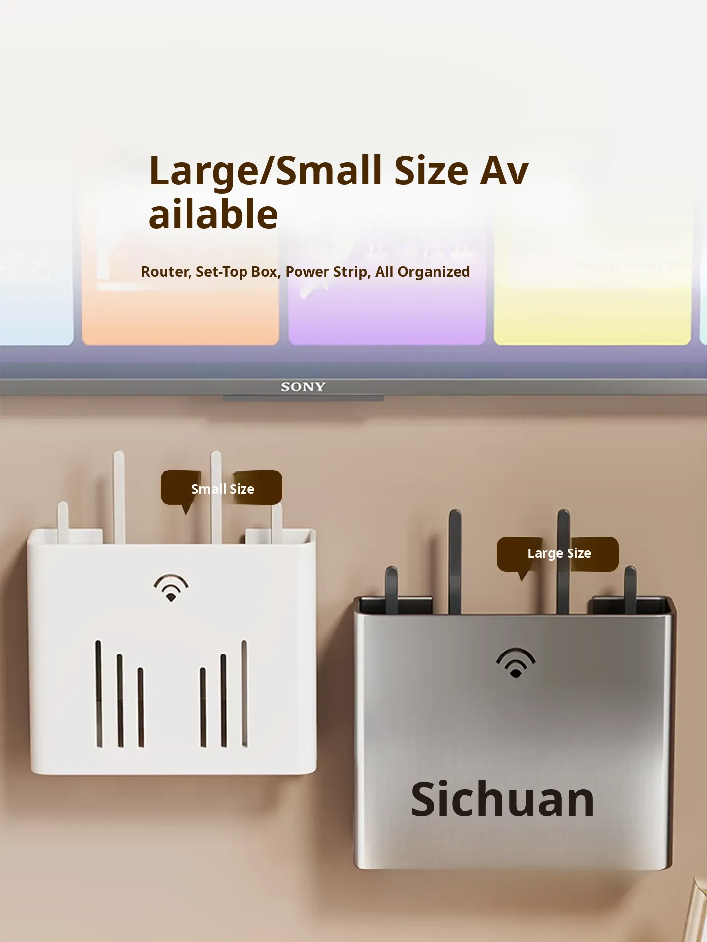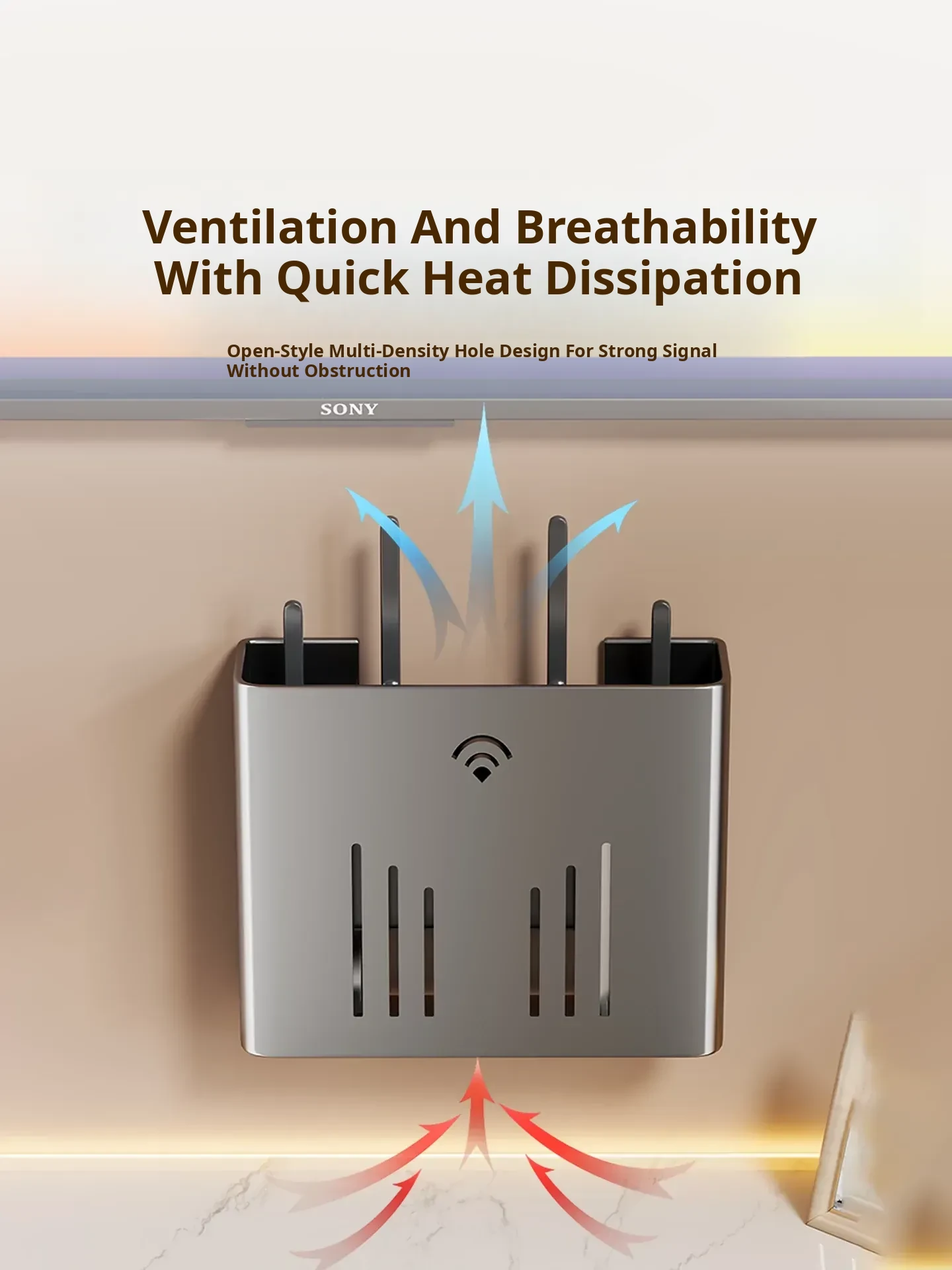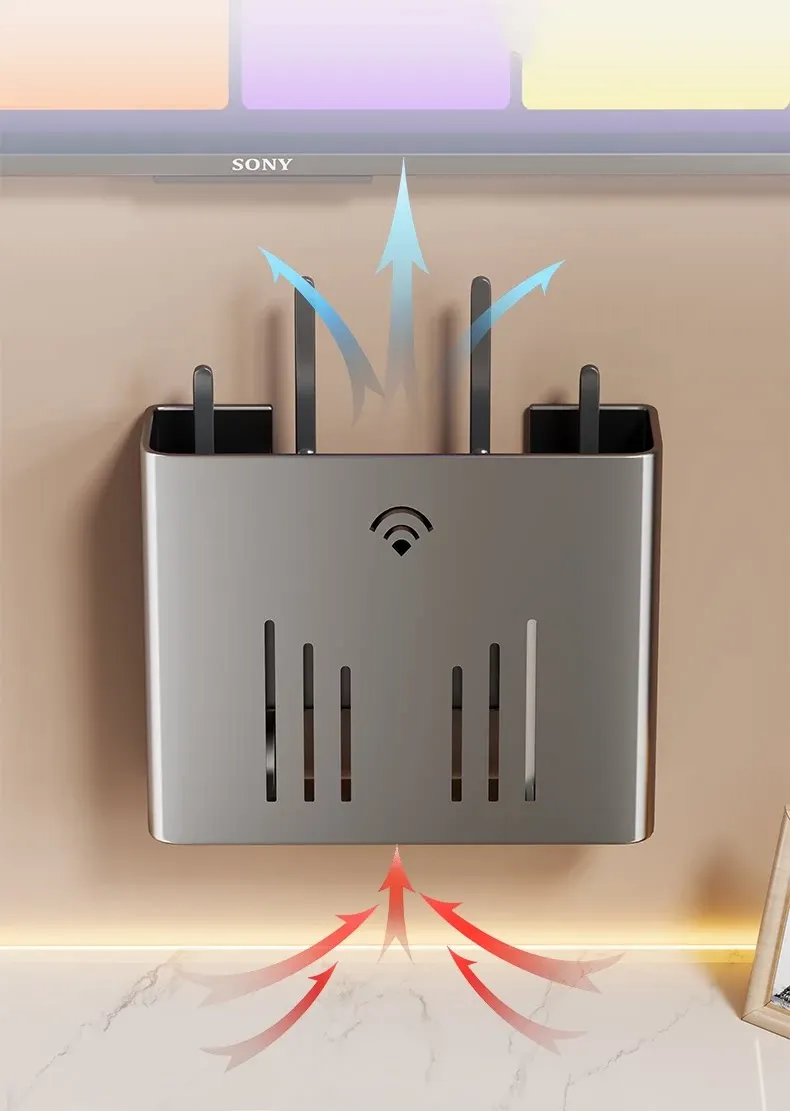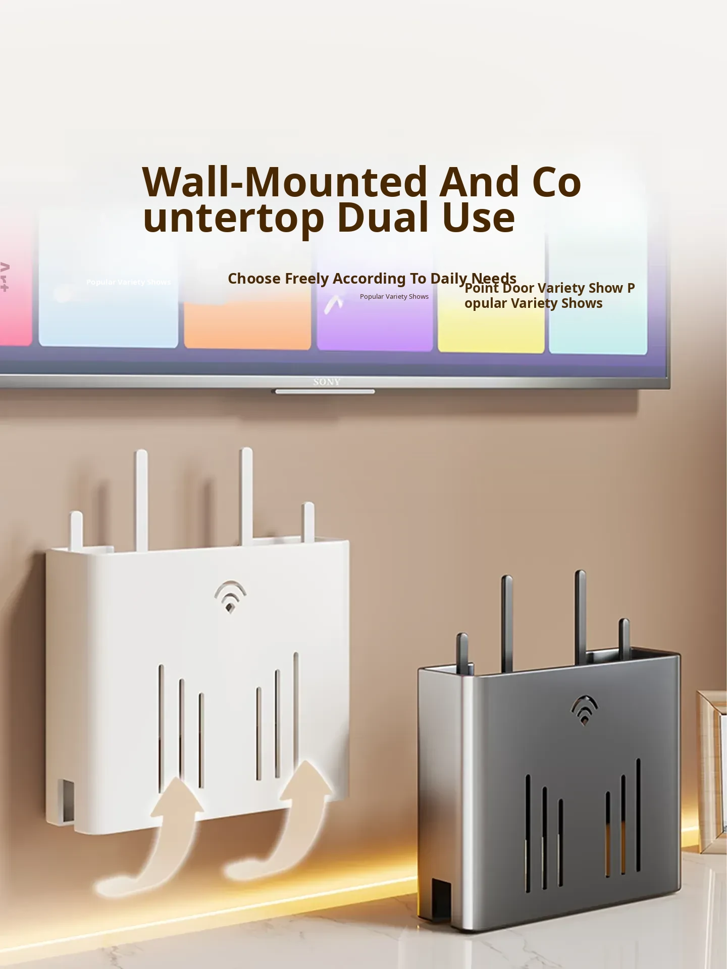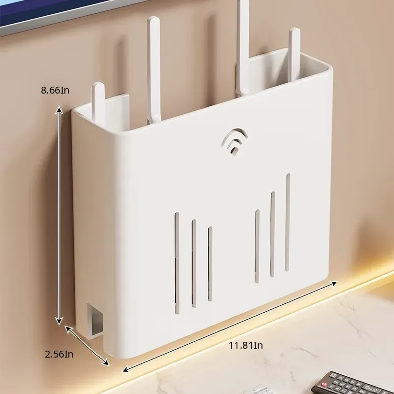 Wall-Mounted Router Storage Box with Remote Control Holder - No Drill WiFi Organizer Basket for Easy Access and Clutter-Free Living Space