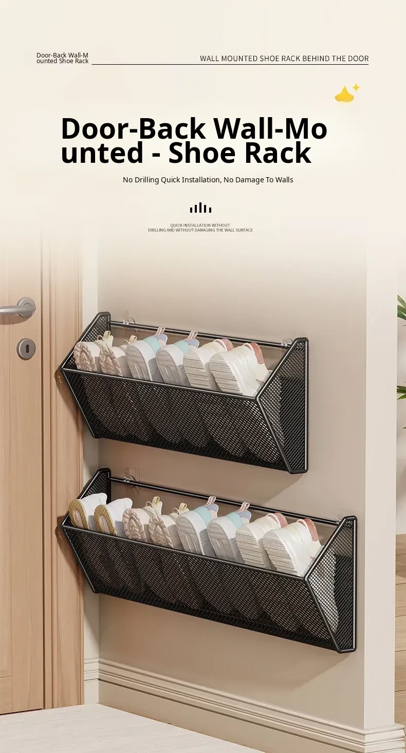 Wall-Mounted Shoe Rack - No Drilling Required, Perfect for Bathroom and Behind Door Slipper Storage, Hanging Shoe Organizer, Your Ultimate Space-Saving Solution!