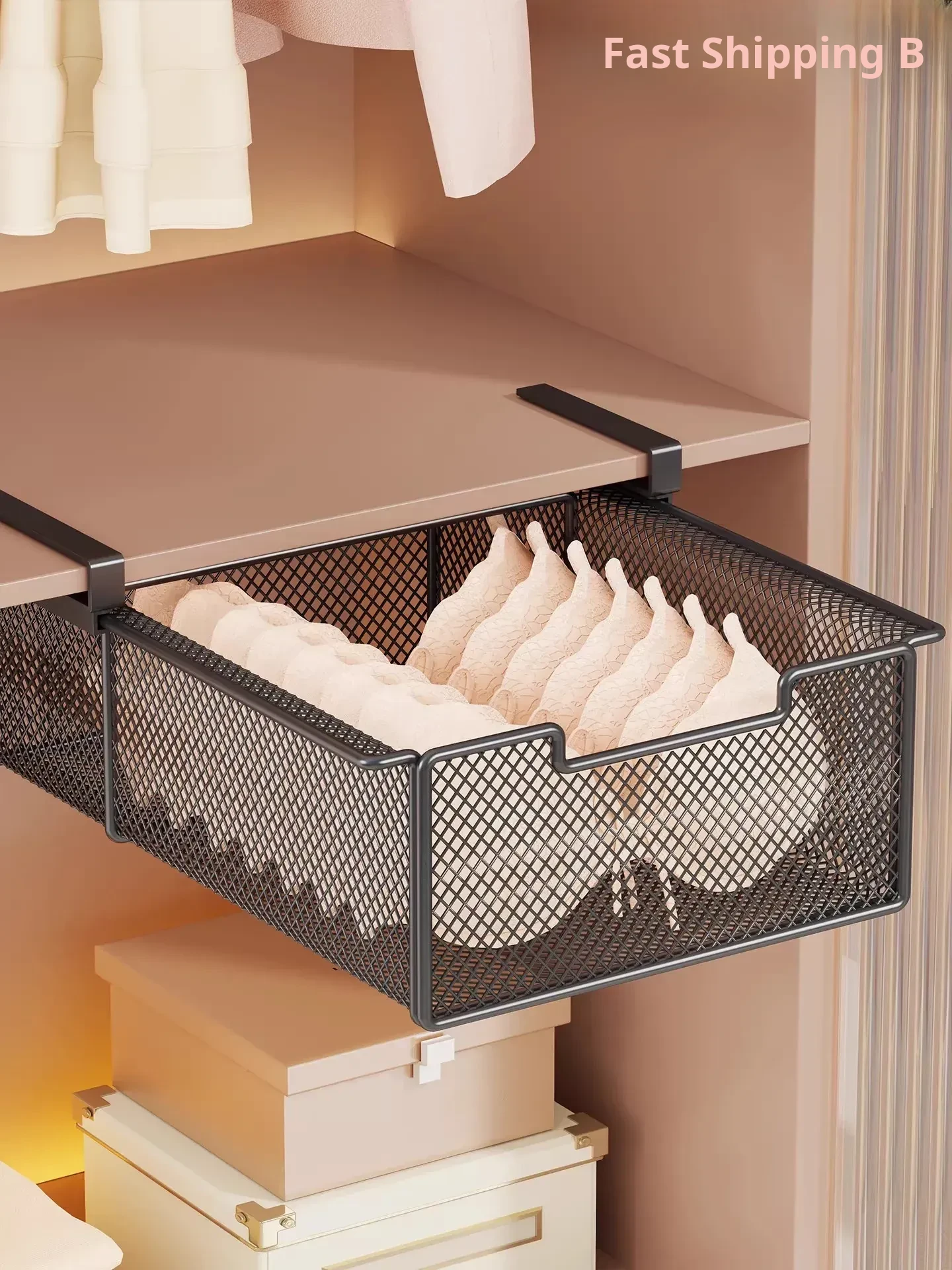 Hanging Drawer Organizer for Socks - Under-Cabinet Storage Basket for Undergarments, Lingerie, and Panties - Space-Saving Solution for Your Closet