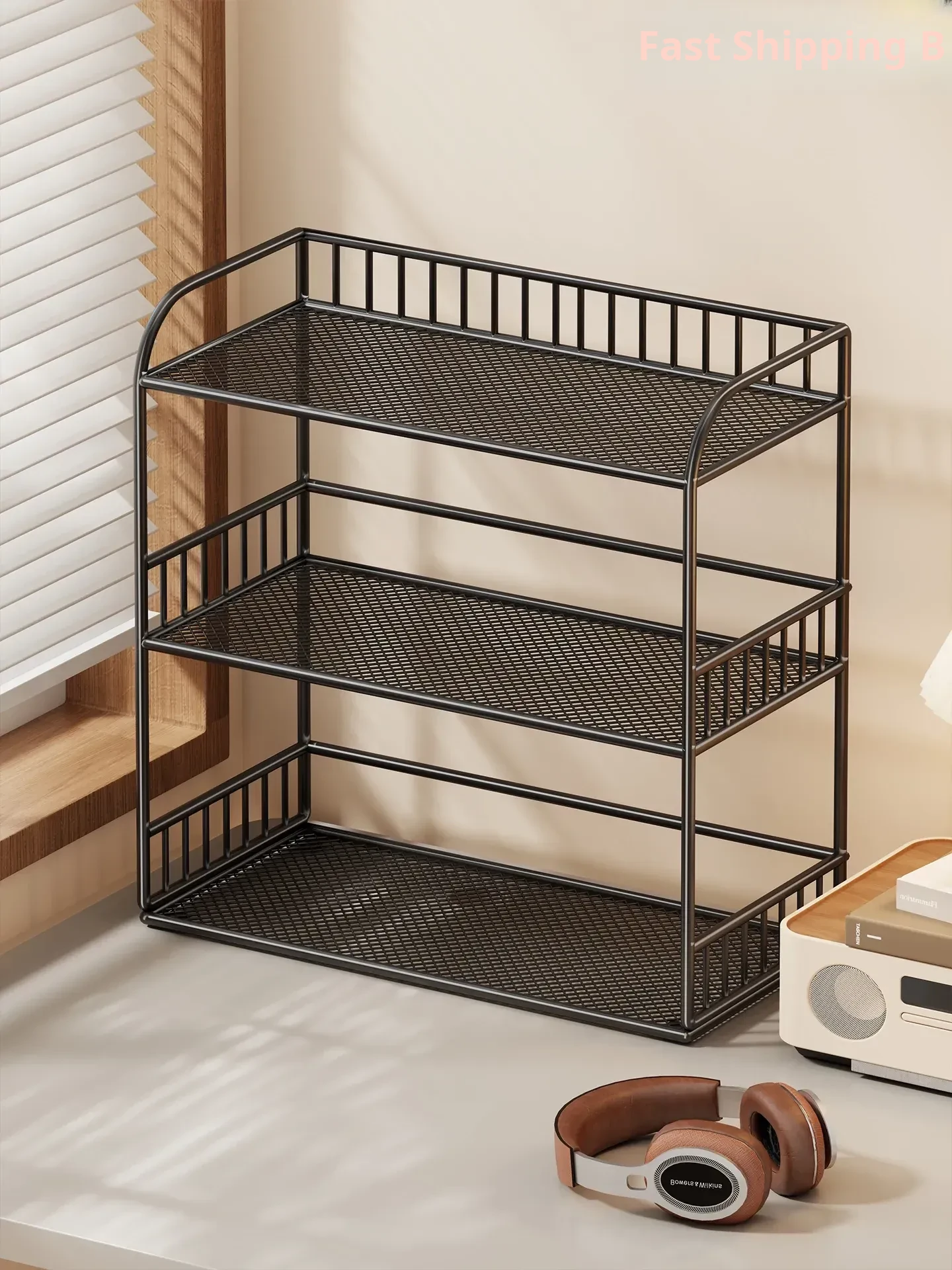 Multilevel Desktop Storage Rack - Vertical Organizer for Office, Living Room, and Small Carts - Ideal for Books, Snacks, and Clutter Management