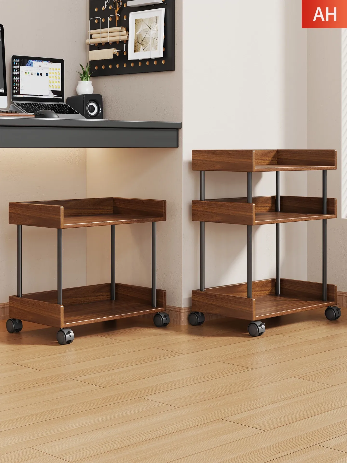 Solid Wood Bookshelf Rolling Cart - Versatile Storage Solution for Books Under Desk or Next to Table - Perfect for Organizing and Displaying Your Favorite Reads!