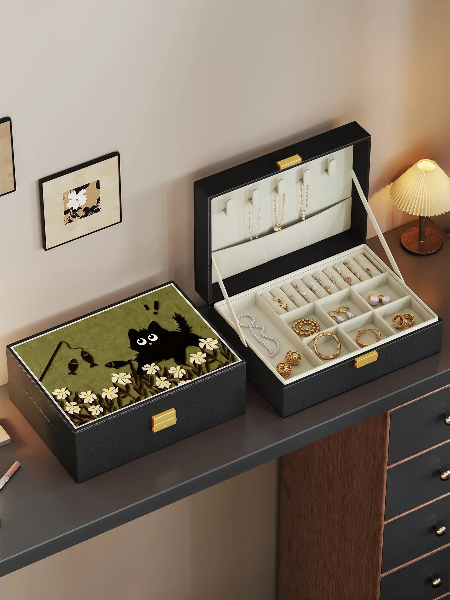 Luxury Jewelry Organizer Box - Elegant Large Capacity for Earrings, Necklaces, Hair Accessories, and More - Stylish Leather Storage Solution for Your Precious Items