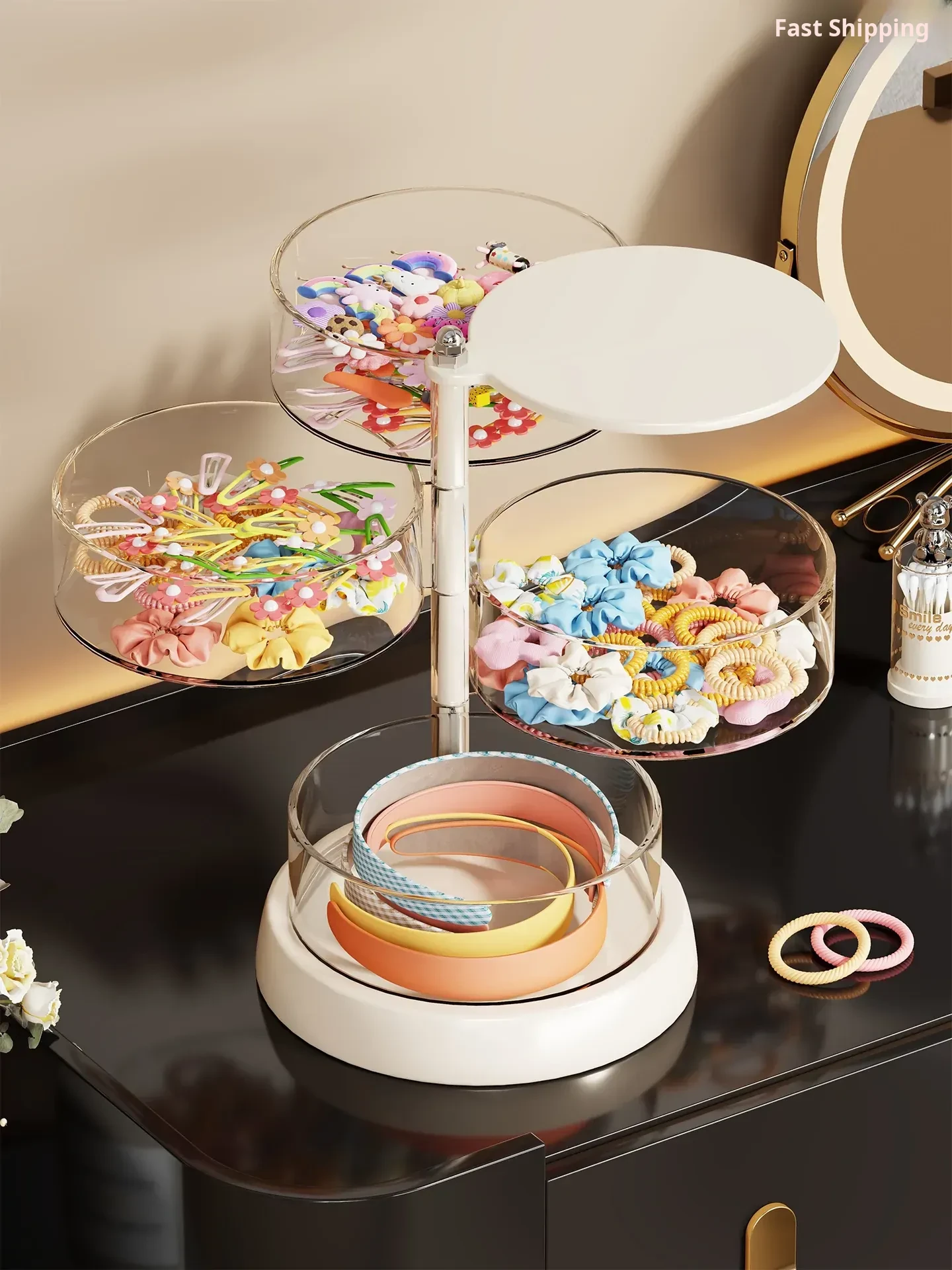 Kids' Rotating Hair Accessories Organizer Box - Multi-Layered Display for Hair Clips and Headbands, Transparent Storage for Easy Access to Hair Jewelry and Accessories