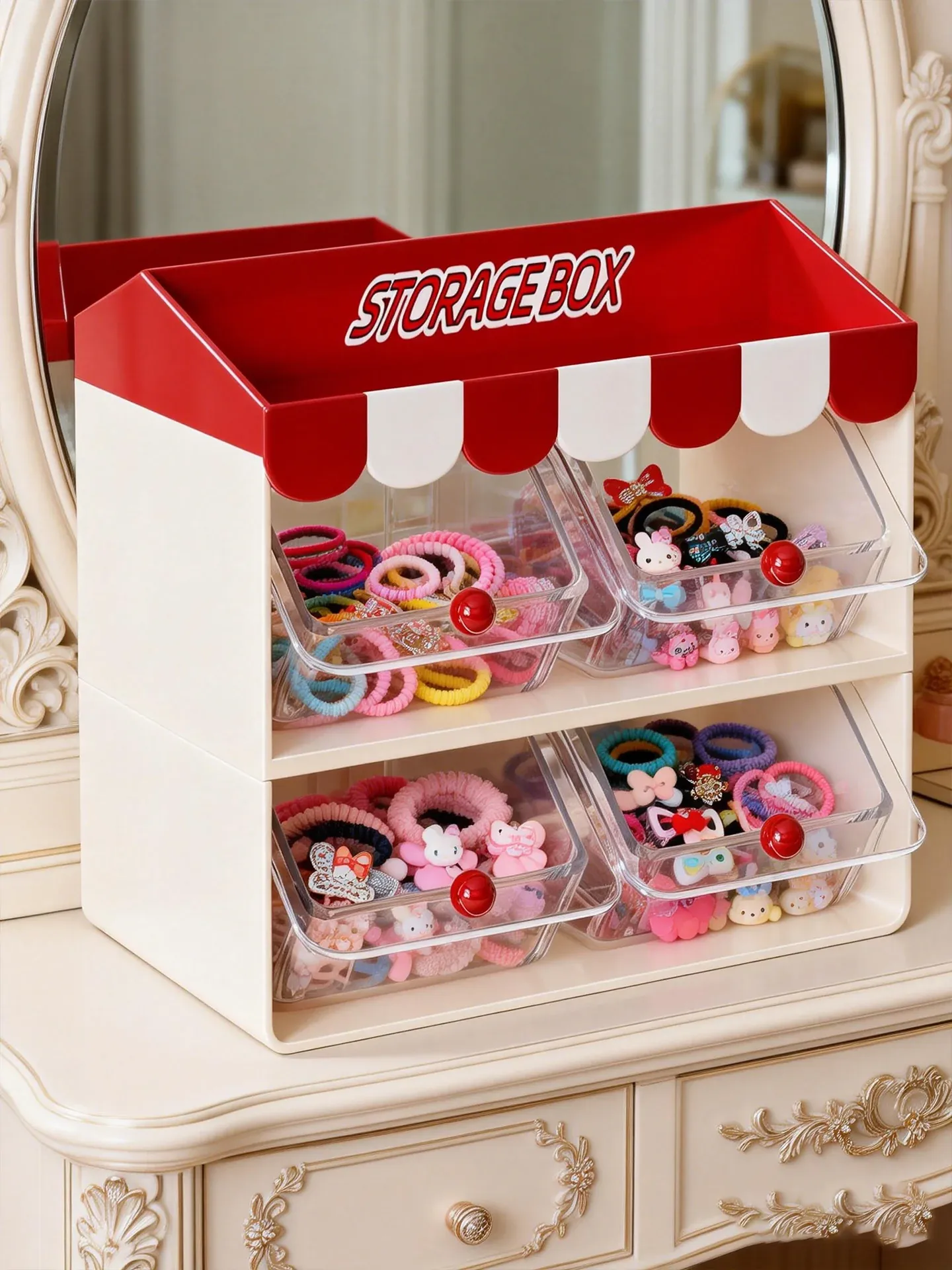 Children's Hair Accessory Organizer - Drawer Style Storage Box for Hair Clips, Bands, and Headbands - Perfect Desktop Solution for Tidy and Stylish Display of Hair Accessories