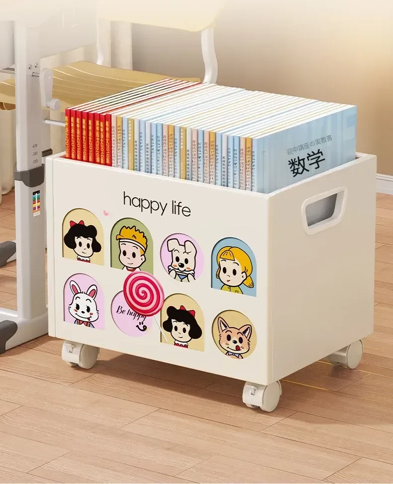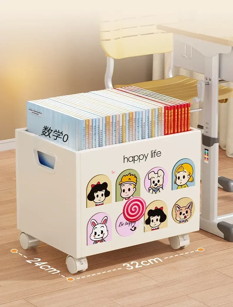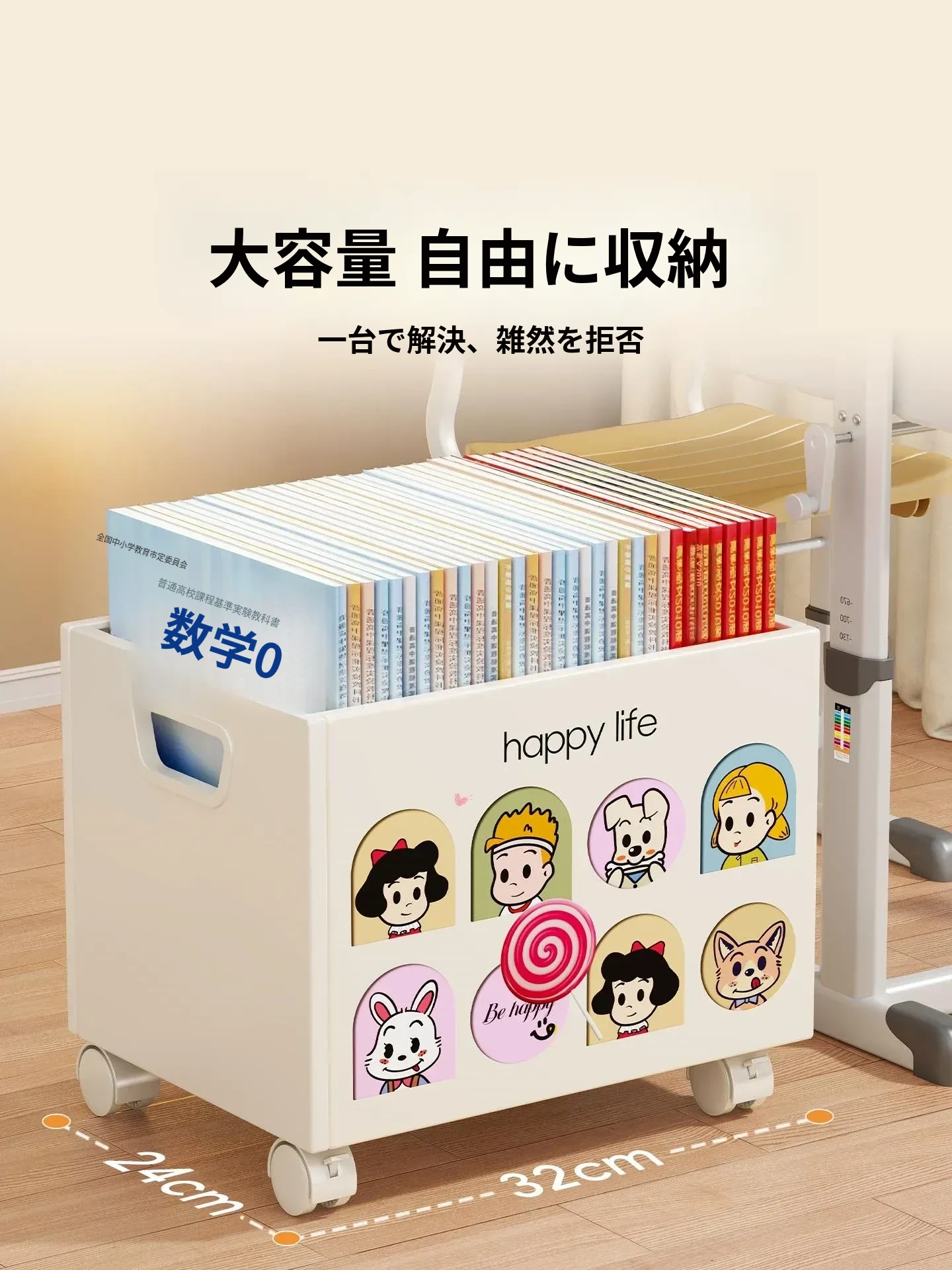 学生教室に最適!折りたたみ式の本収納ボックス、滑車付きで移動も簡単。高校生の机の下にぴったり収まる、便利な書棚です。整理整頓をサポートし、学習環境を整えましょう!