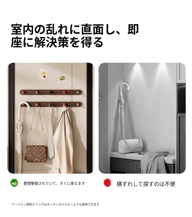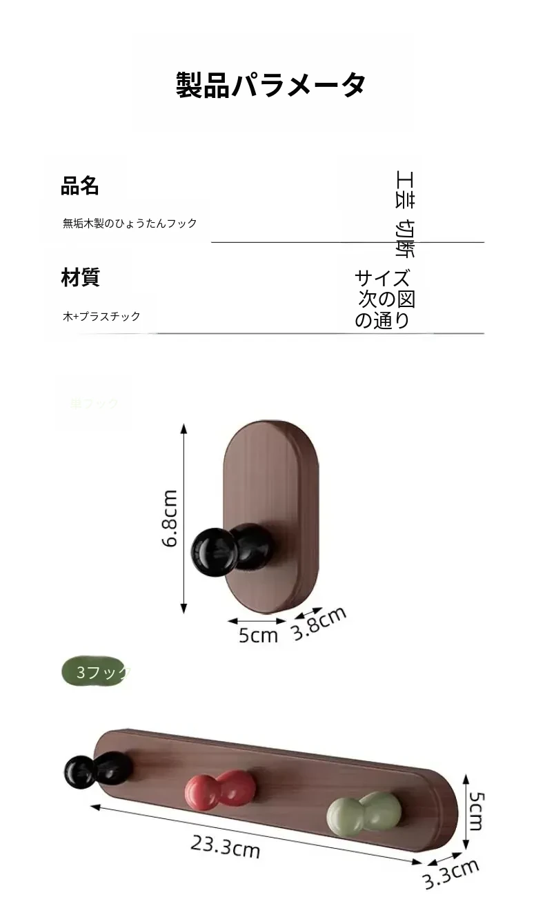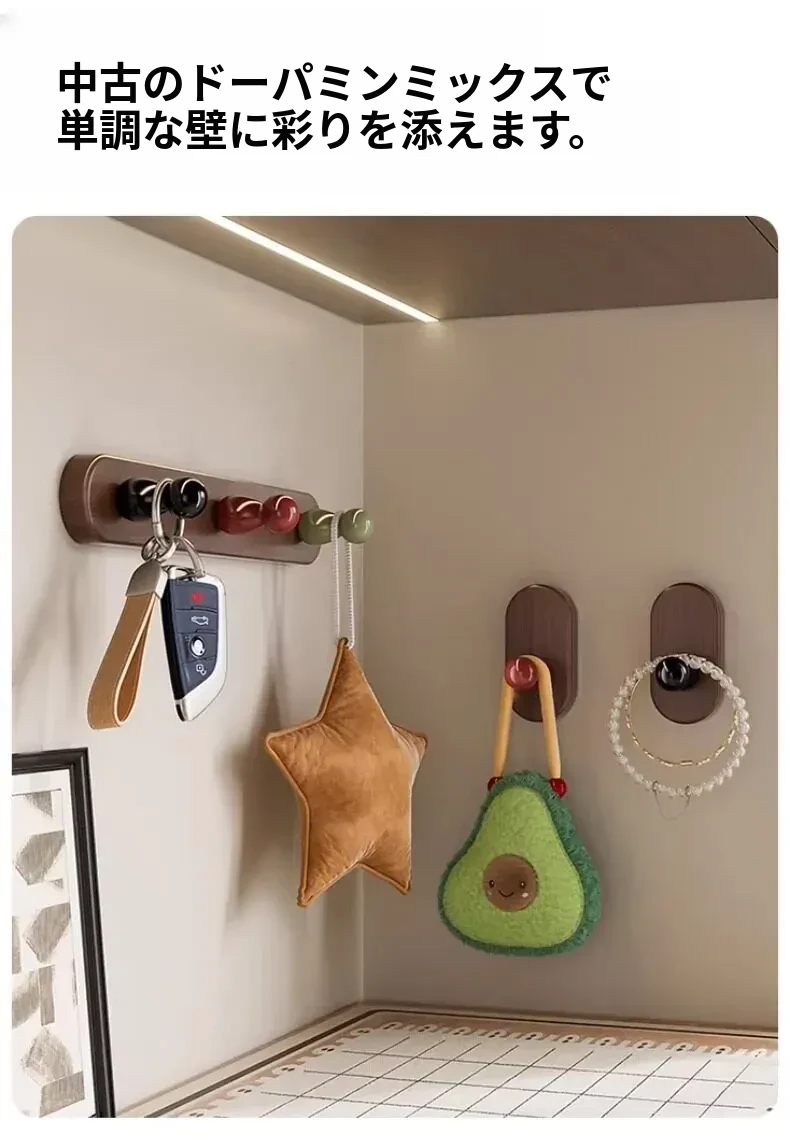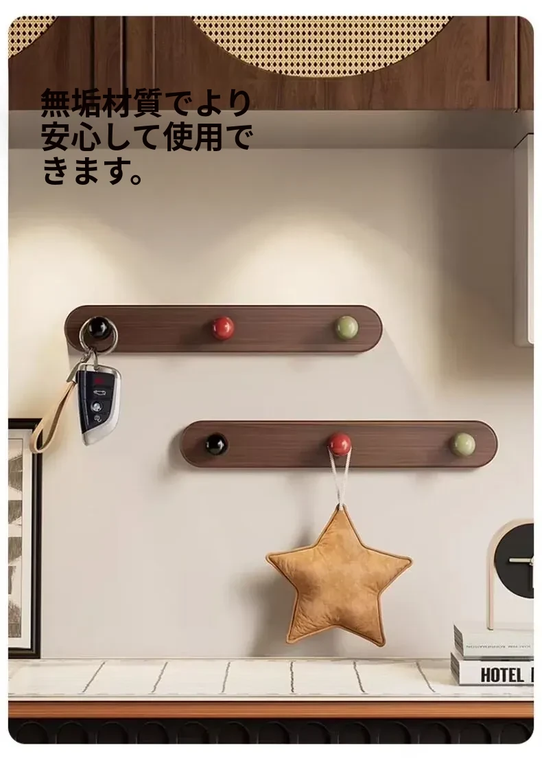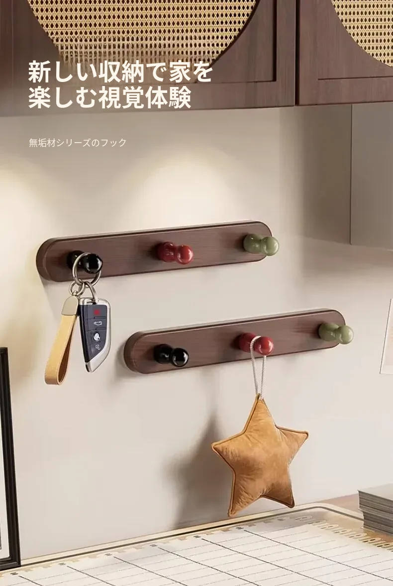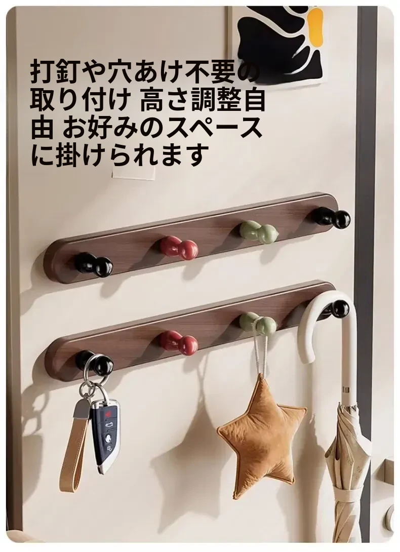 ドア後掛け衣類フック|創造的な木製デザインで、穴を開けずに取り付け可能!入室時に便利な鍵やバッグの収納に最適なアイテムです。おしゃれで実用的な収納ソリューションを手に入れましょう!