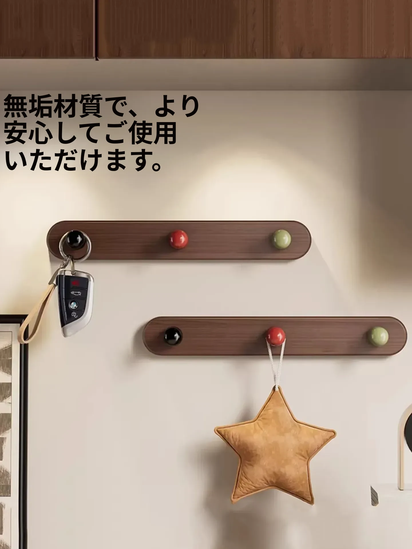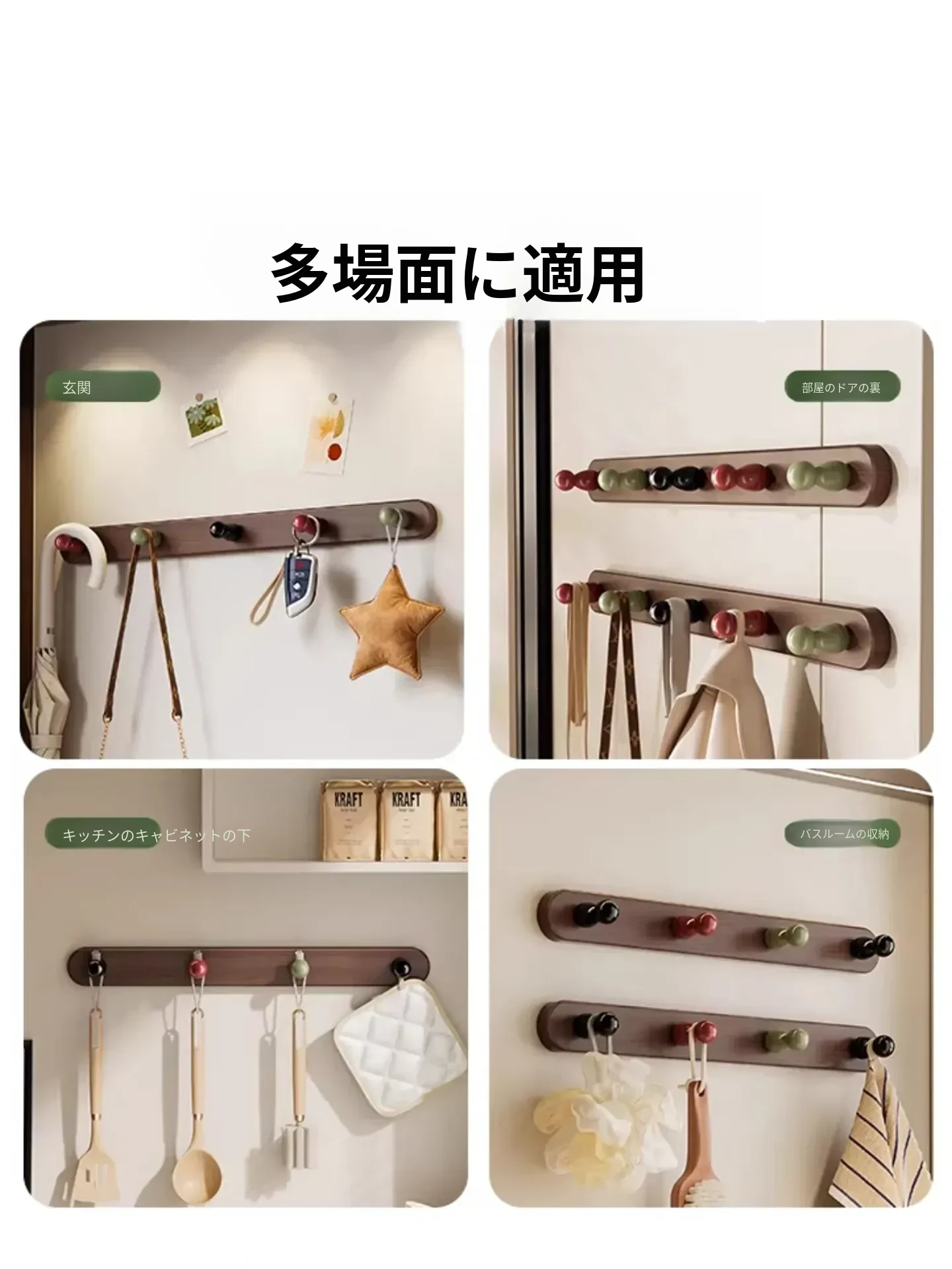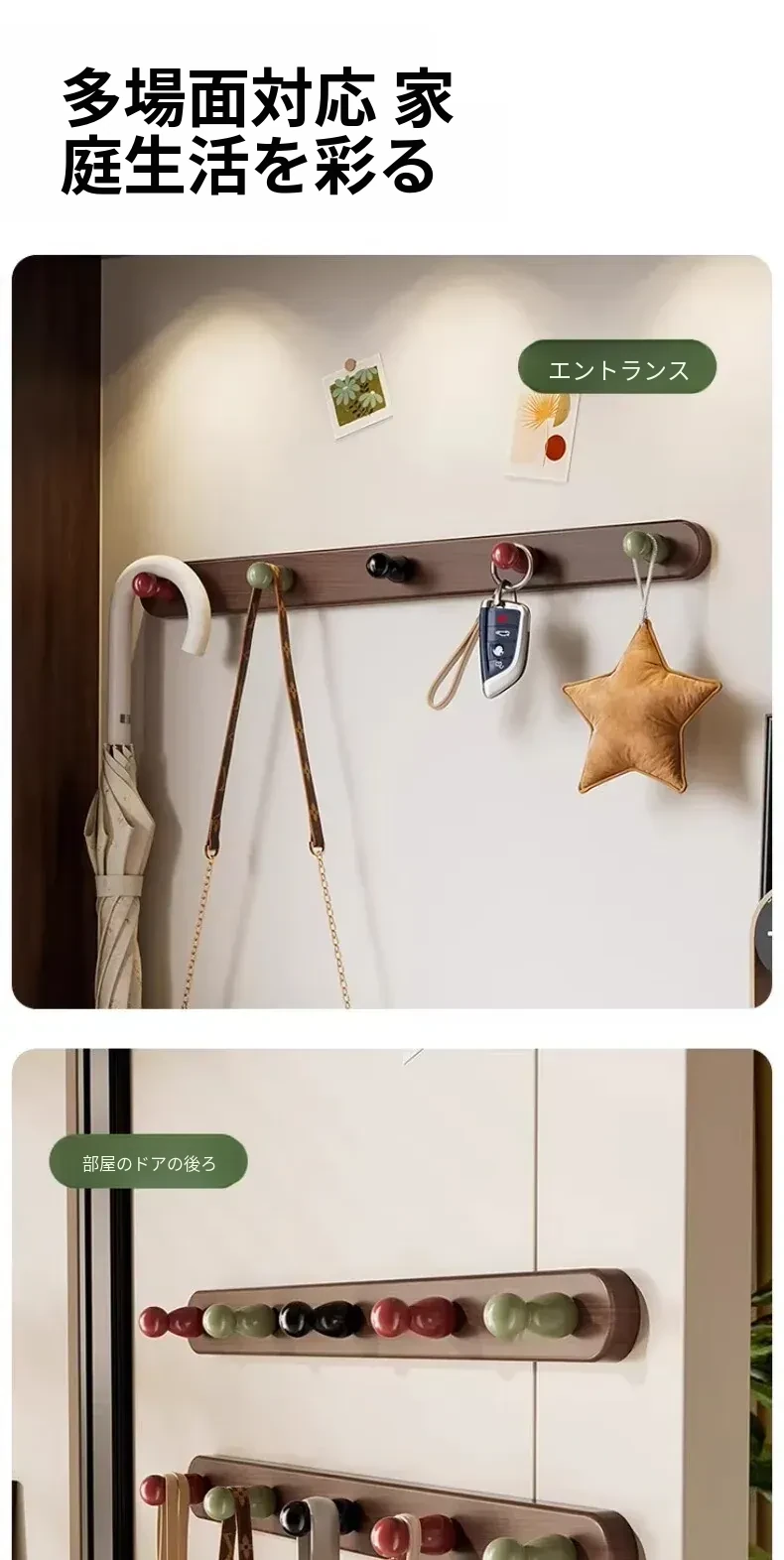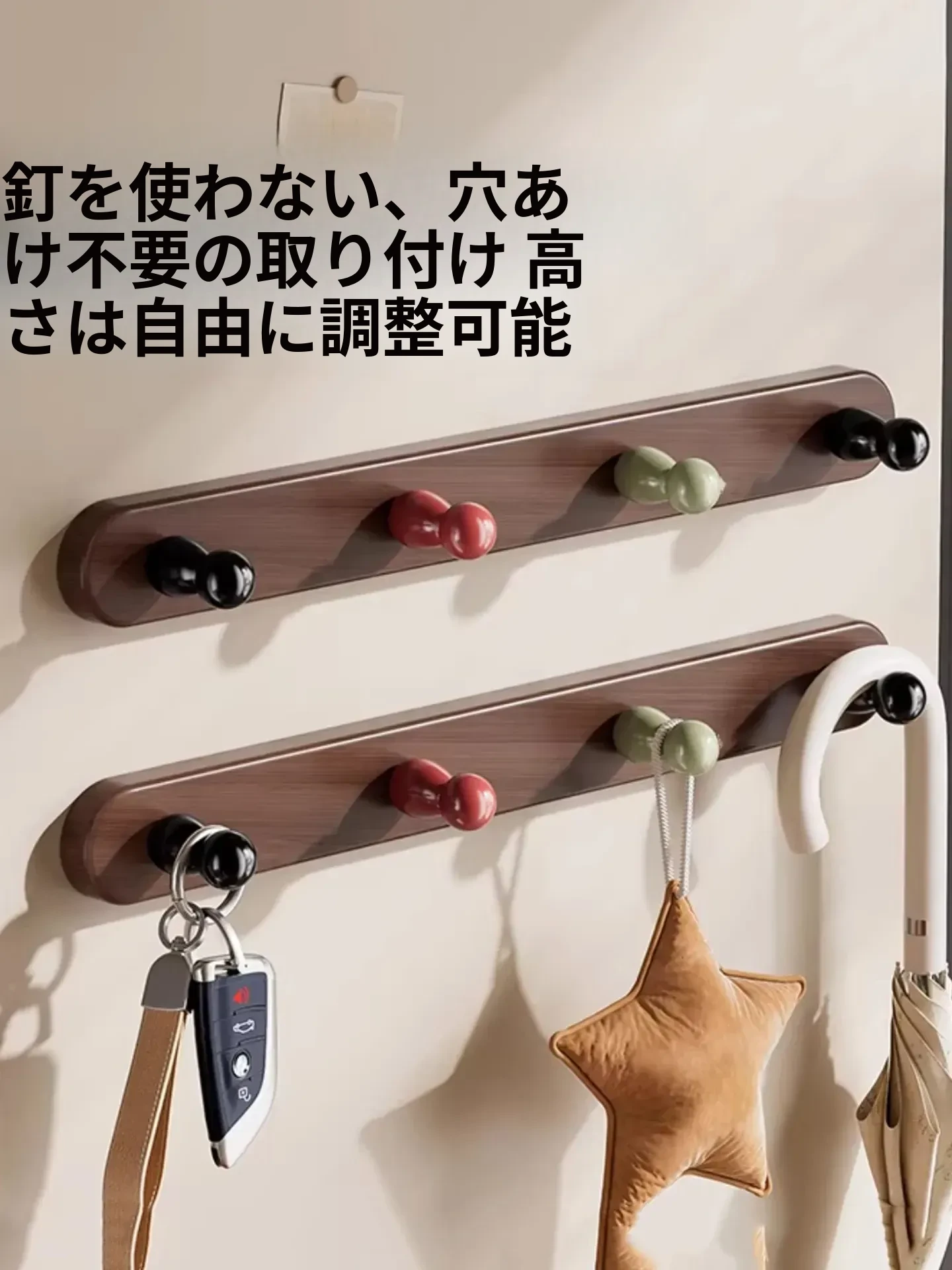 ドア後掛け衣類フック|創造的な木製デザインで、穴を開けずに取り付け可能!入室時に便利な鍵やバッグの収納に最適なアイテムです。おしゃれで実用的な収納ソリューションを手に入れましょう!