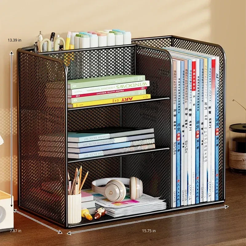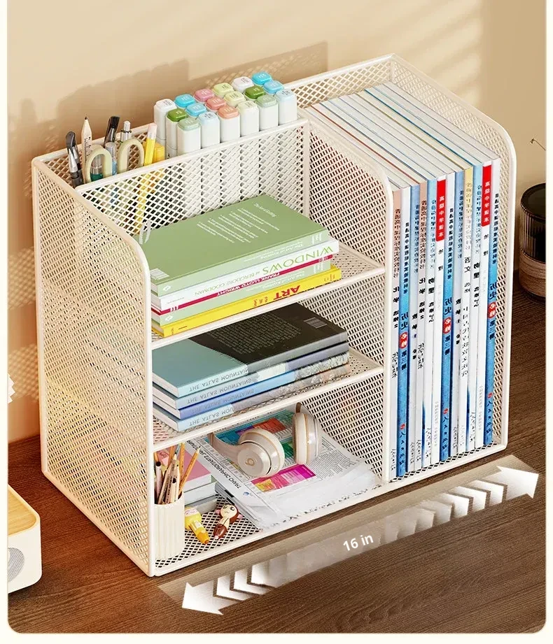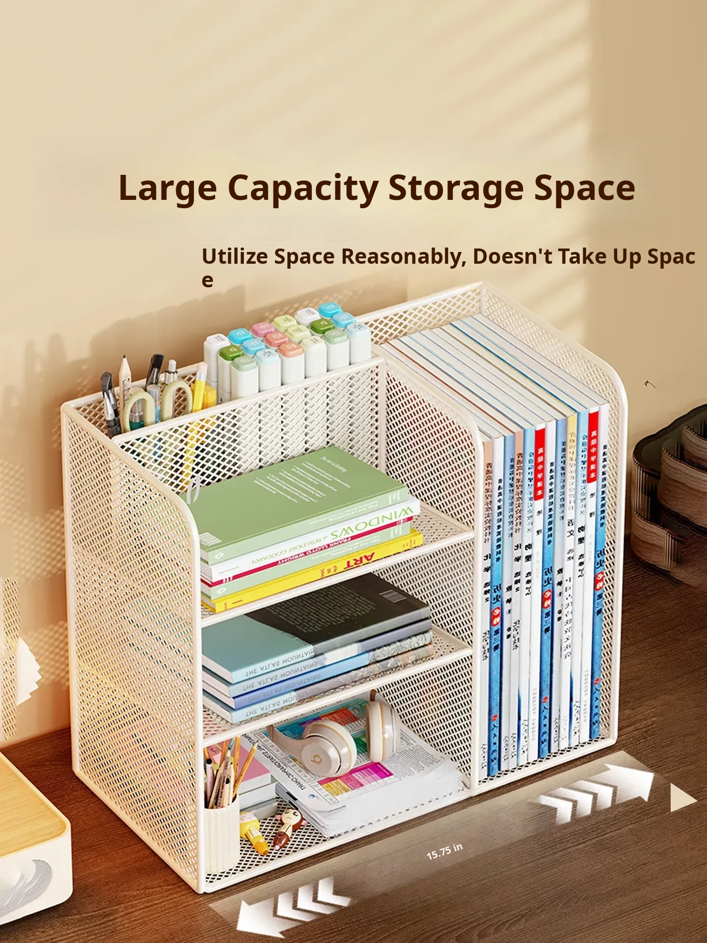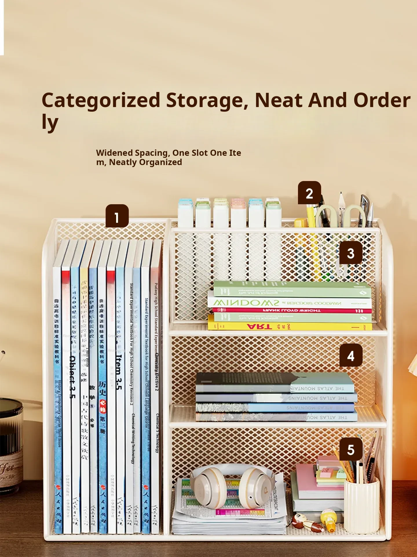 Desktop Book Organizer - Home & Office Storage Solution for Students, Art Supplies, and Documents - Stylish and Functional Desk Caddy with Dividers for Neat Organization