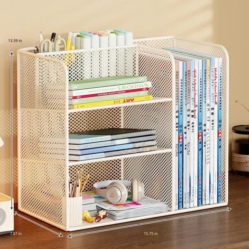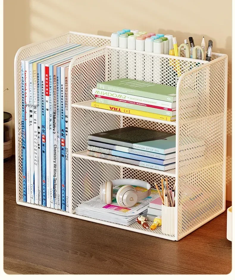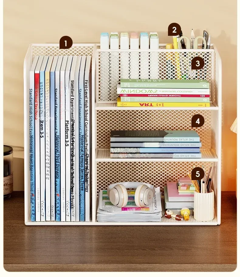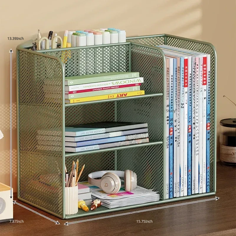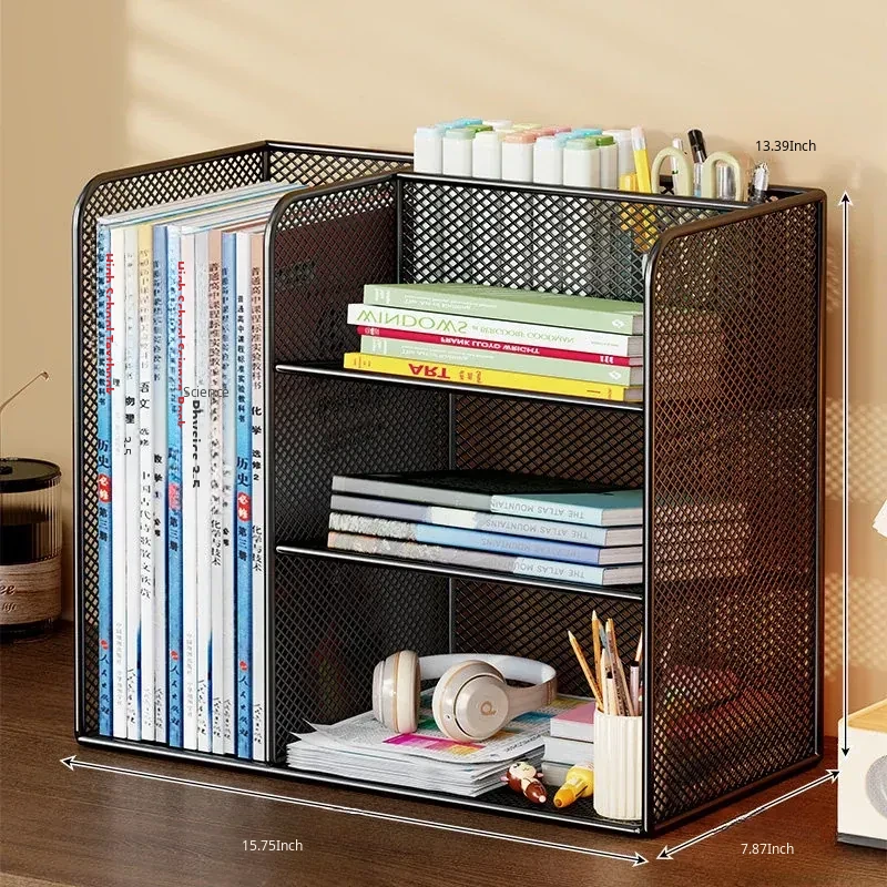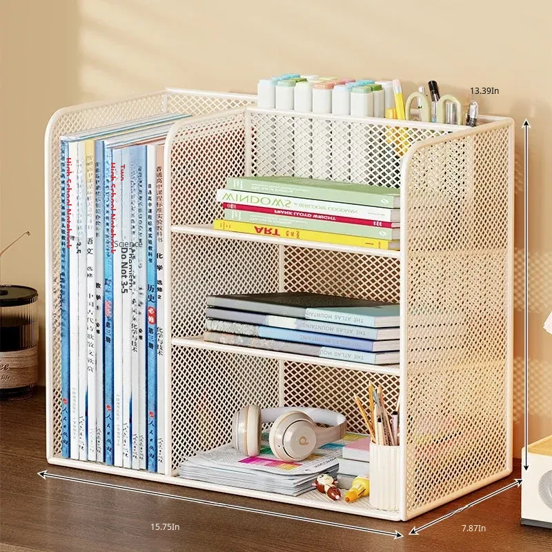 Desktop Book Organizer - Home & Office Storage Solution for Students, Art Supplies, and Documents - Stylish and Functional Desk Caddy with Dividers for Neat Organization