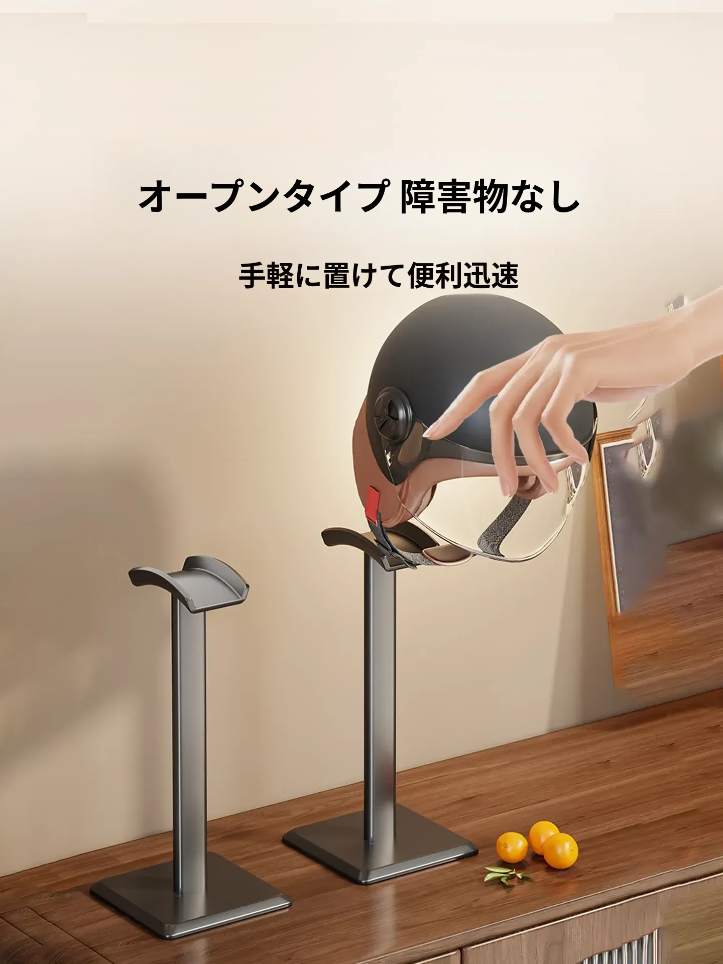 電動バイク用ヘルメットスタンド - 工事現場でも安心!デスク上にぴったりの収納ラックで、ヘルメットをおしゃれに保管。整理整頓が簡単で、必要な時にすぐ取り出せます!
