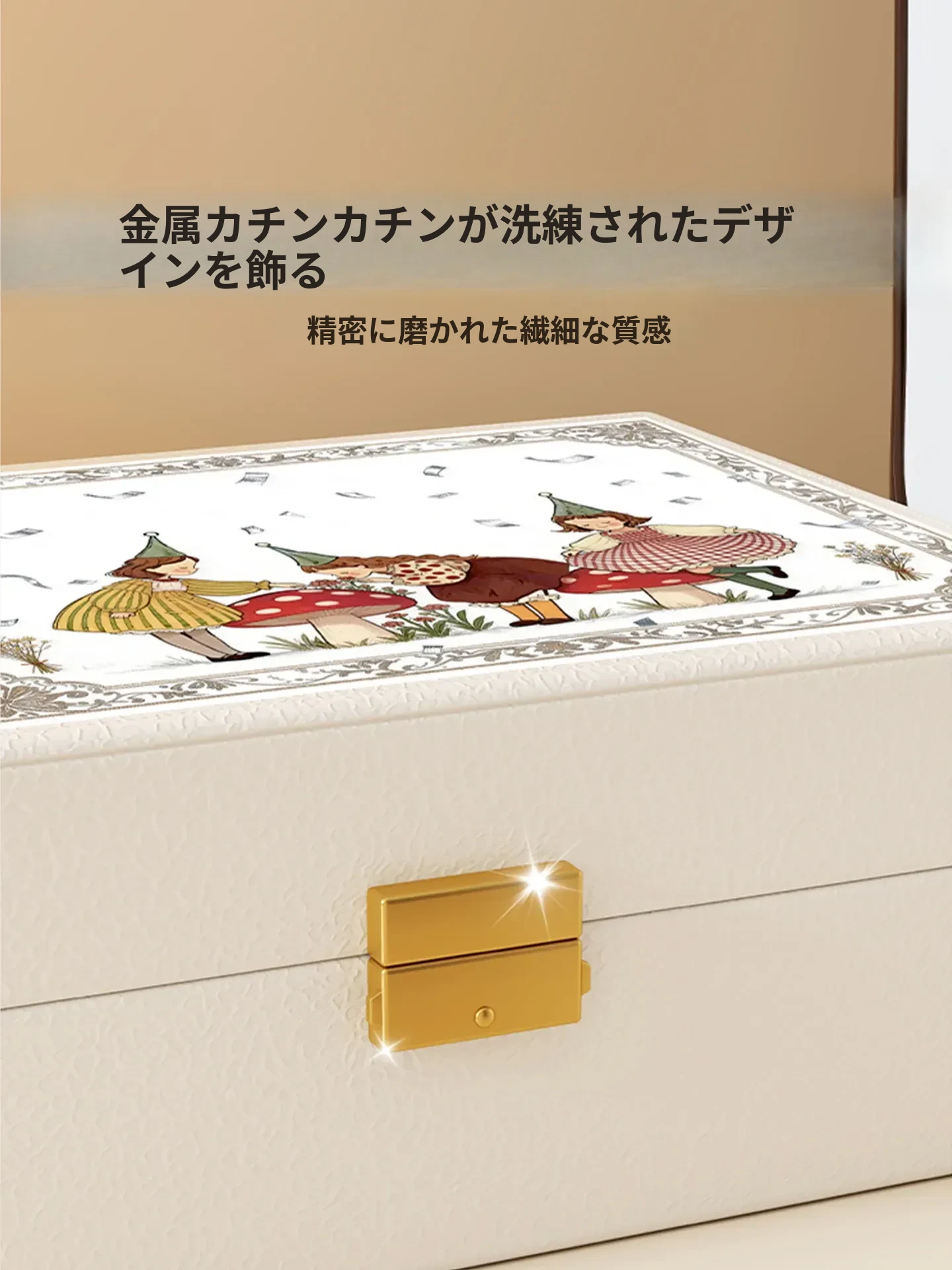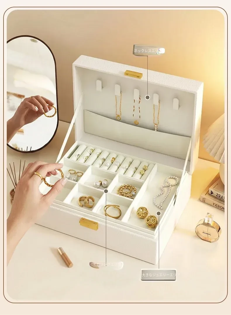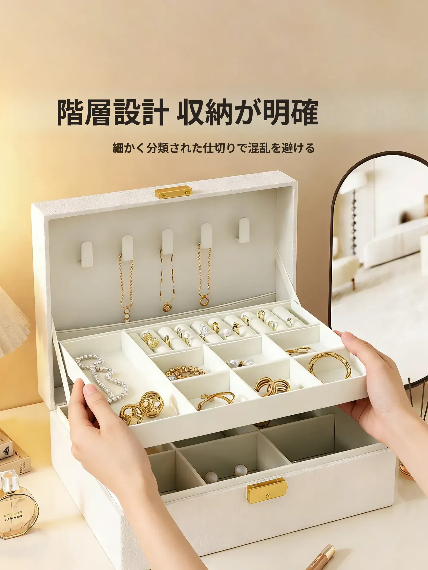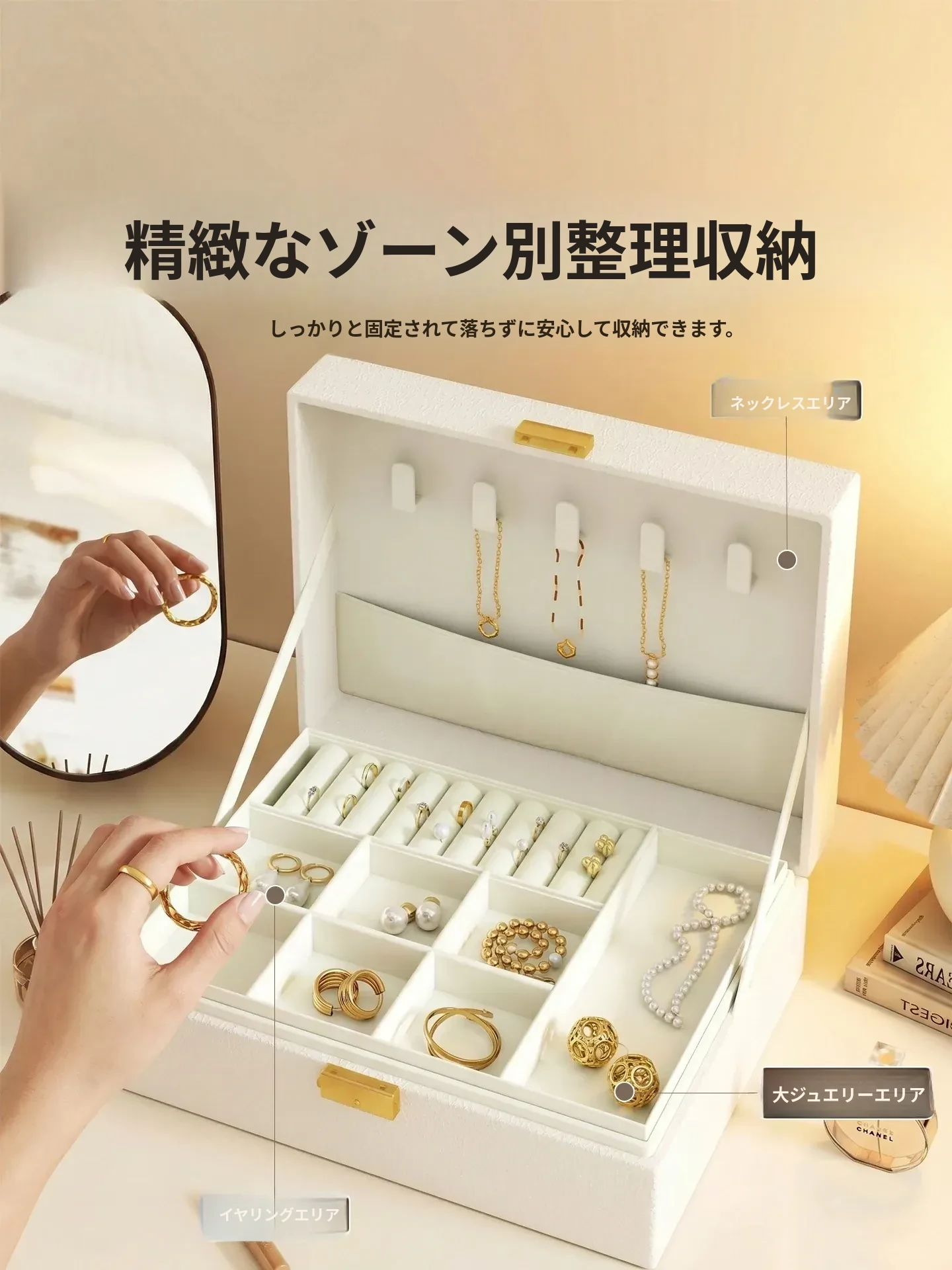 クリーム風ジュエリーボックス 小型高級デザイン ネックレス・イヤリング・ピアス収納 大容量・持ち運び便利な洗練された宝石ケース