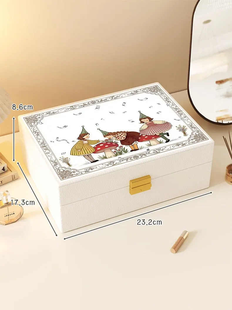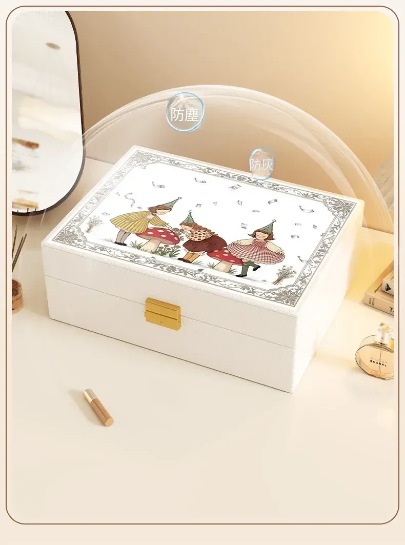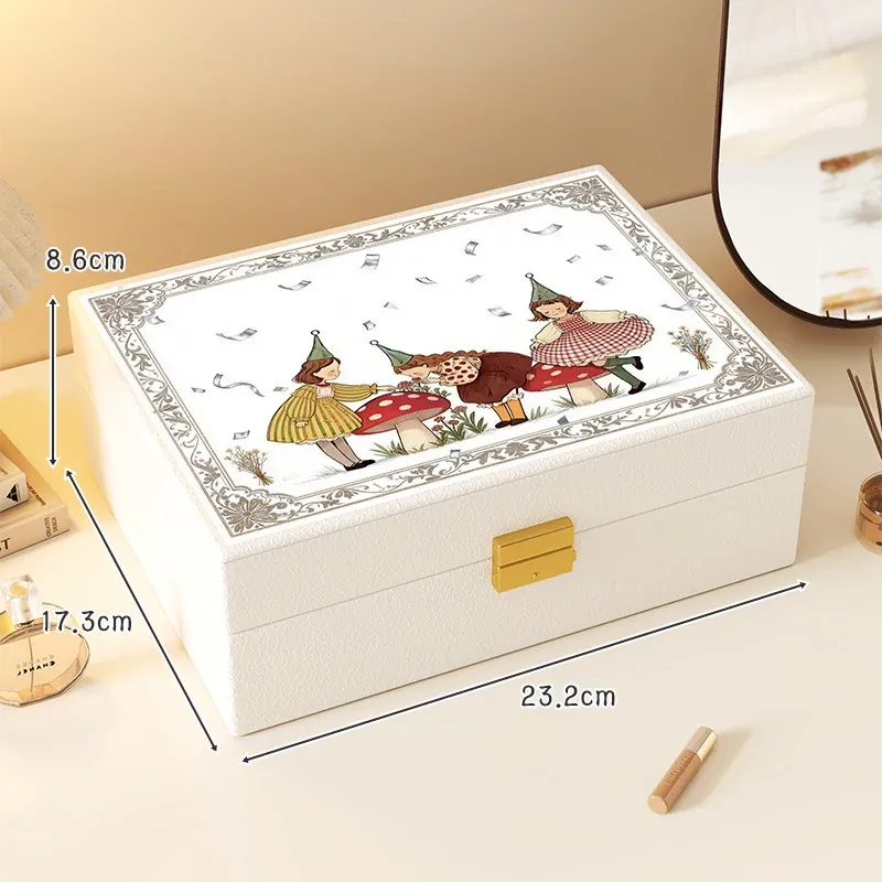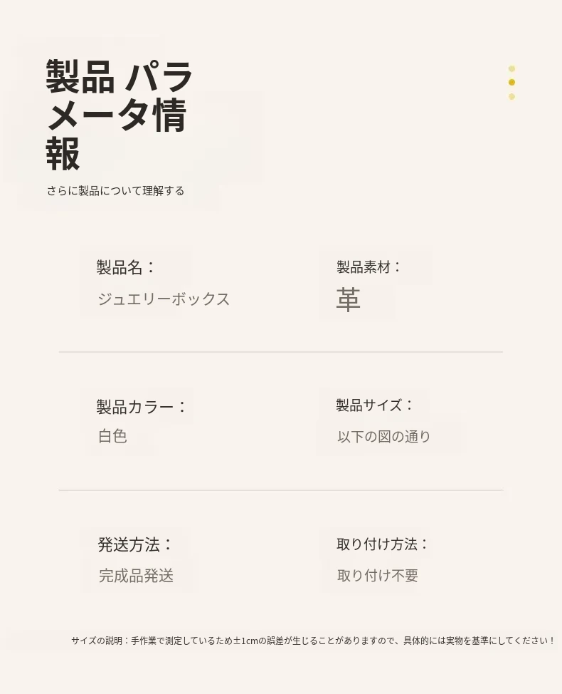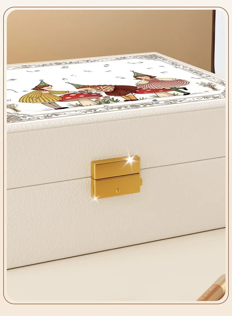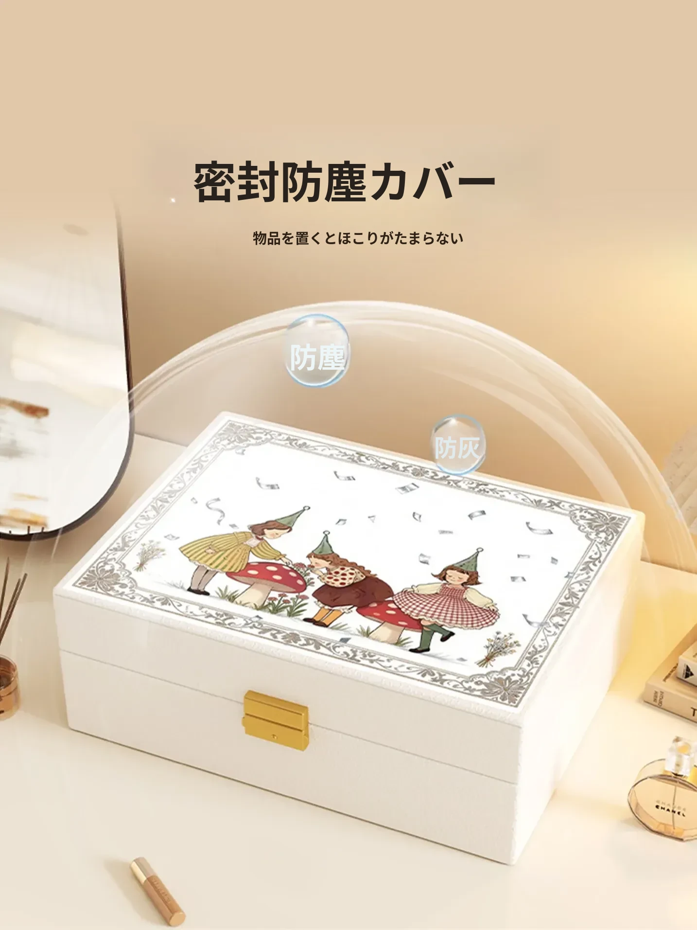 クリーム風ジュエリーボックス 小型高級デザイン ネックレス・イヤリング・ピアス収納 大容量・持ち運び便利な洗練された宝石ケース