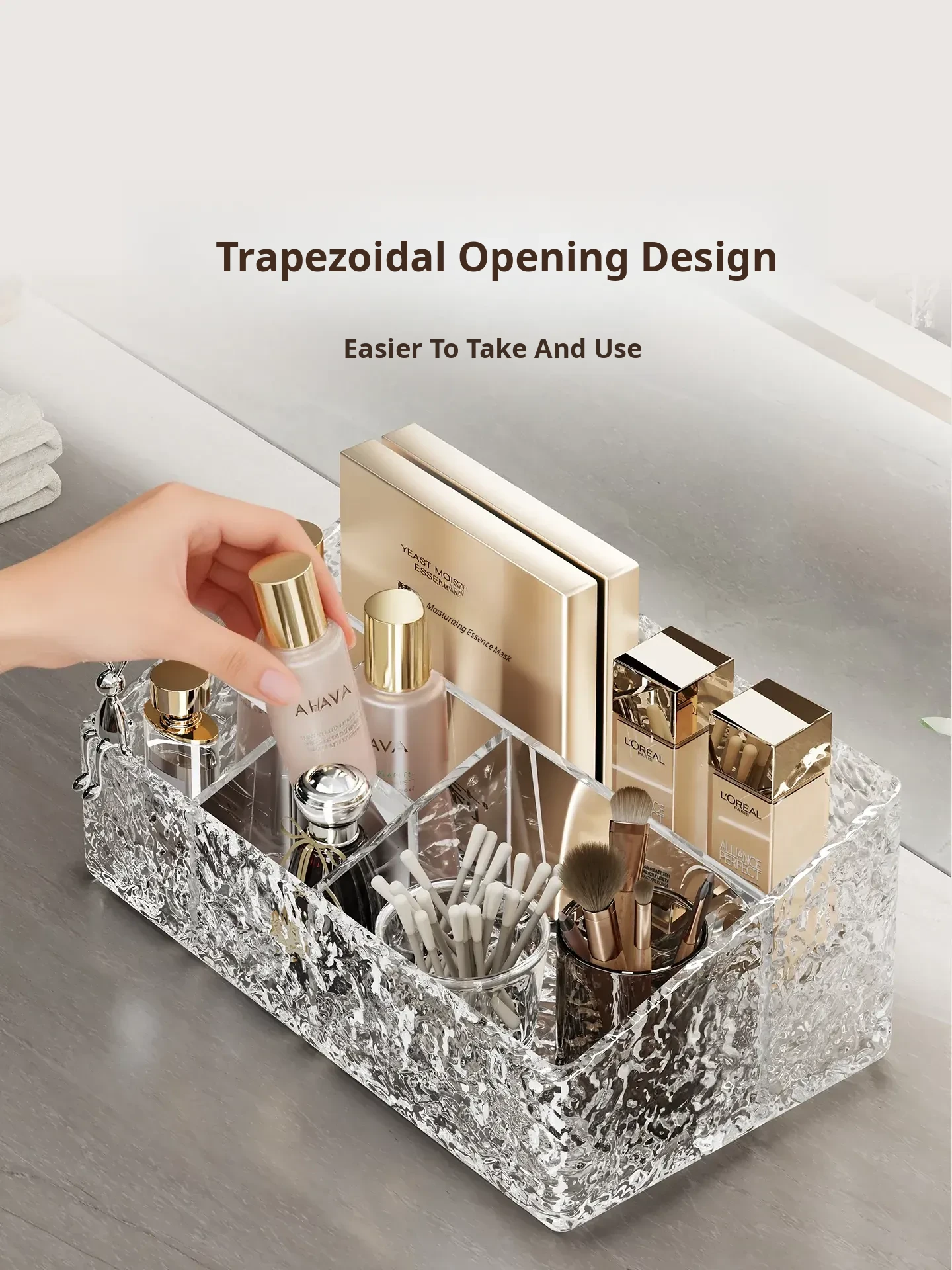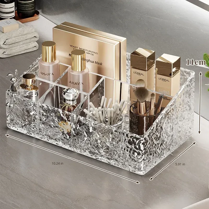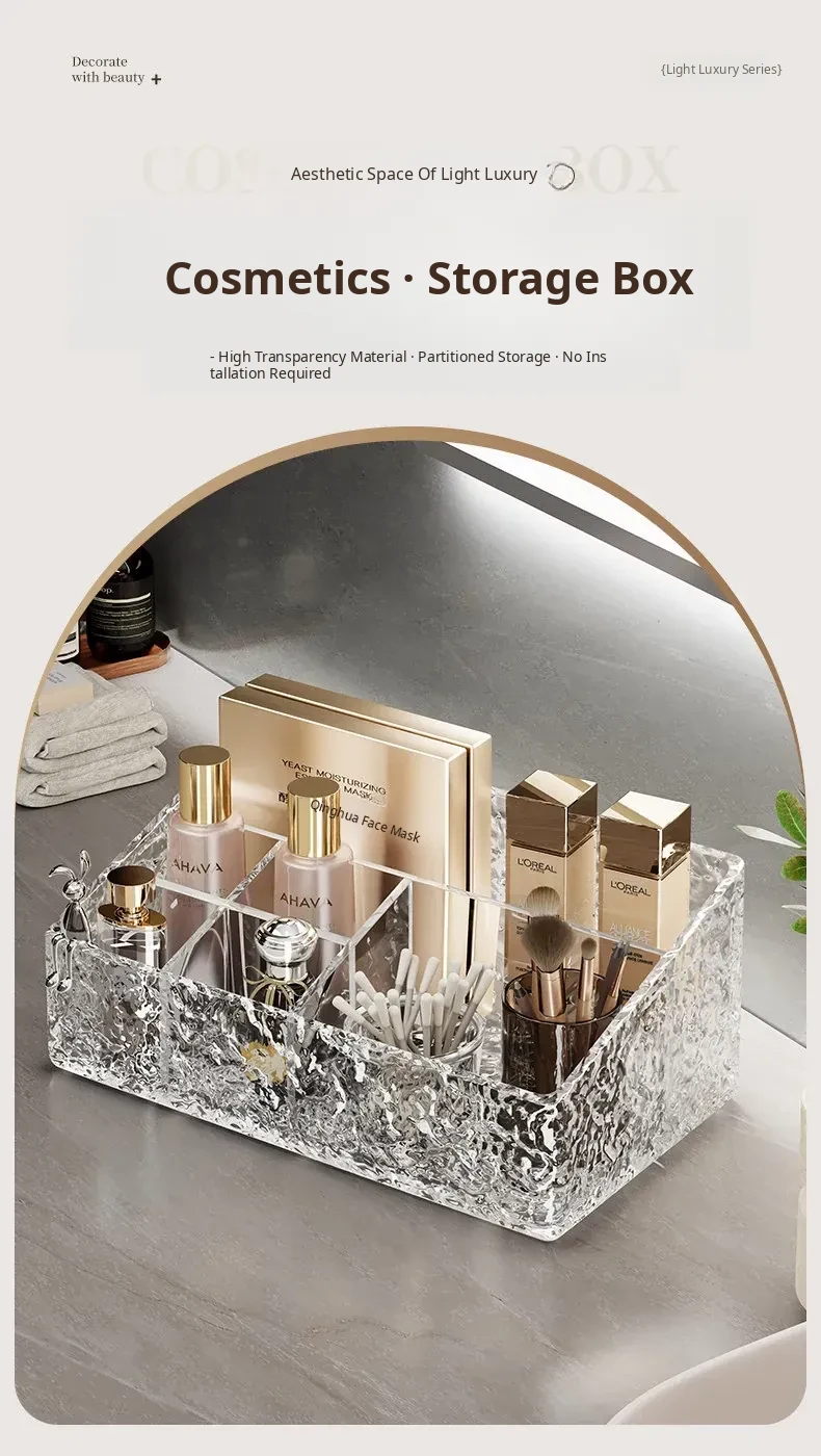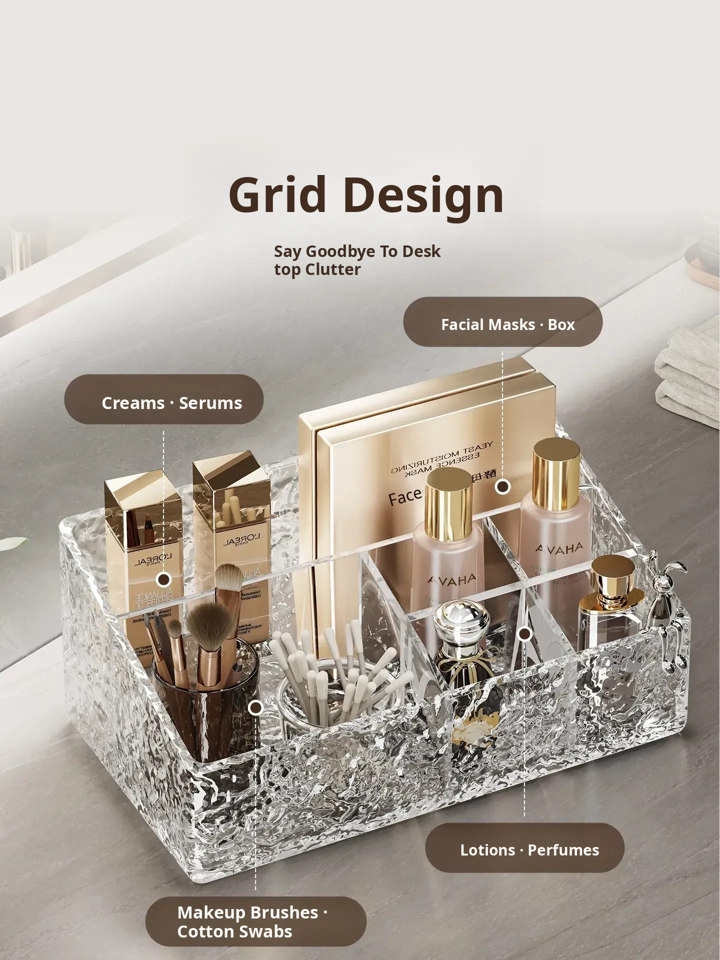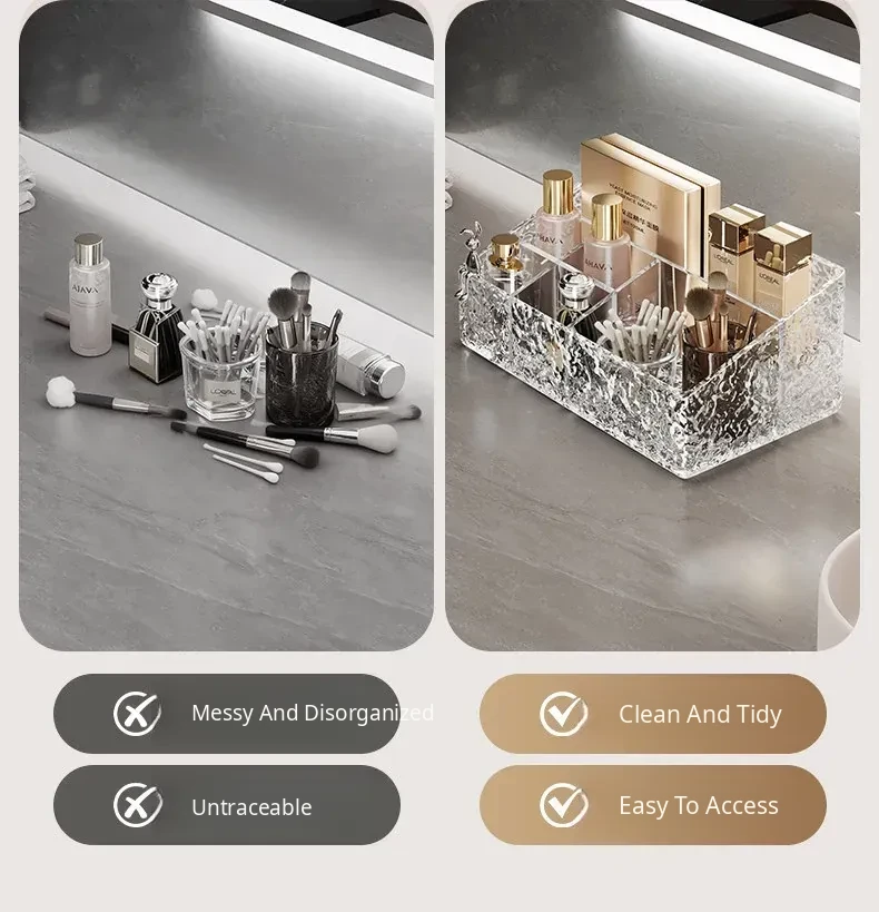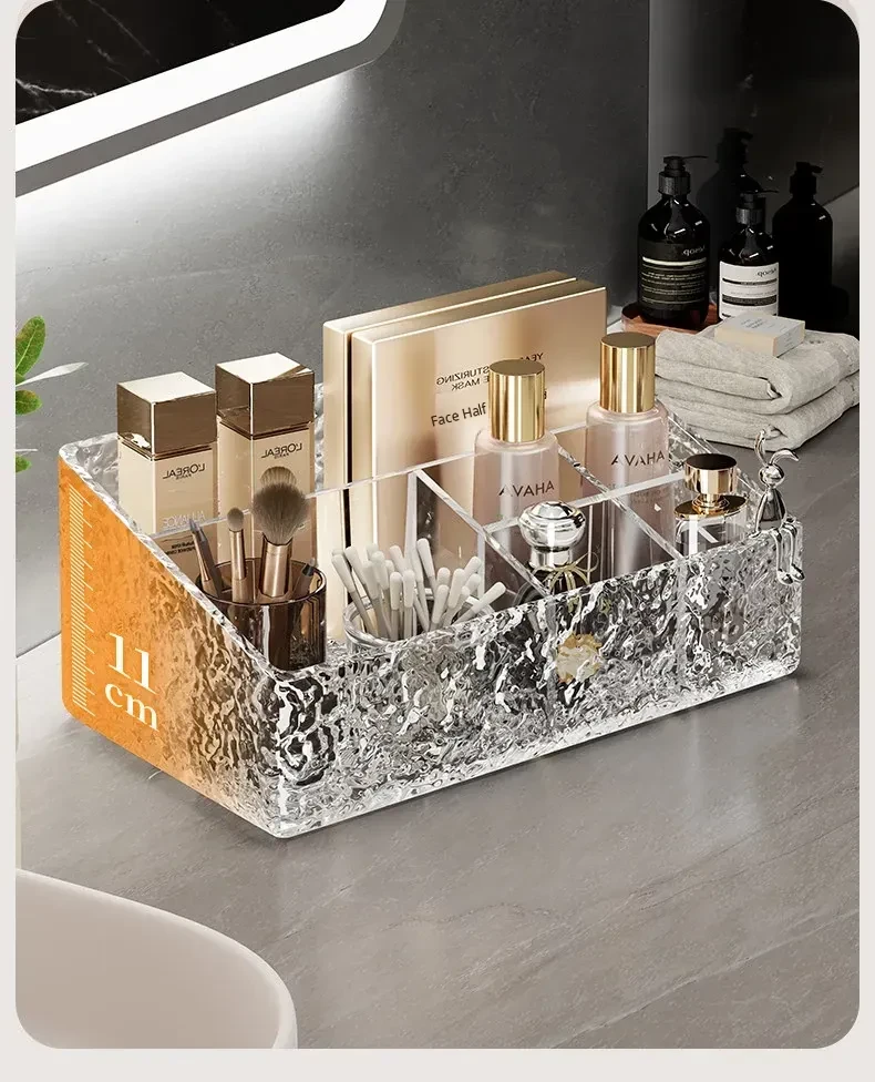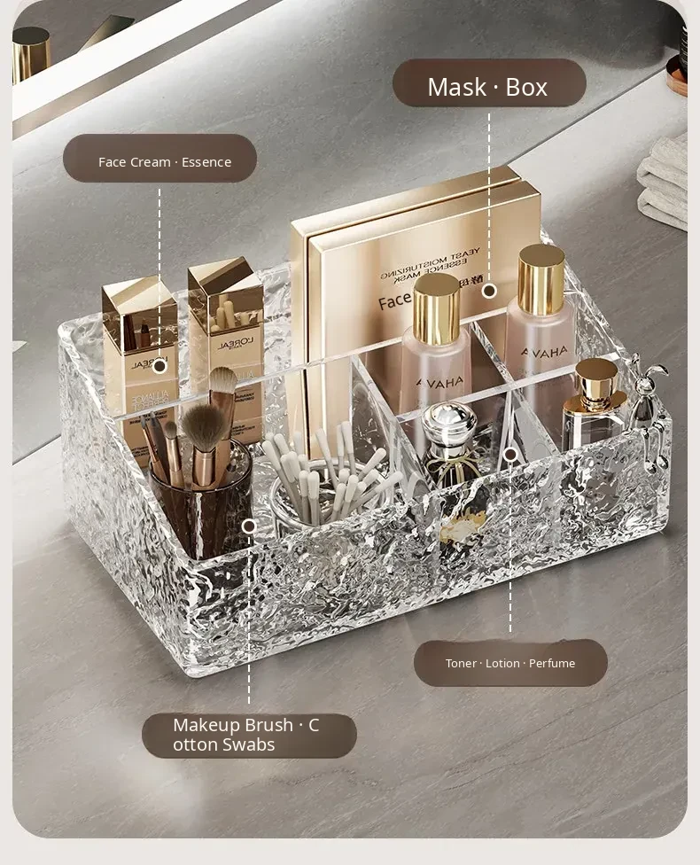 Elegant Desktop Makeup Organizer - Divided Skincare Storage Rack for Vanity - Premium Transparent Lipstick and Mask Holder - Perfect for Neat and Stylish Beauty Arrangements