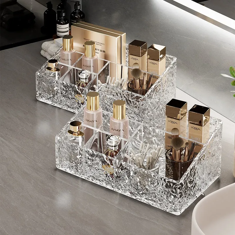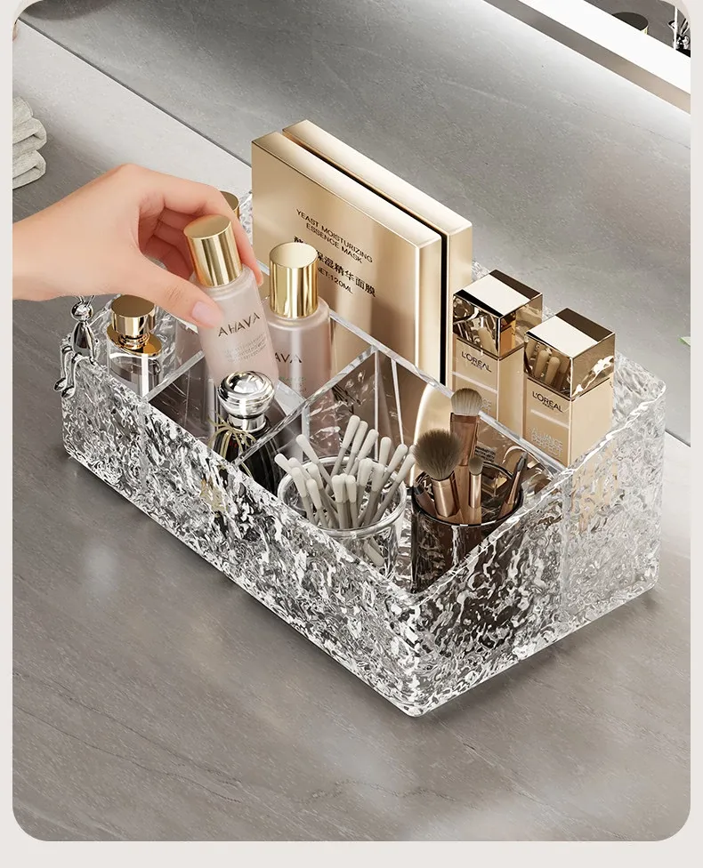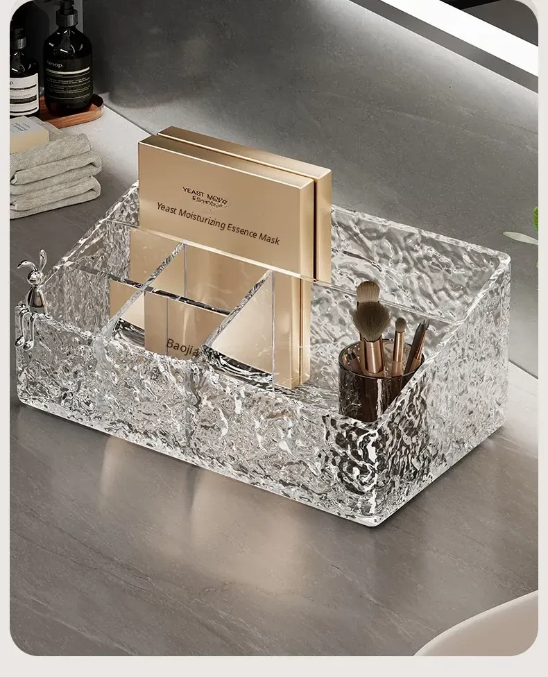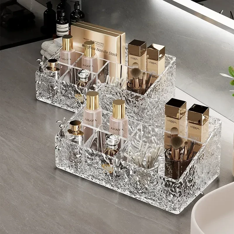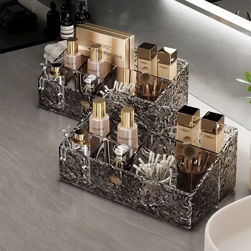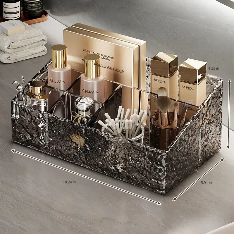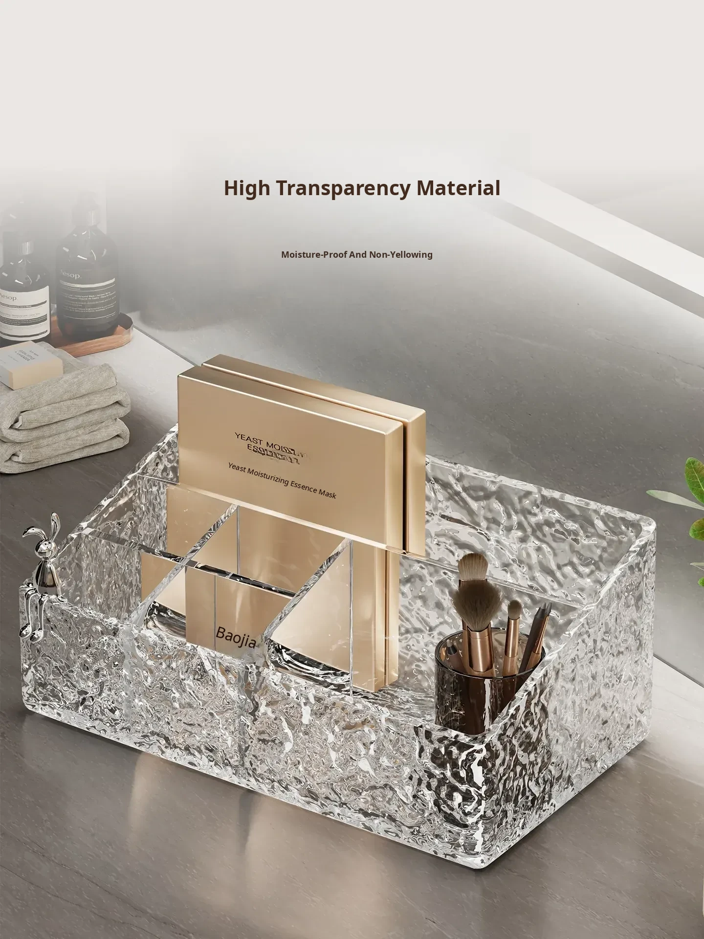 Elegant Desktop Makeup Organizer - Divided Skincare Storage Rack for Vanity - Premium Transparent Lipstick and Mask Holder - Perfect for Neat and Stylish Beauty Arrangements