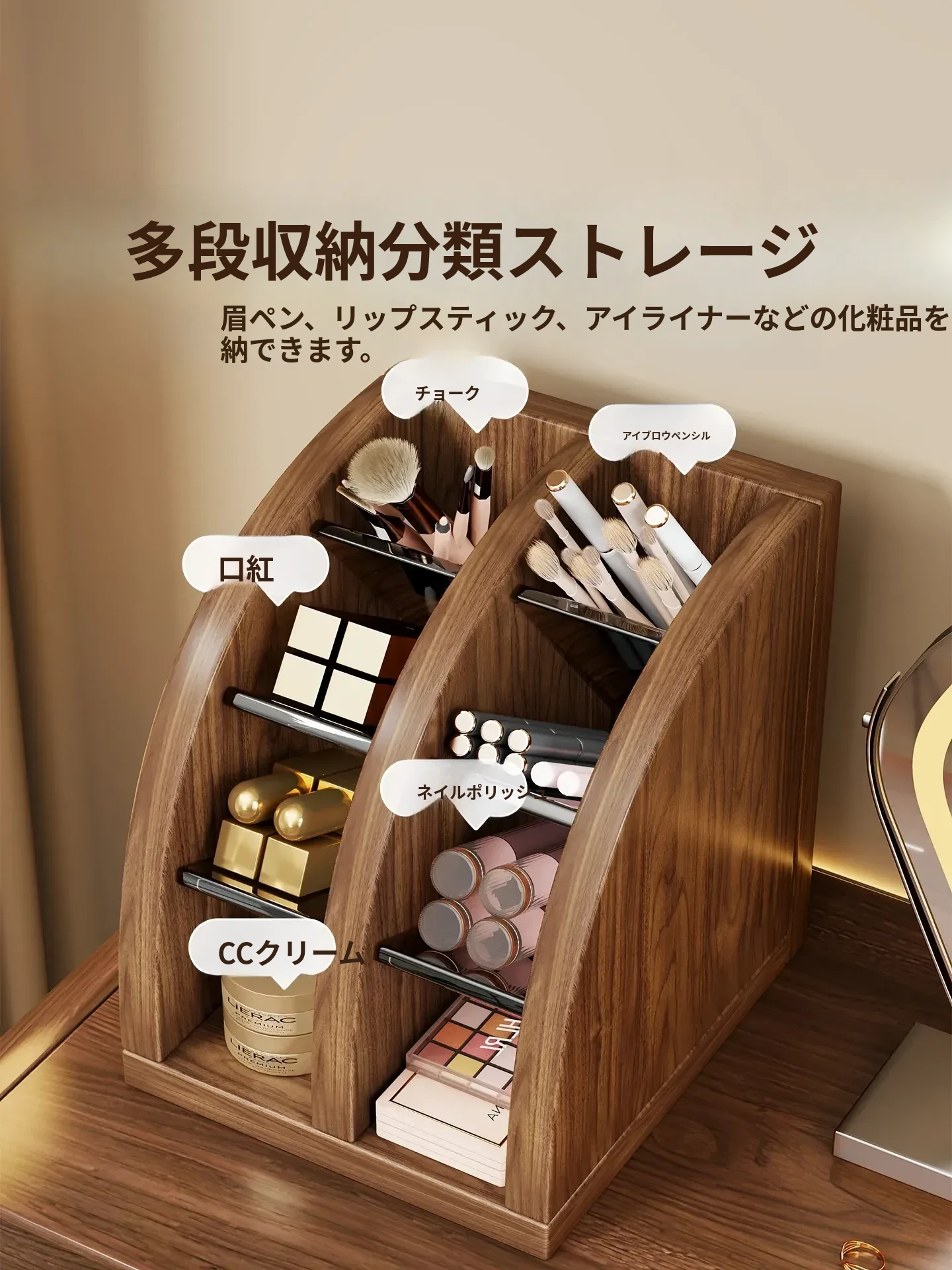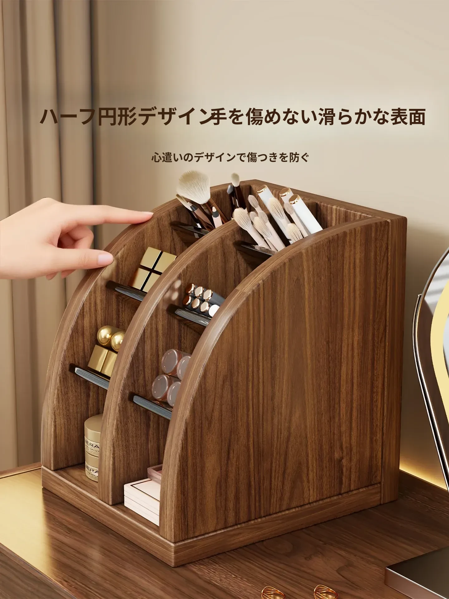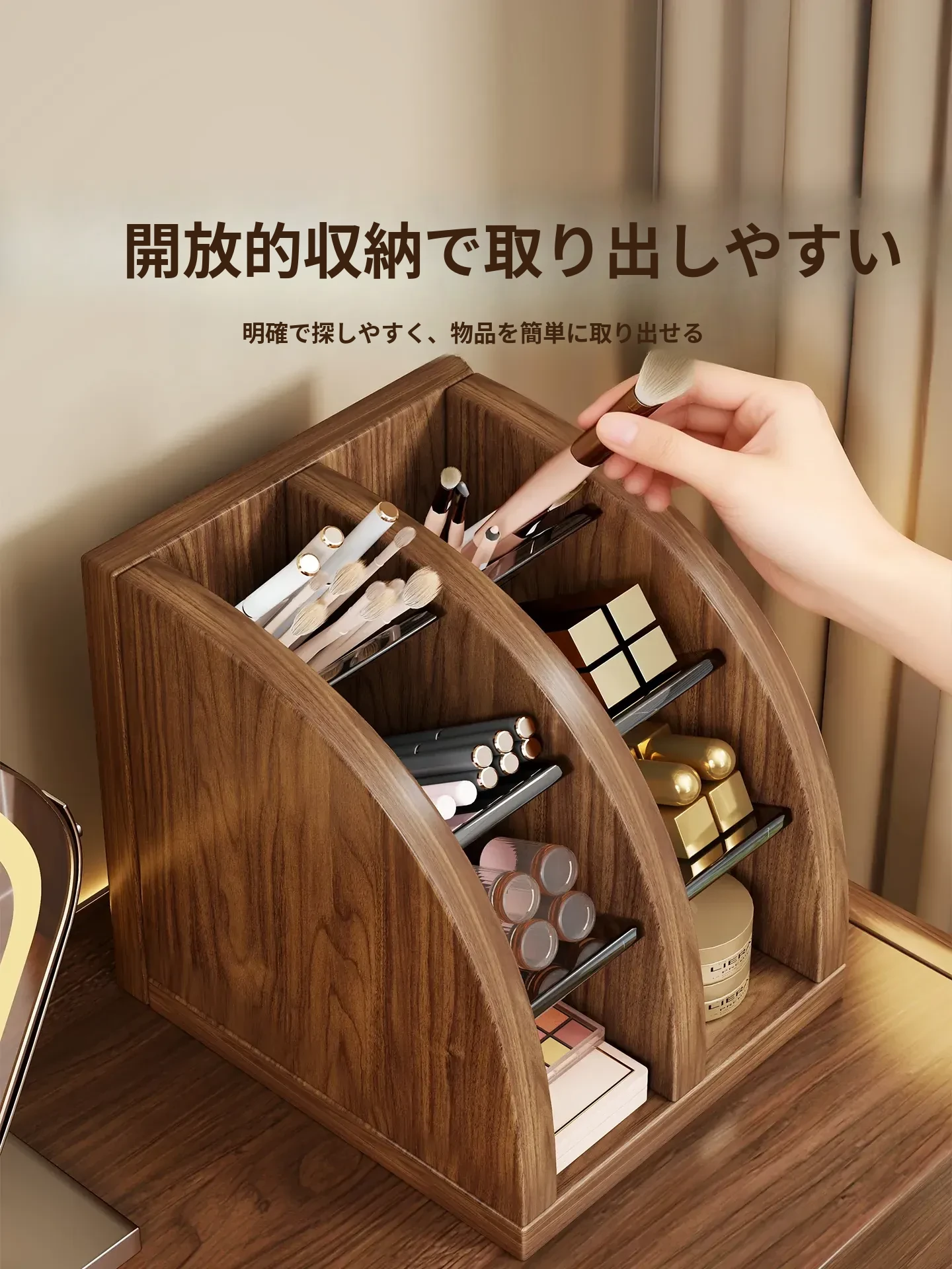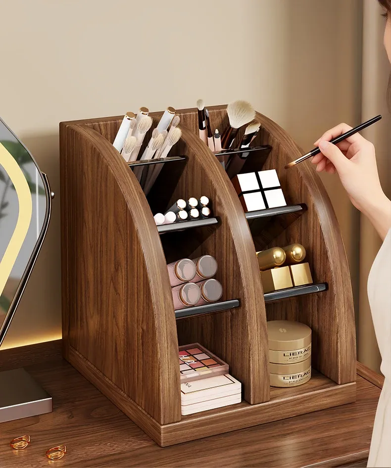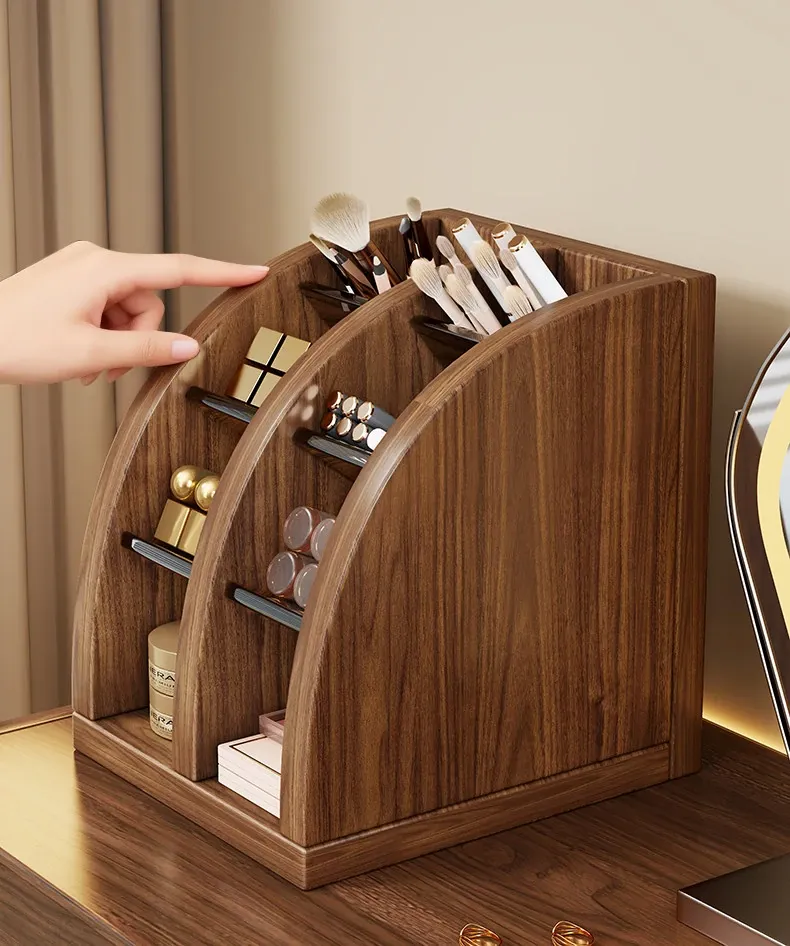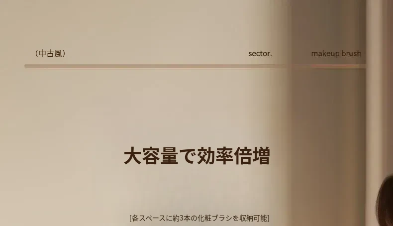 メイクブラシ収納筒 - 軽やかでスタイリッシュなデザイン!化粧台やデスクにぴったりなアイシャドウ、眉ペン、パウダーブラシをすっきり整理。使いやすい扇形の口紅仕切り付き!あなたのビューティーアイテムを美しく収納しましょう!