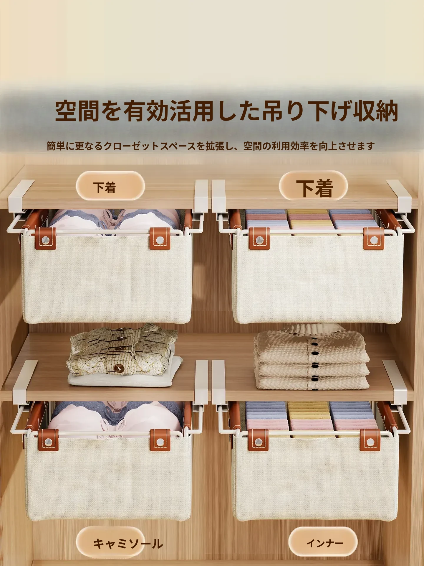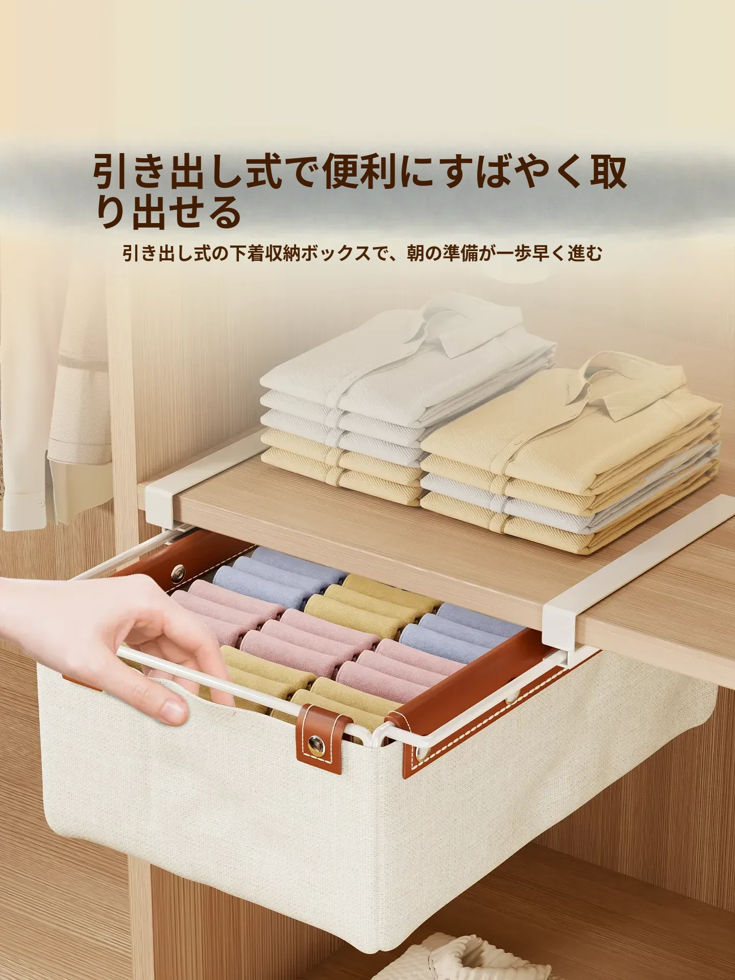 靴下収納ボックス 便利な吊り下げ式 引き出し型バスケット 衣類収納に最適!クローゼットやタンスの下にぴったりの整理整頓ボックスで、内衣やパンツもスッキリ収納!