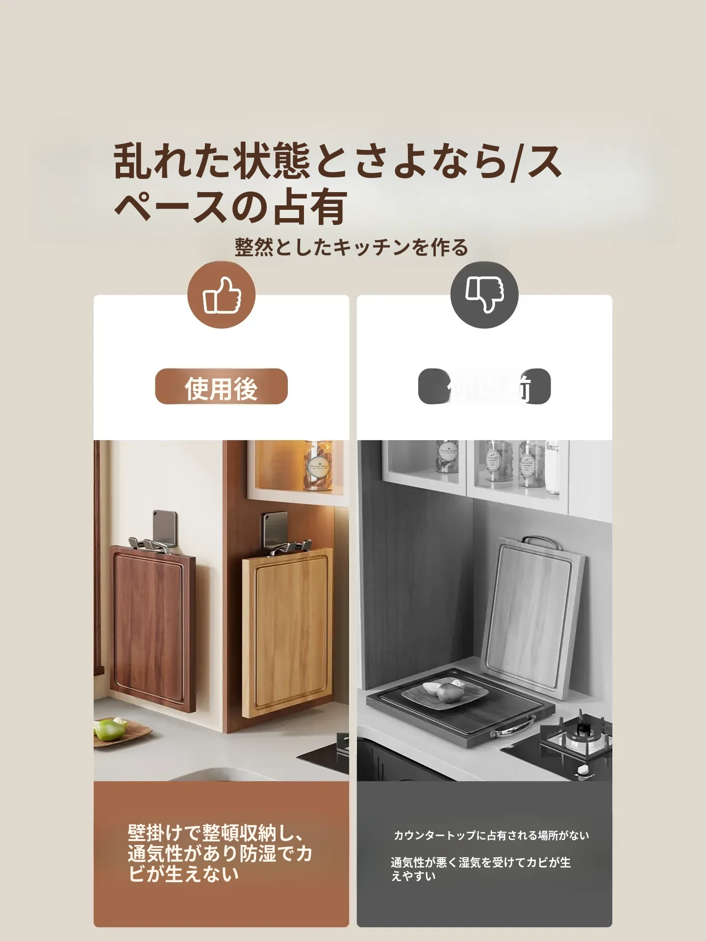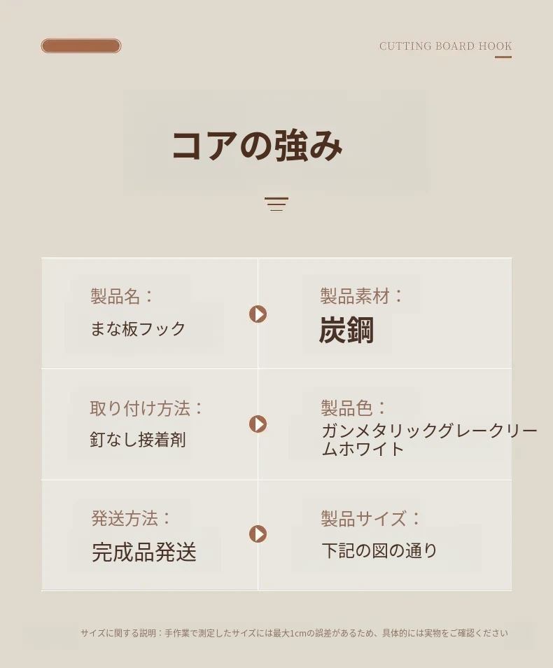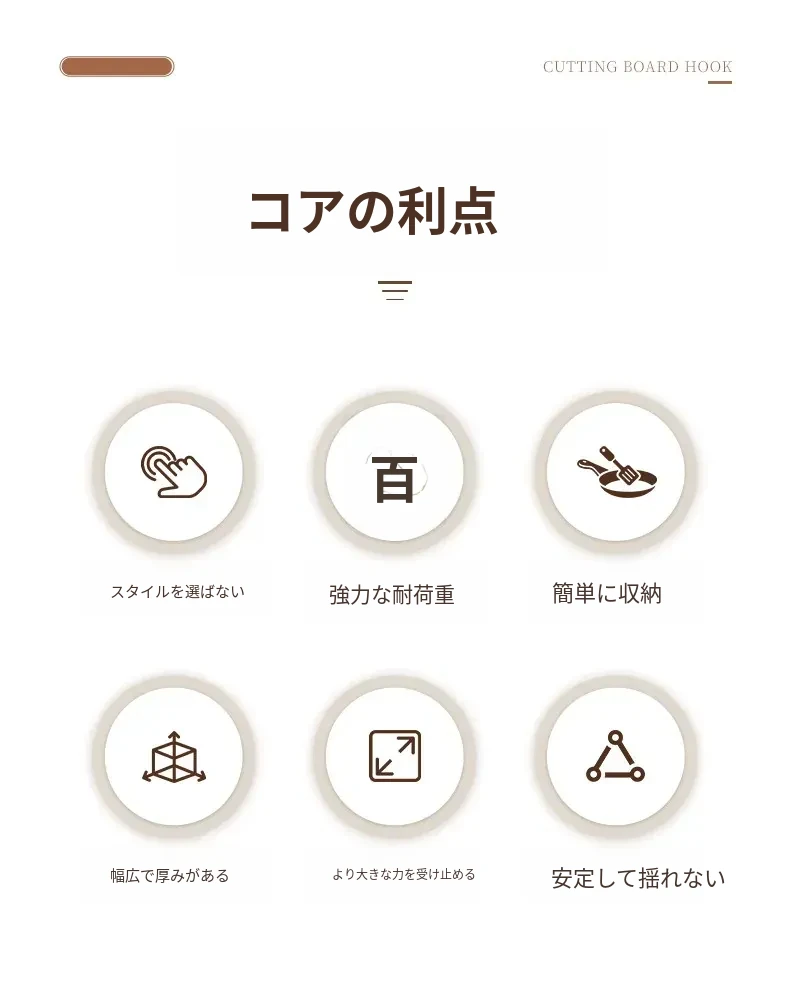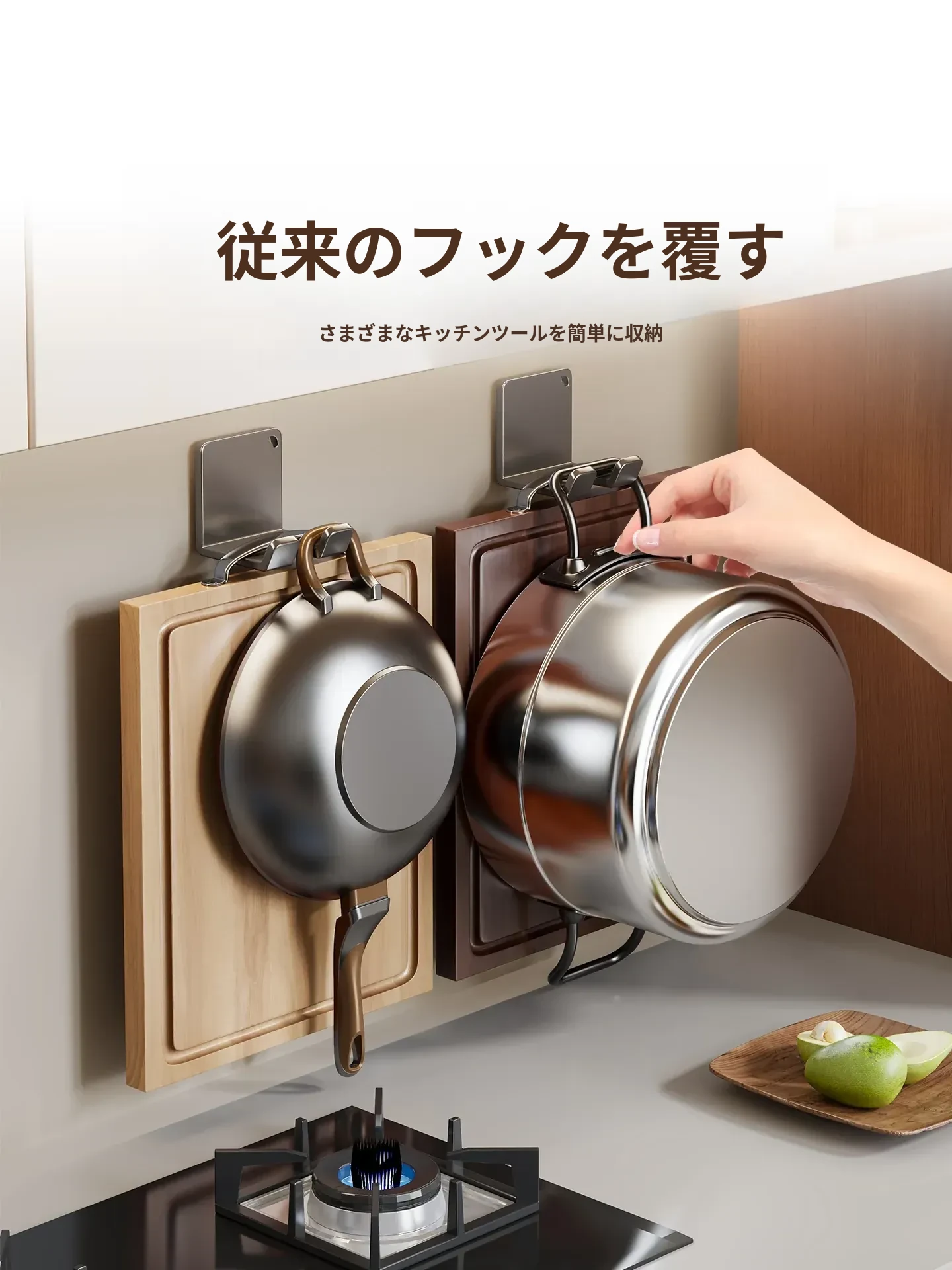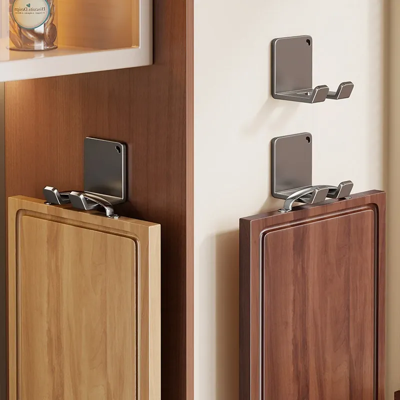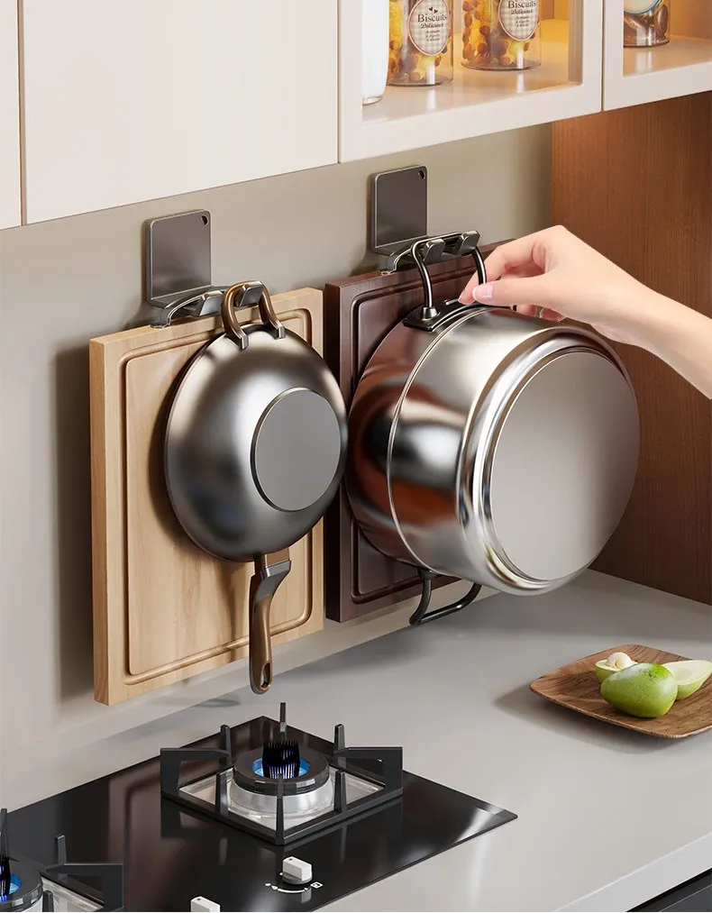 キッチン用の壁掛けフック - 穴あけ不要で重いものも安心!頑丈な収納ラックでまな板や作業台をスッキリ整理。あなたのキッチンを美しく保つ強力掛け具!