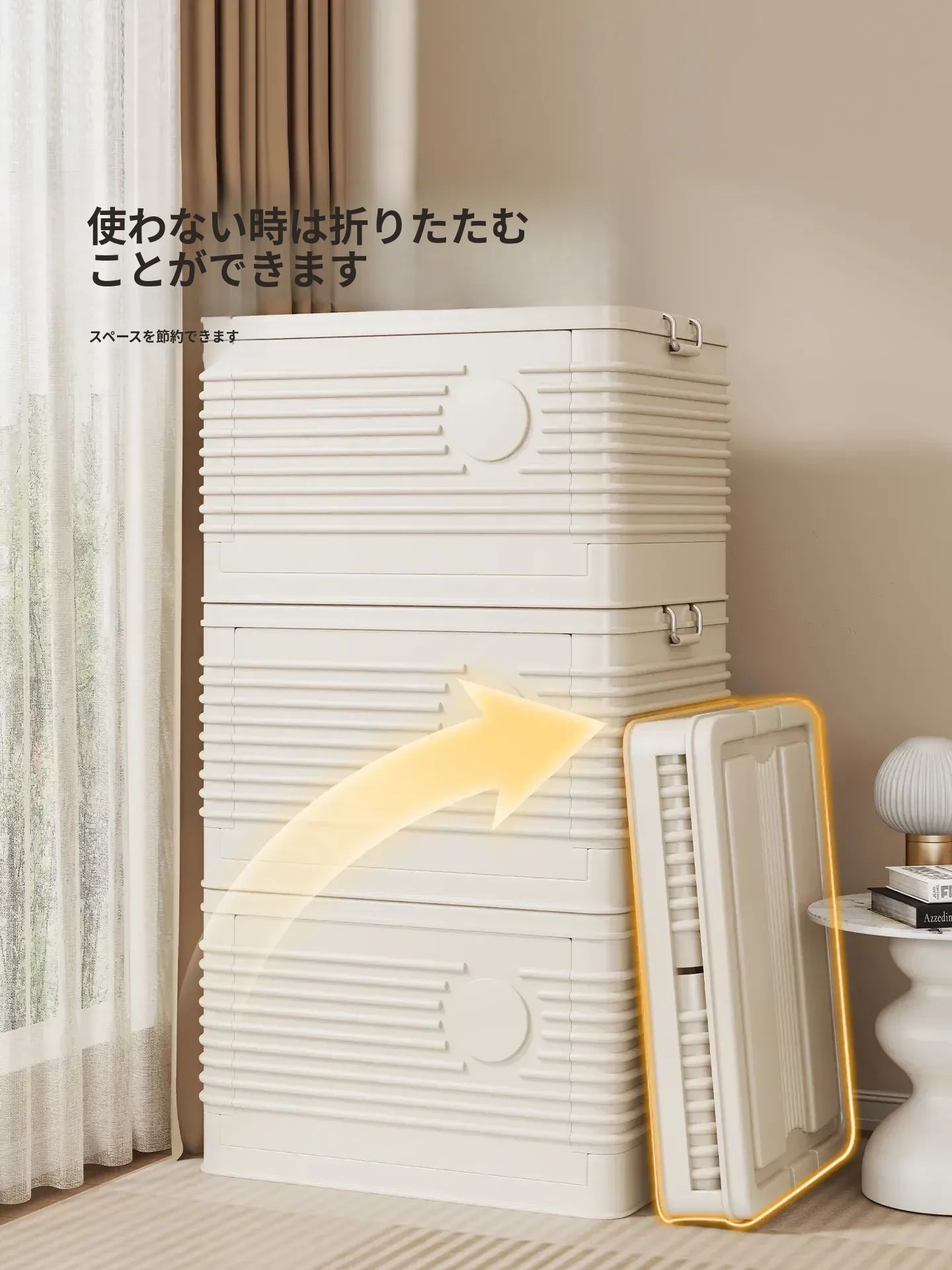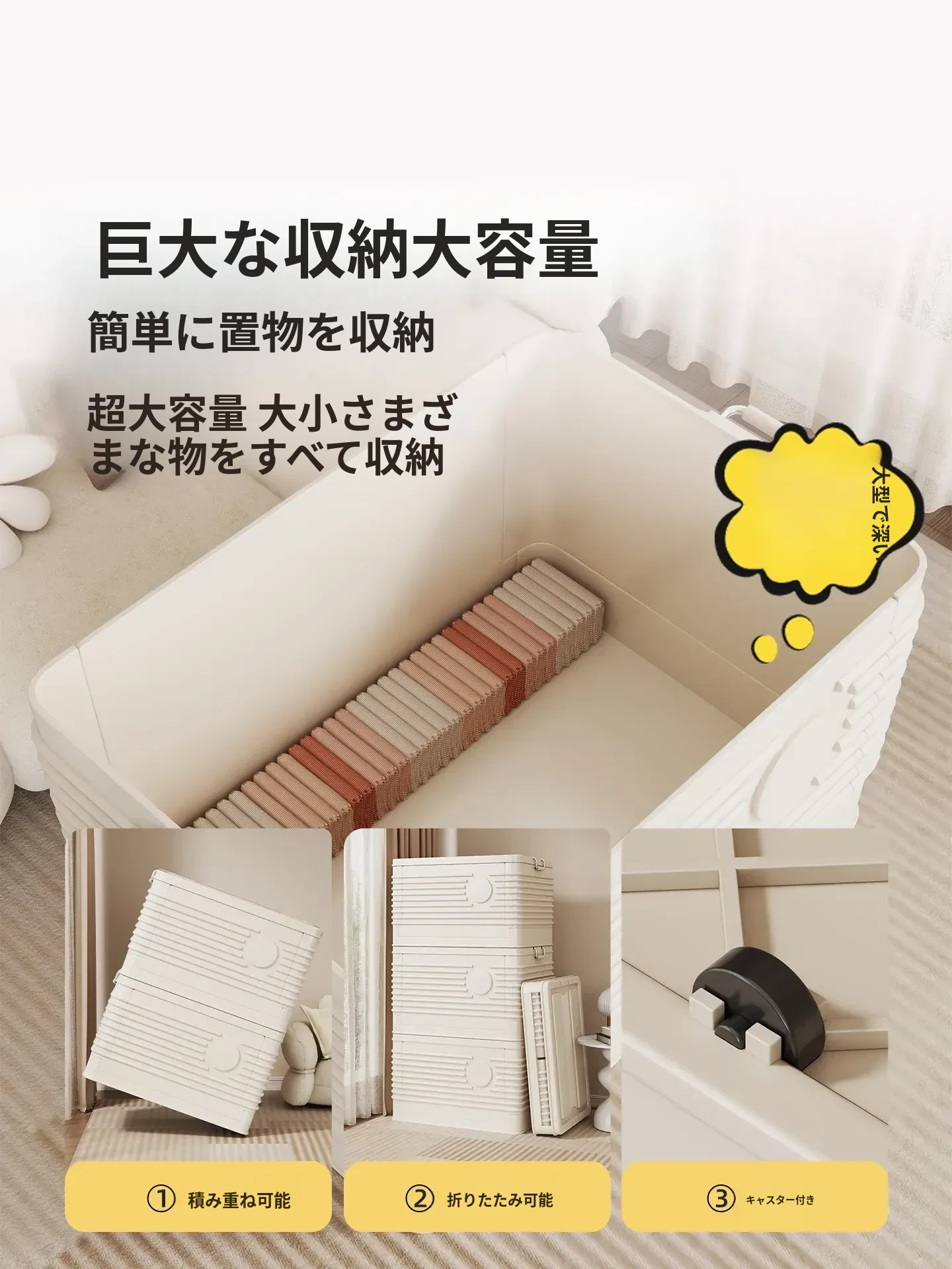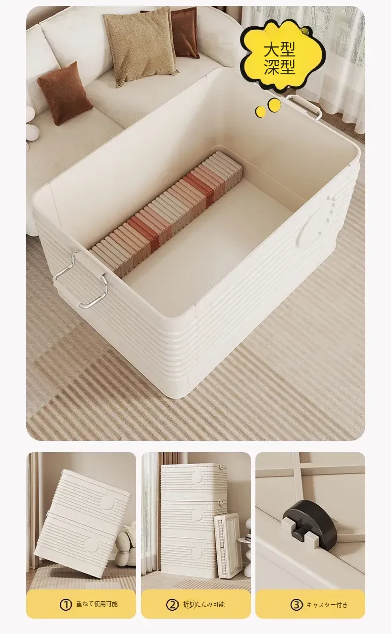 折りたたみ式大容量収納ボックス - 蓋付きで本やおもちゃ、衣類を整理整頓!家族全員の必需品、スッキリ収納でお部屋も広々。これ一つで整理整頓が簡単に!