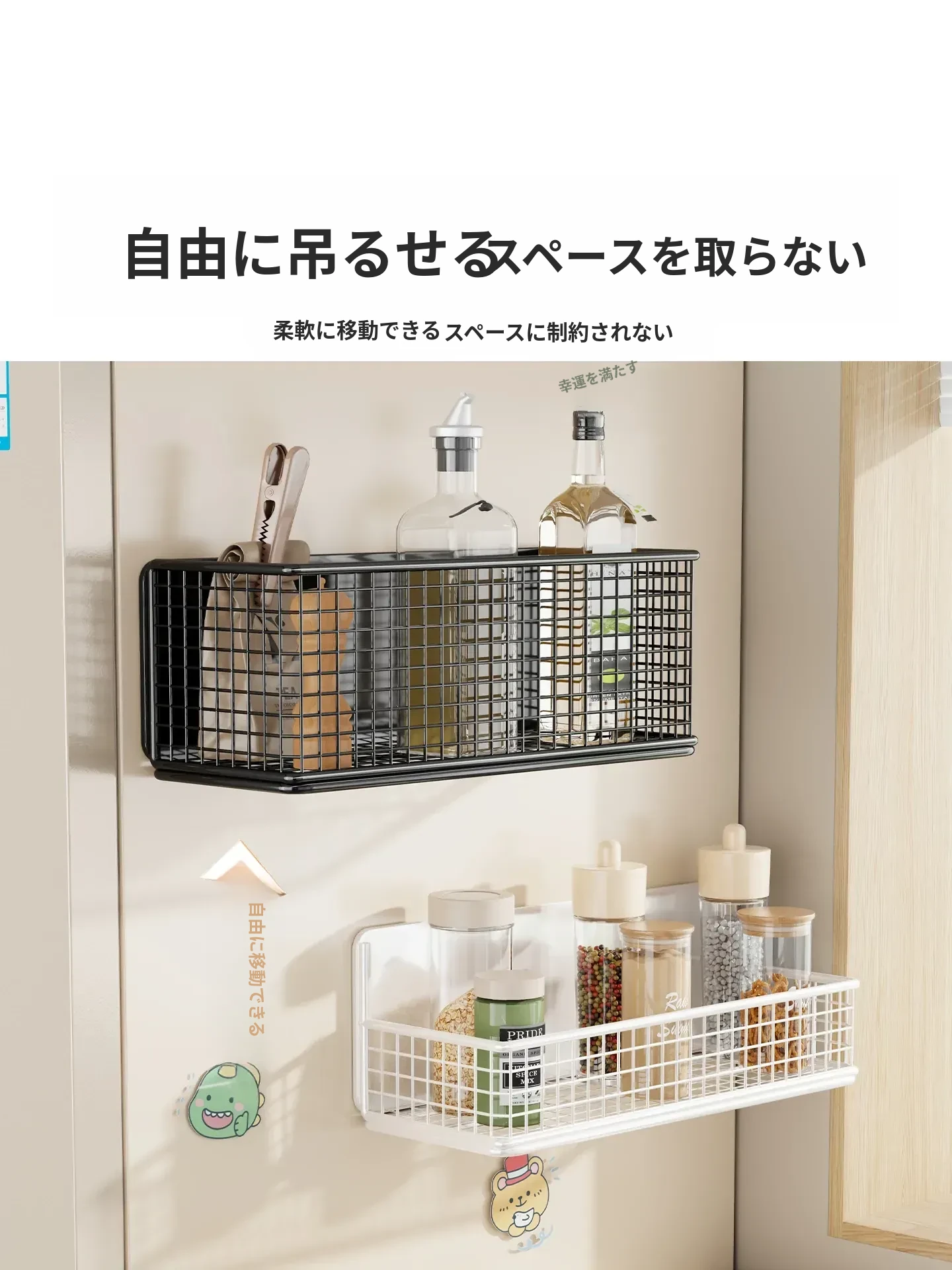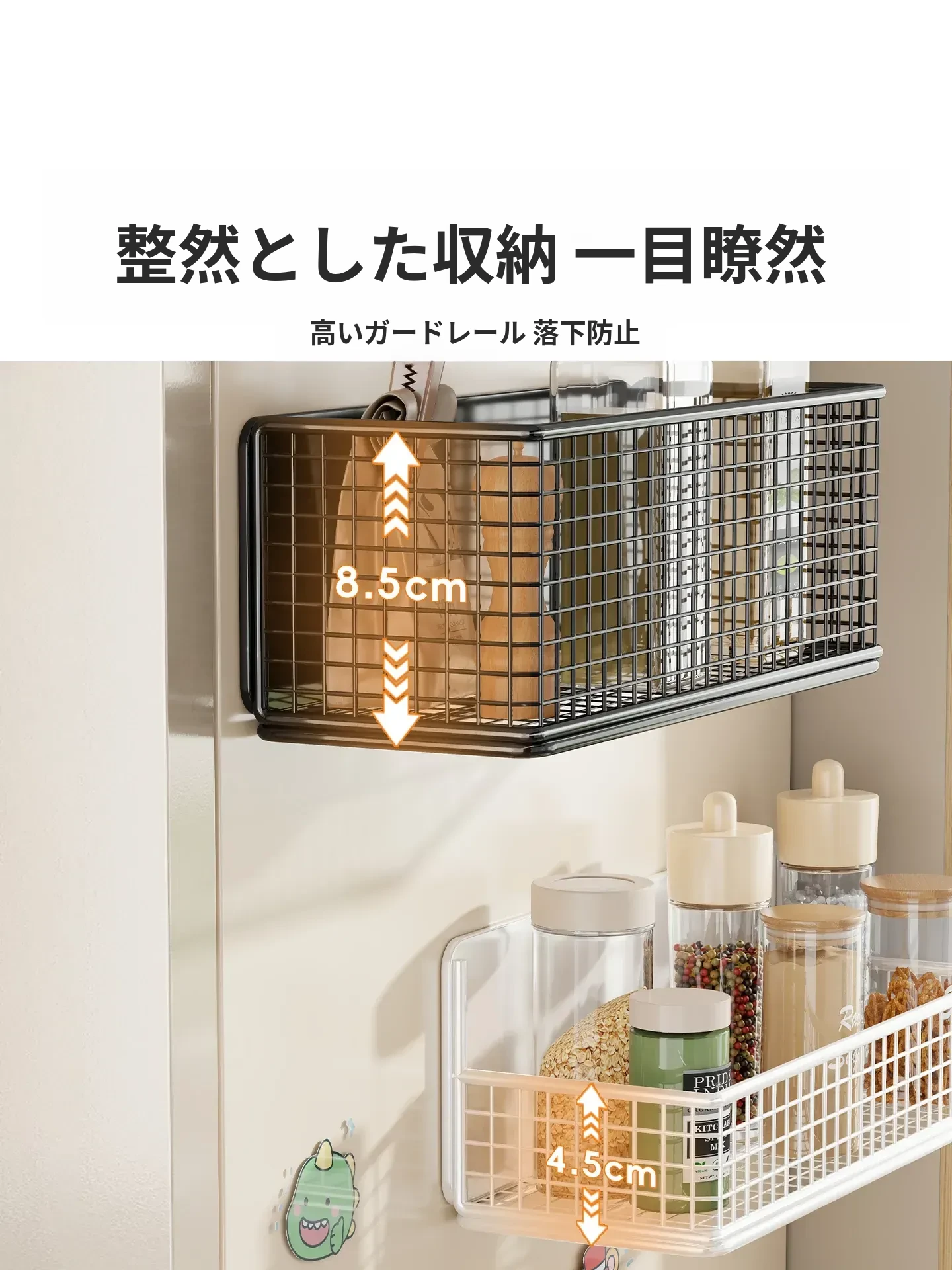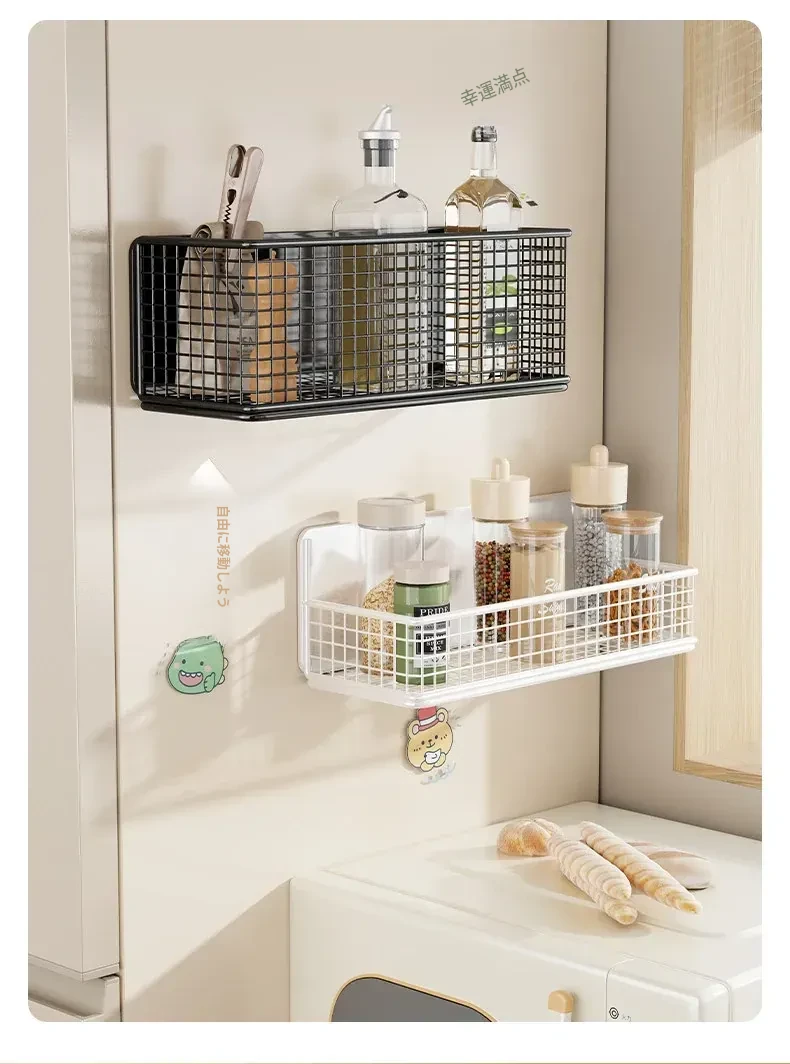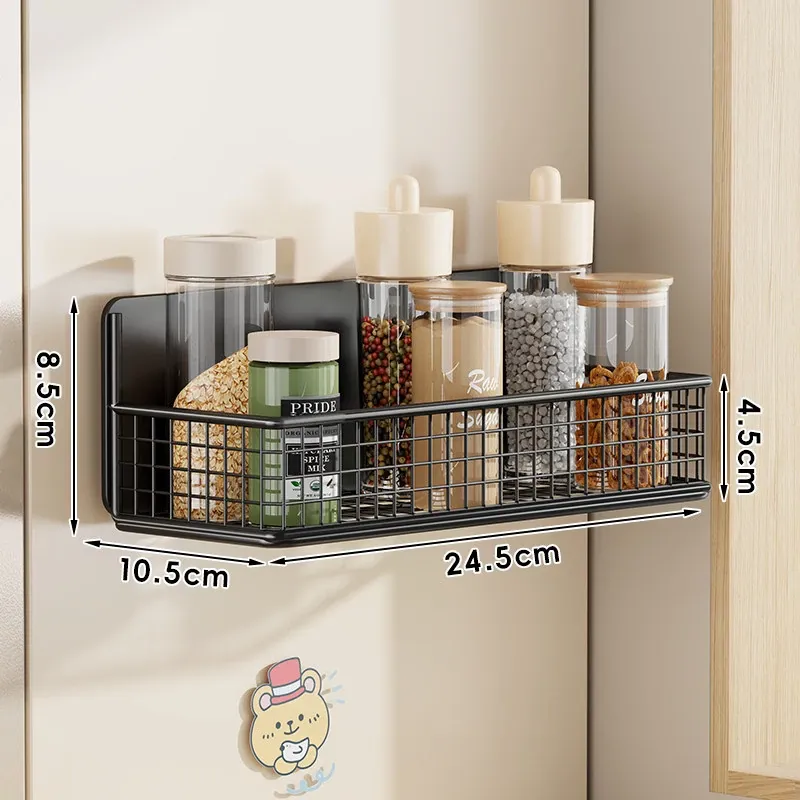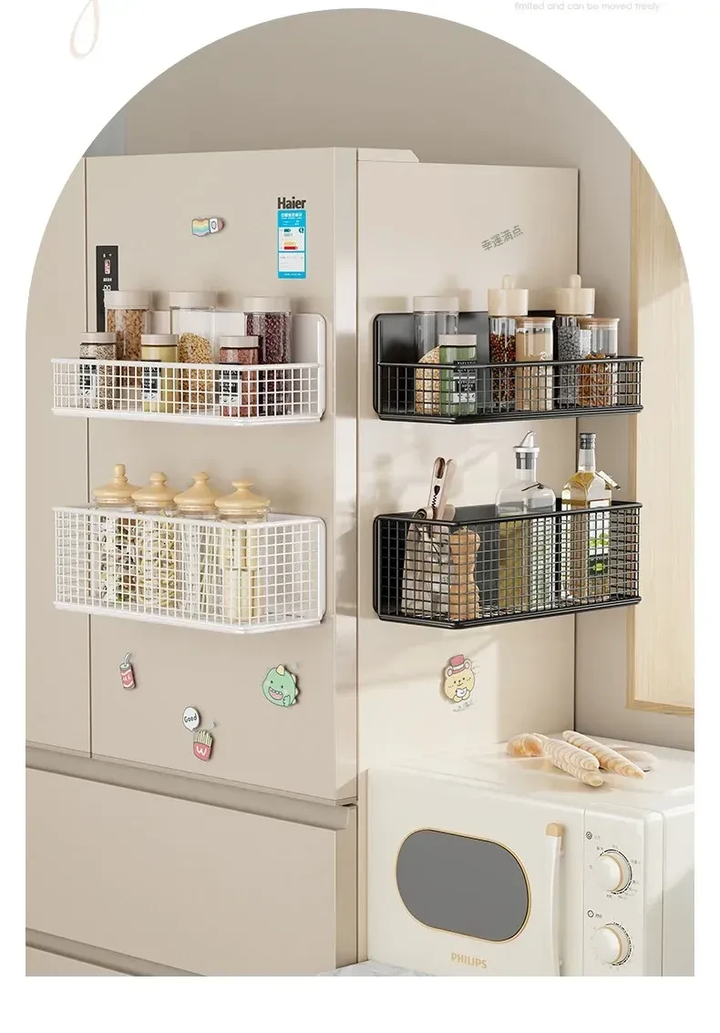 冷蔵庫用マグネット収納ラック - 省スペースで便利な壁掛け式多機能キッチン調味料ラック!整理整頓が簡単にでき、磁石でしっかり固定。キッチンをスッキリさせる必需品です!
