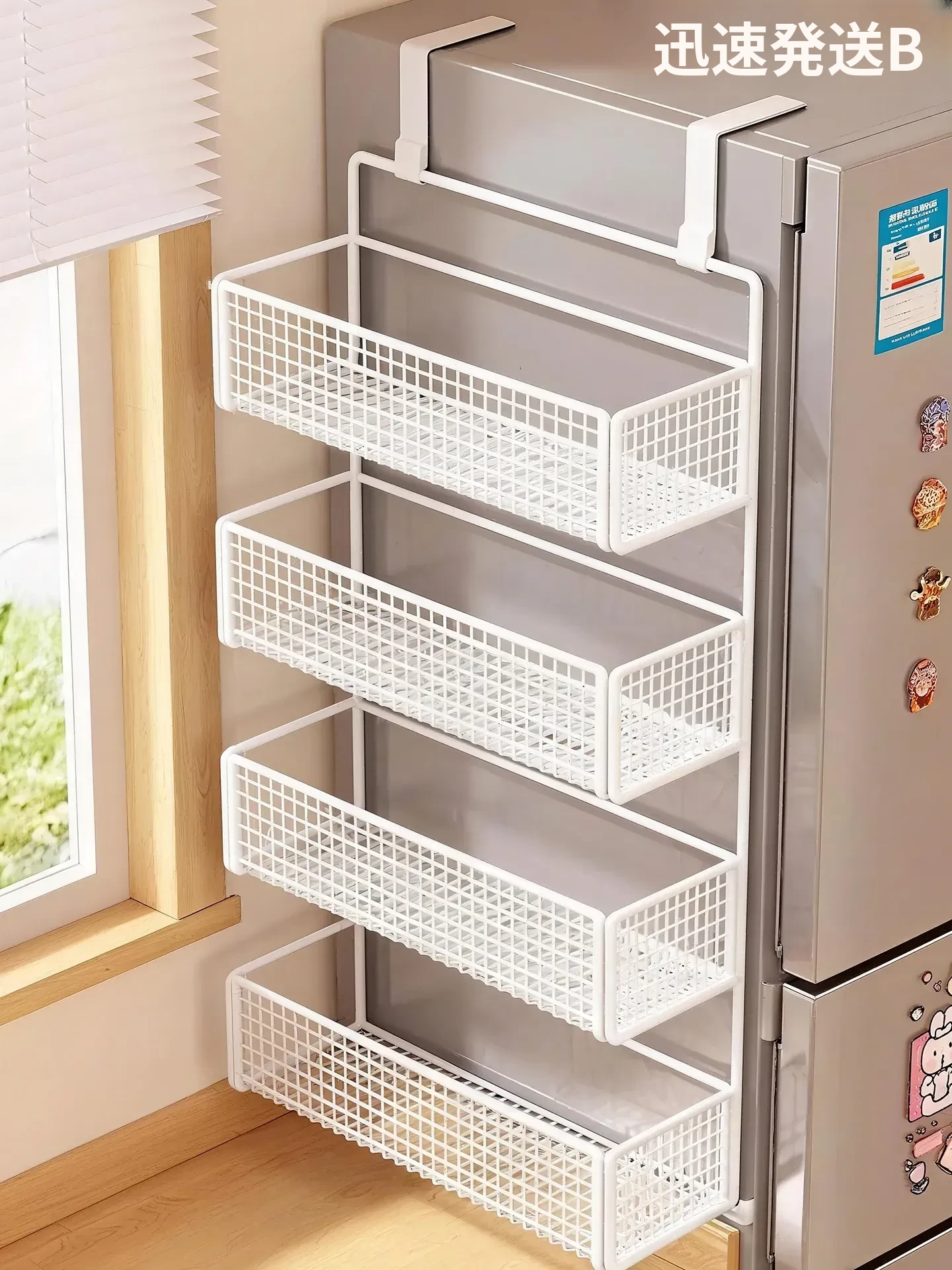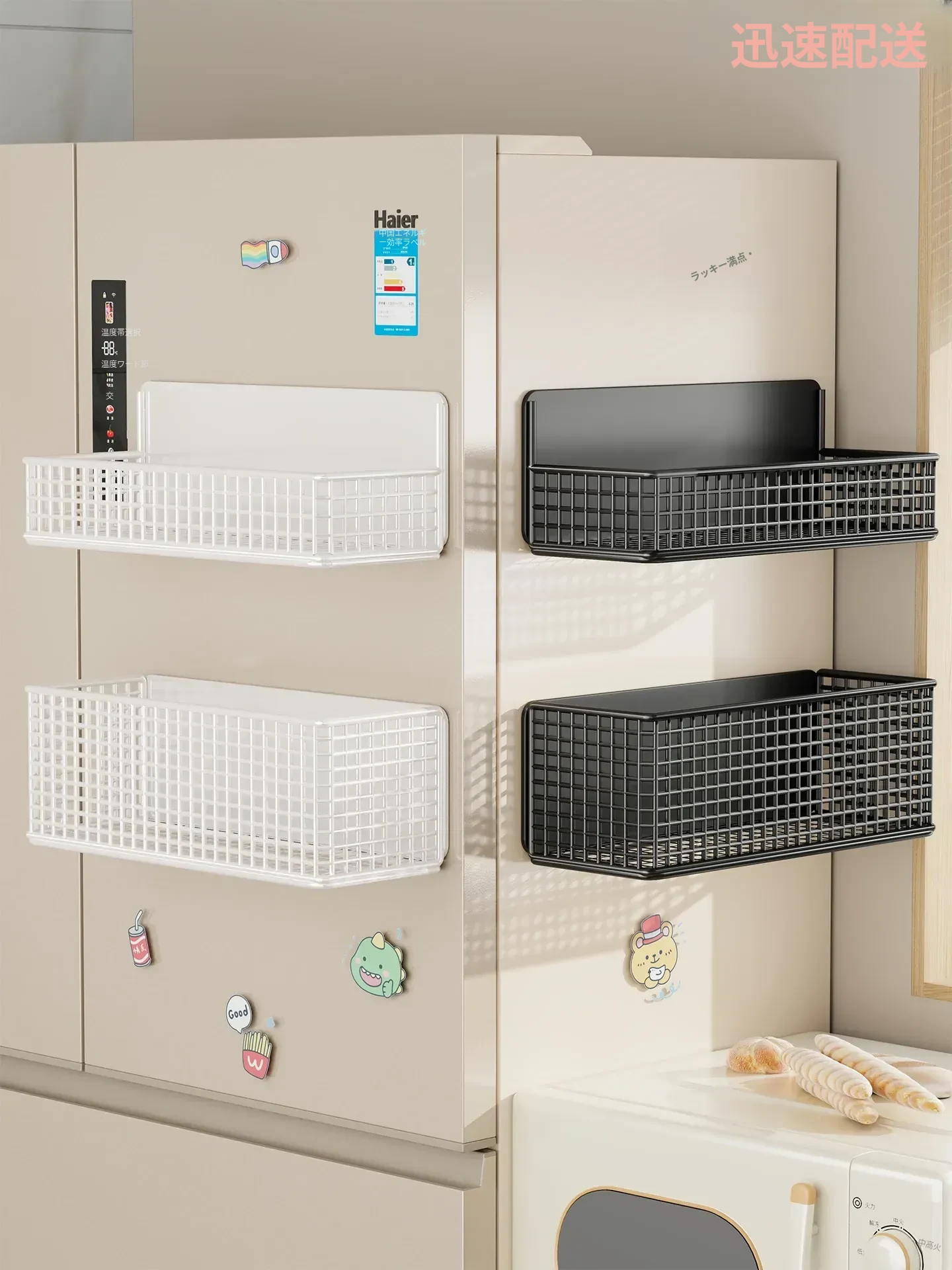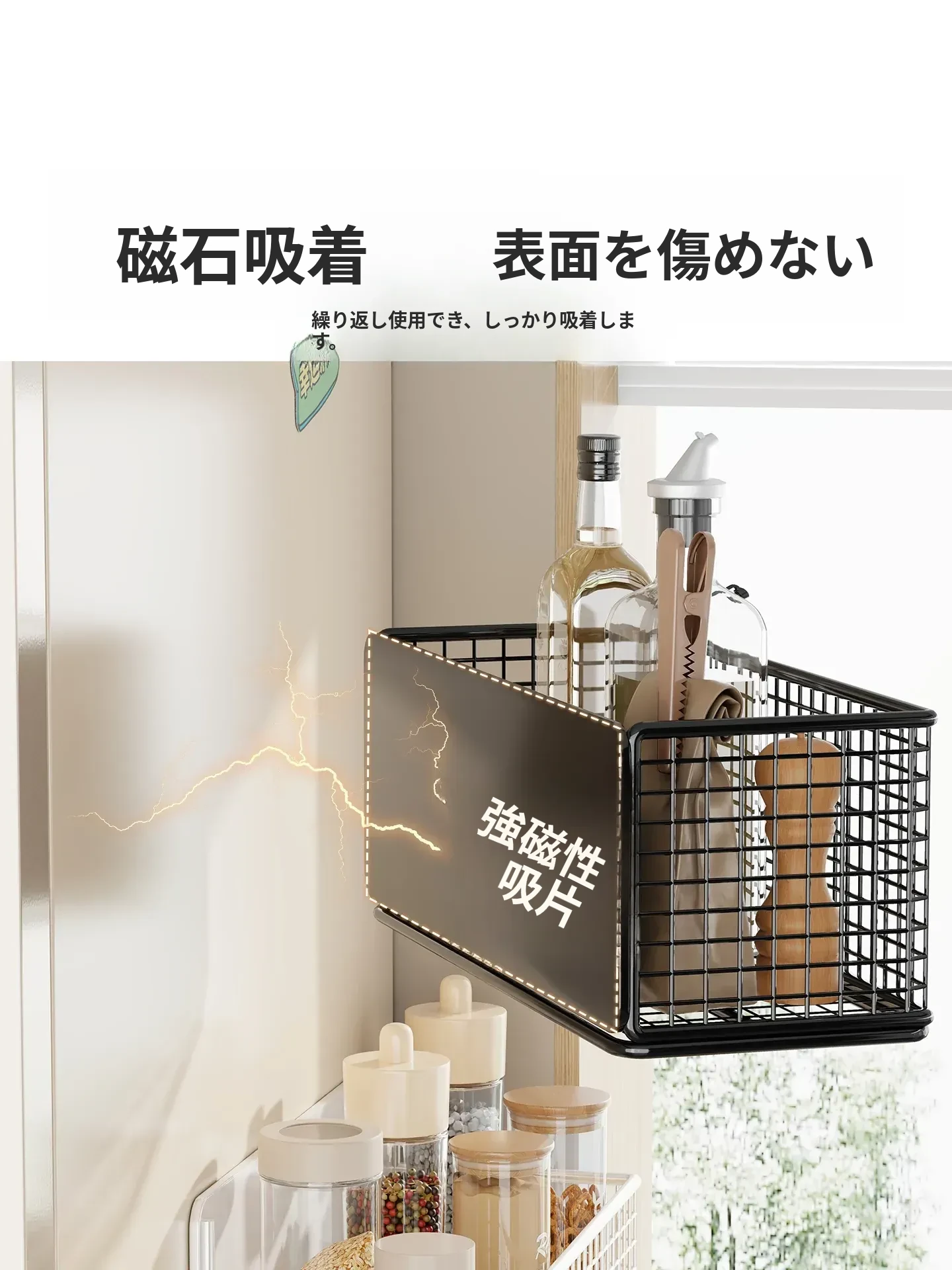 冷蔵庫用マグネット収納ラック - 省スペースで便利な壁掛け式多機能キッチン調味料ラック!整理整頓が簡単にでき、磁石でしっかり固定。キッチンをスッキリさせる必需品です!