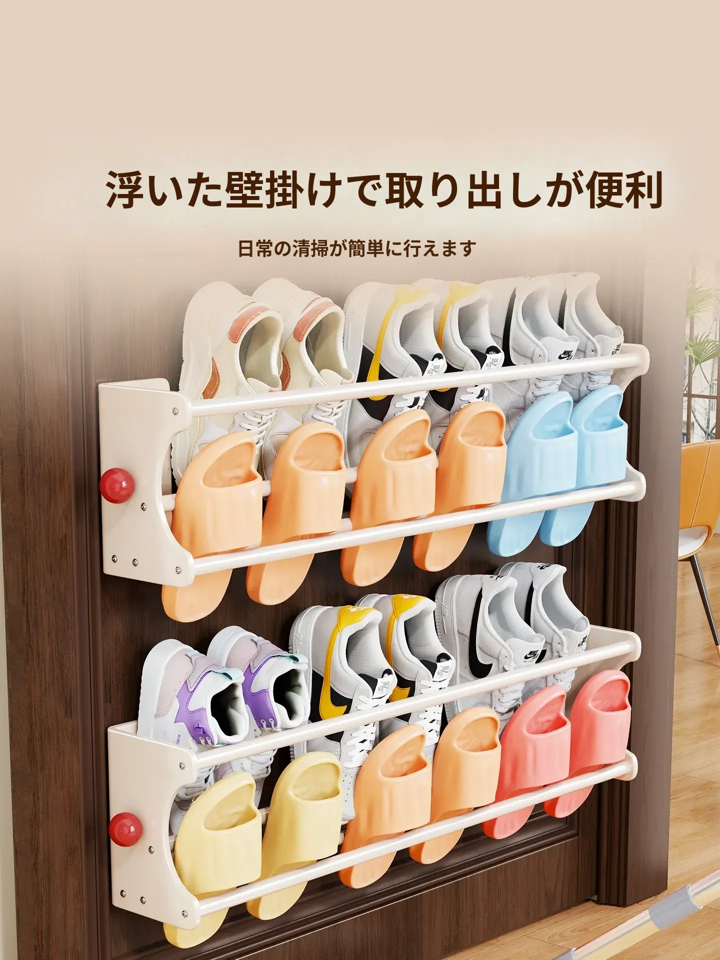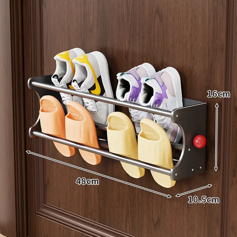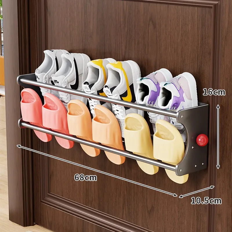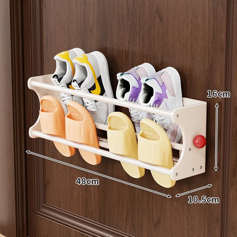 バスルームスリッパラック 壁掛けマグネット収納棚 家庭用シューズハンガー 多機能壁掛け整理グッズで清潔感アップ!狭いスペースでもスッキリ収納、便利でスタイリッシュな必需品!