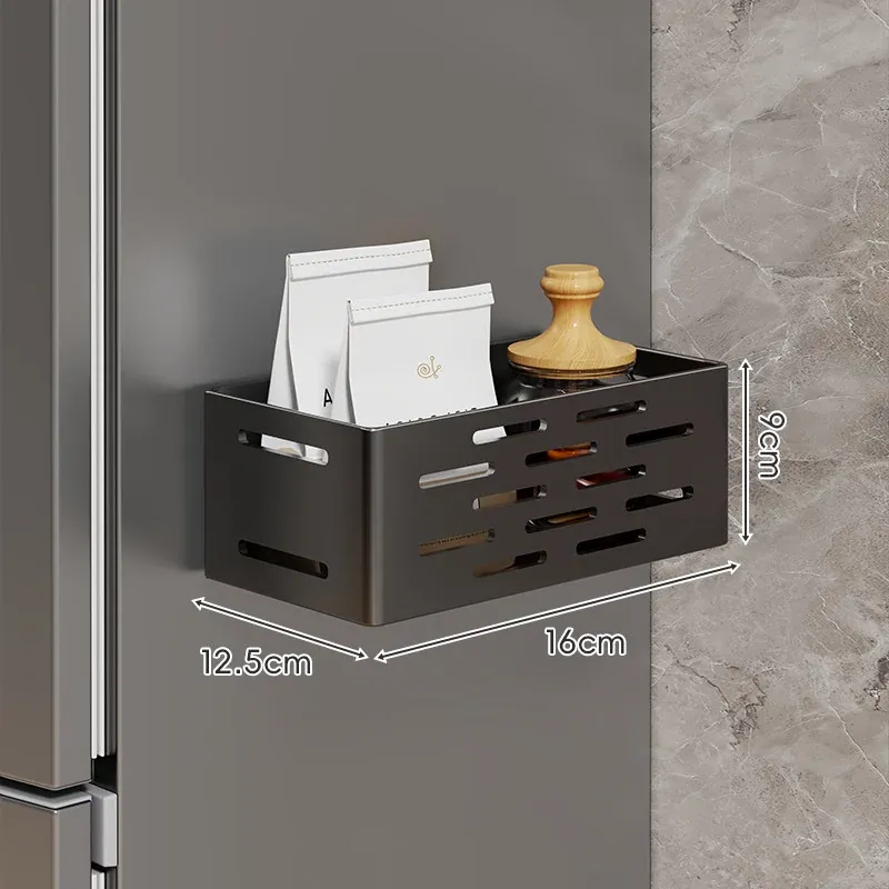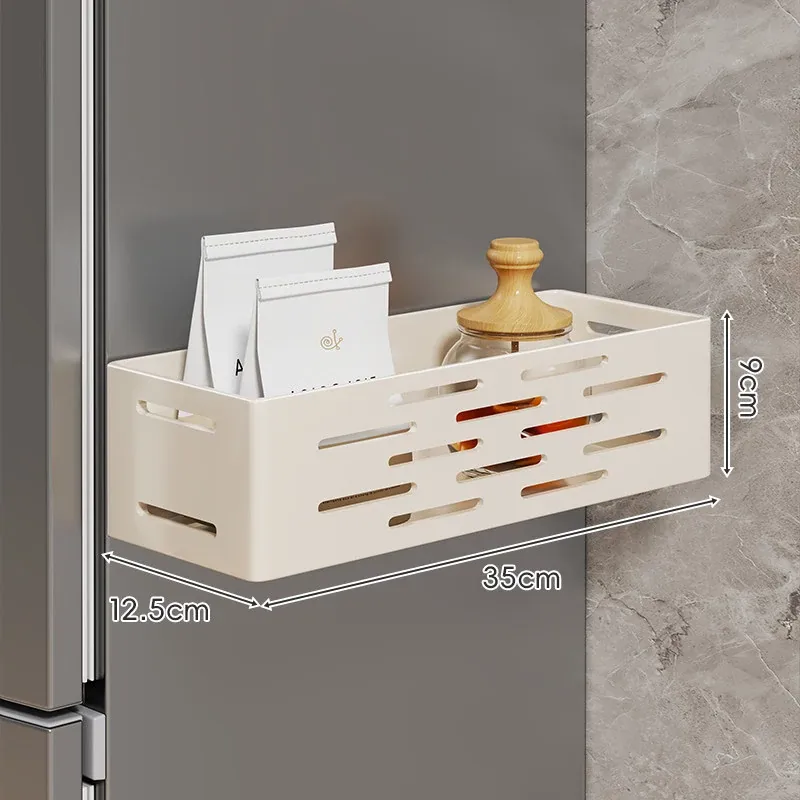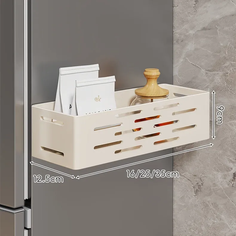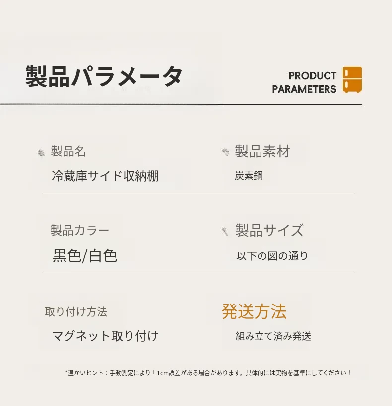 冷蔵庫サイド収納ラック - 磁石で簡単取り付け!穴あけ不要の壁掛け式多機能調味料ラック&ラップ収納。キッチンをスッキリ整理整頓!