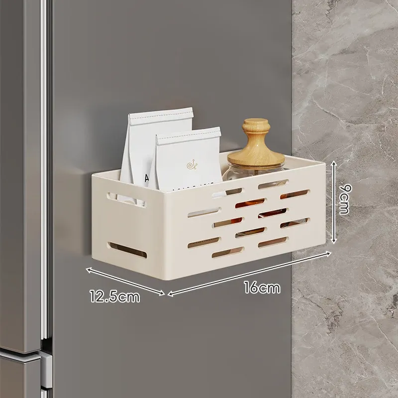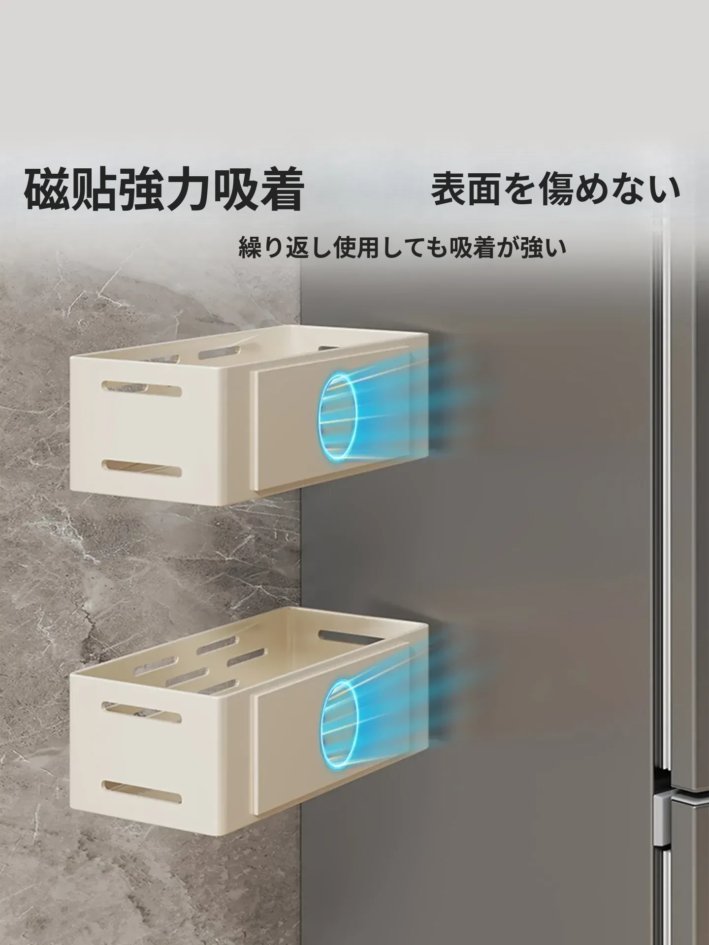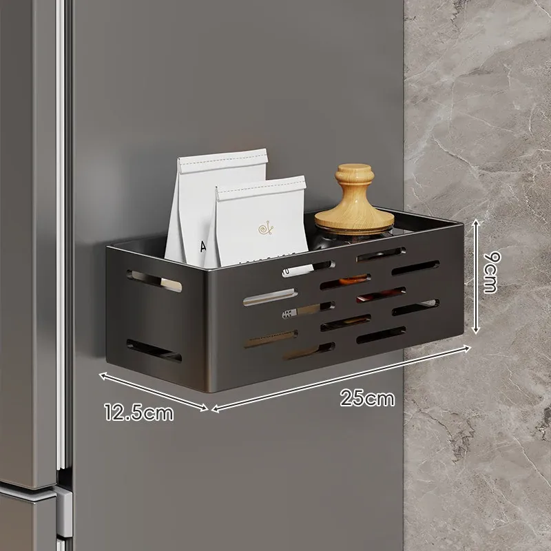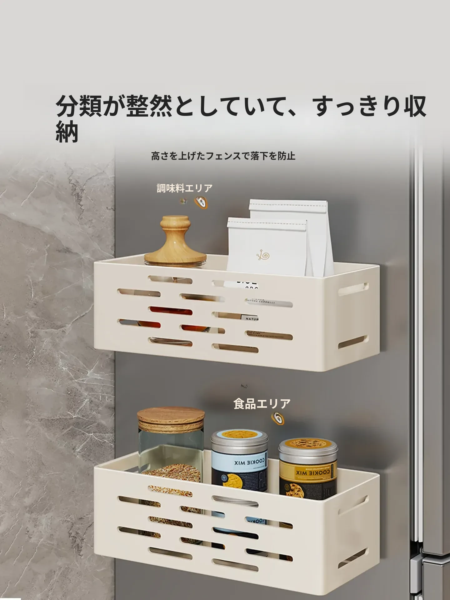 冷蔵庫サイド収納ラック - 磁石で簡単取り付け!穴あけ不要の壁掛け式多機能調味料ラック&ラップ収納。キッチンをスッキリ整理整頓!