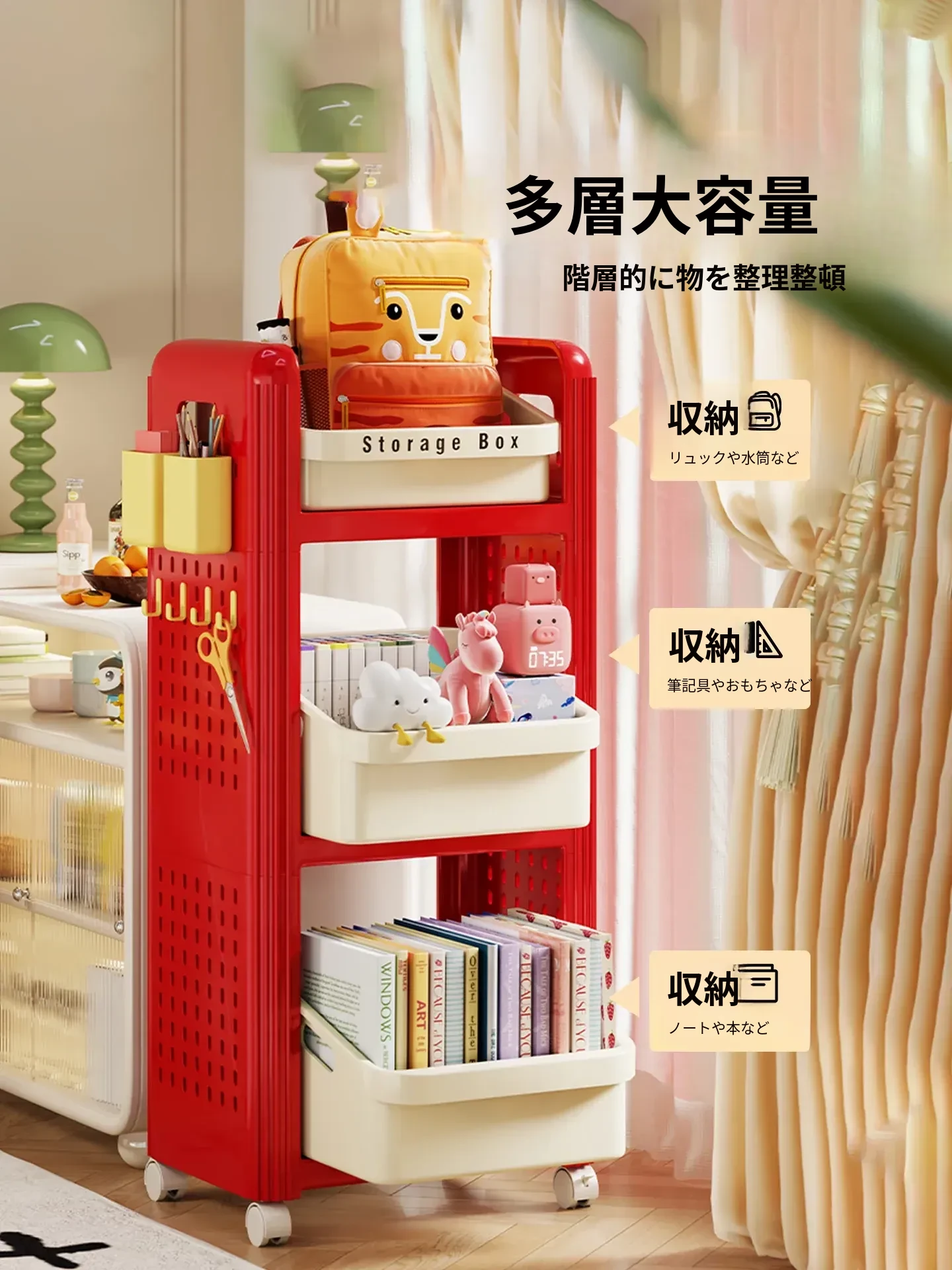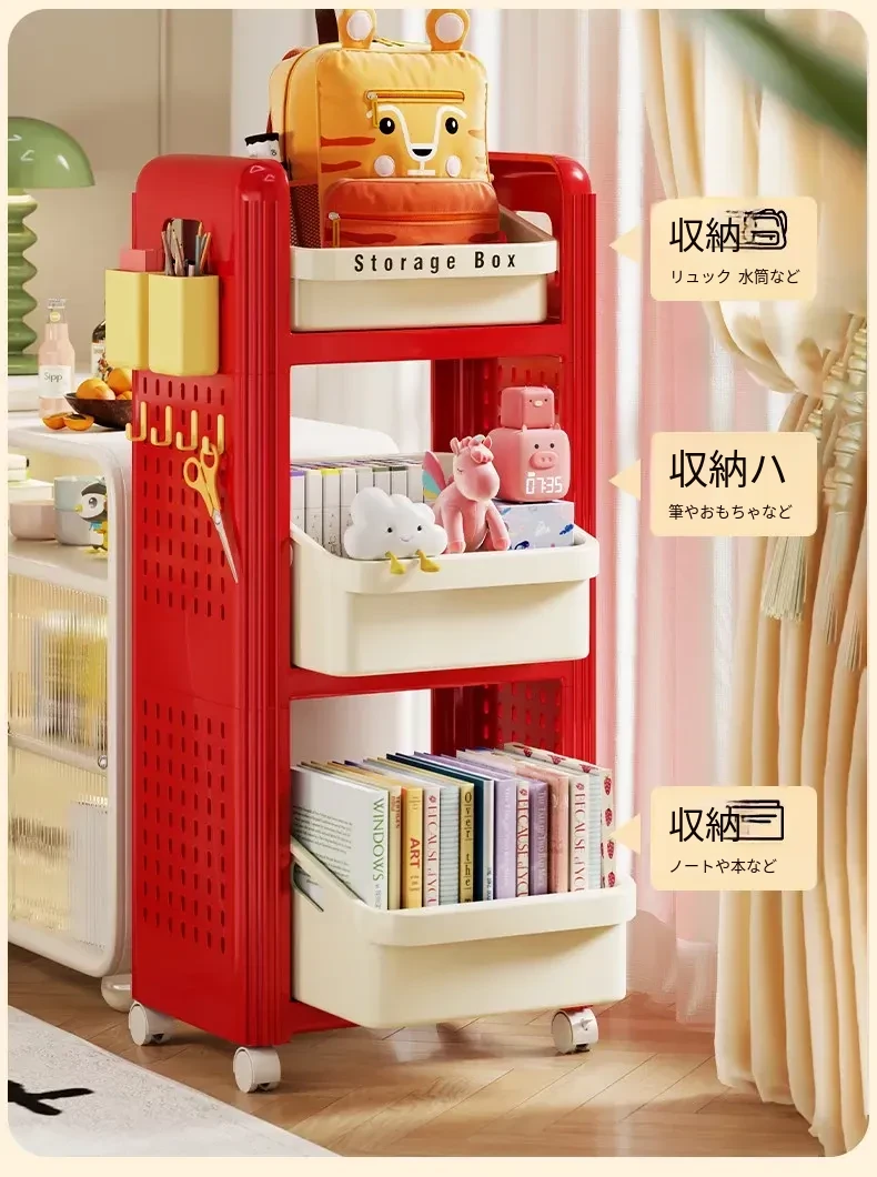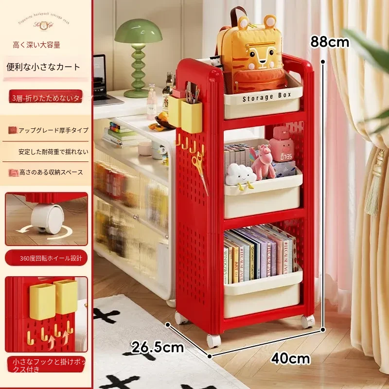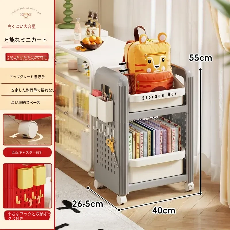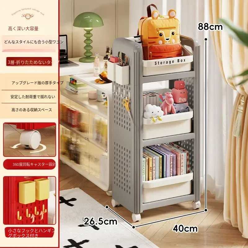 移動式キャスター付き多層収納ラック!家庭用・学生向けの書類整理に最適な書斎の必需品!書籍や文房具をスマートに整理整頓。デスク下にぴったりフィット!