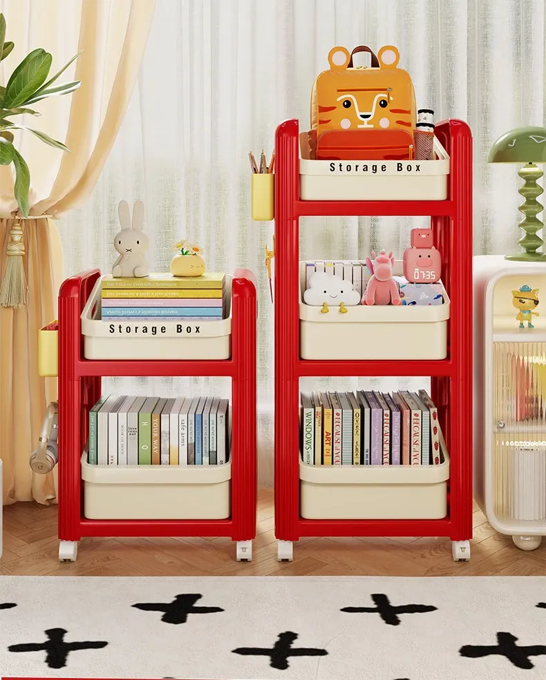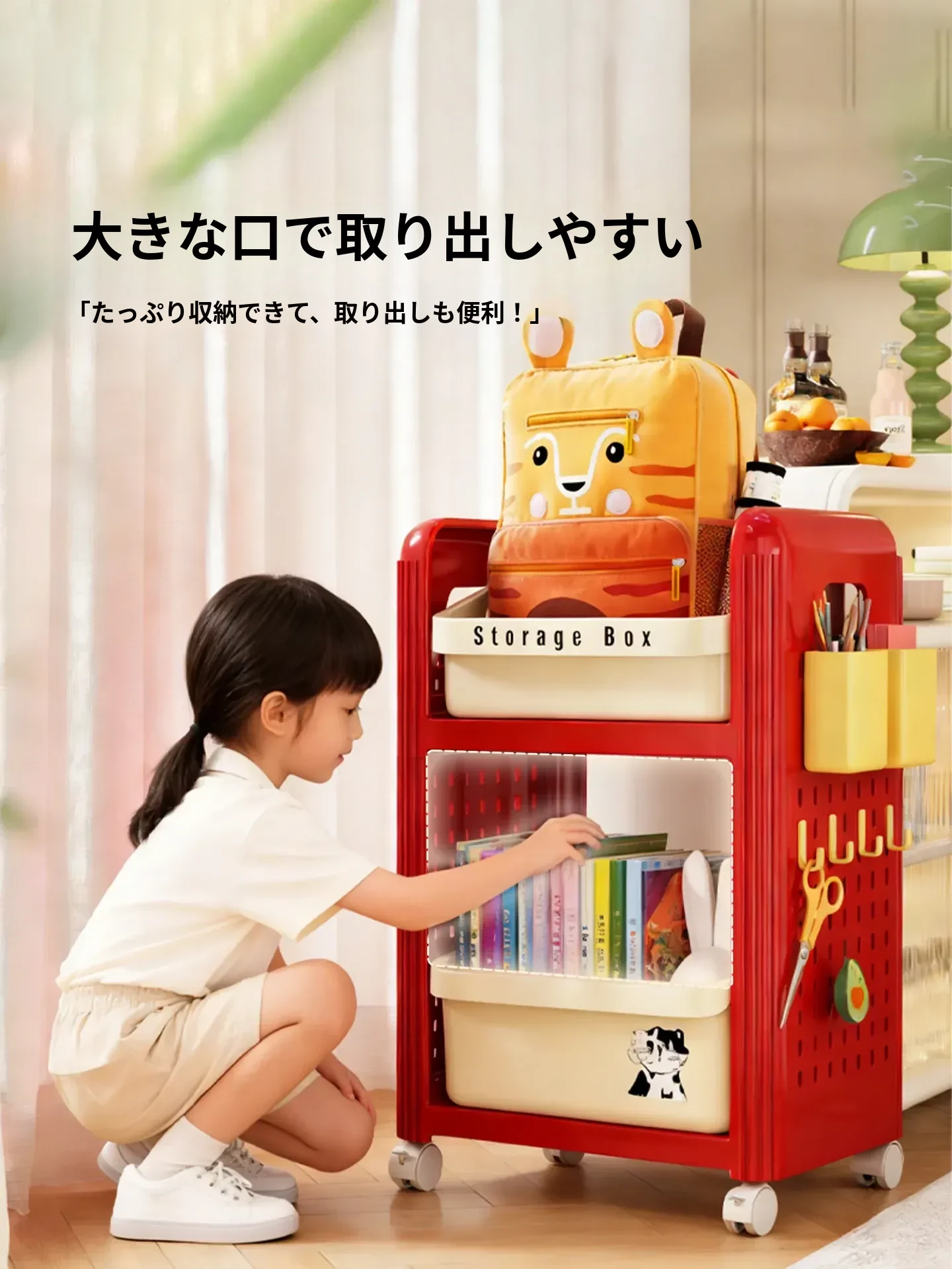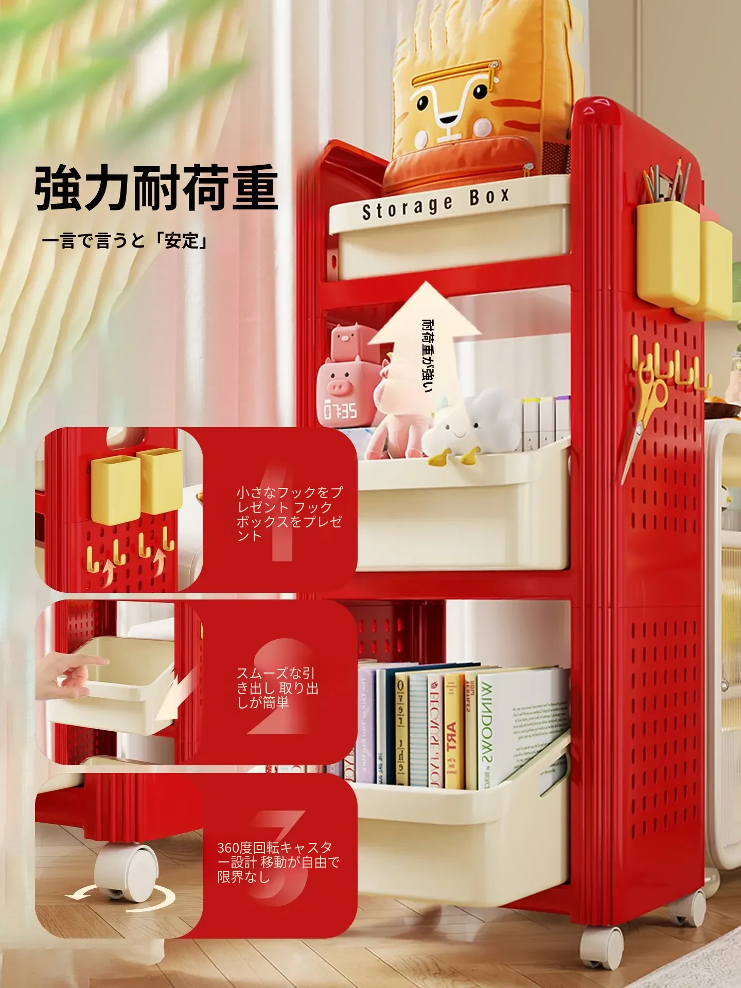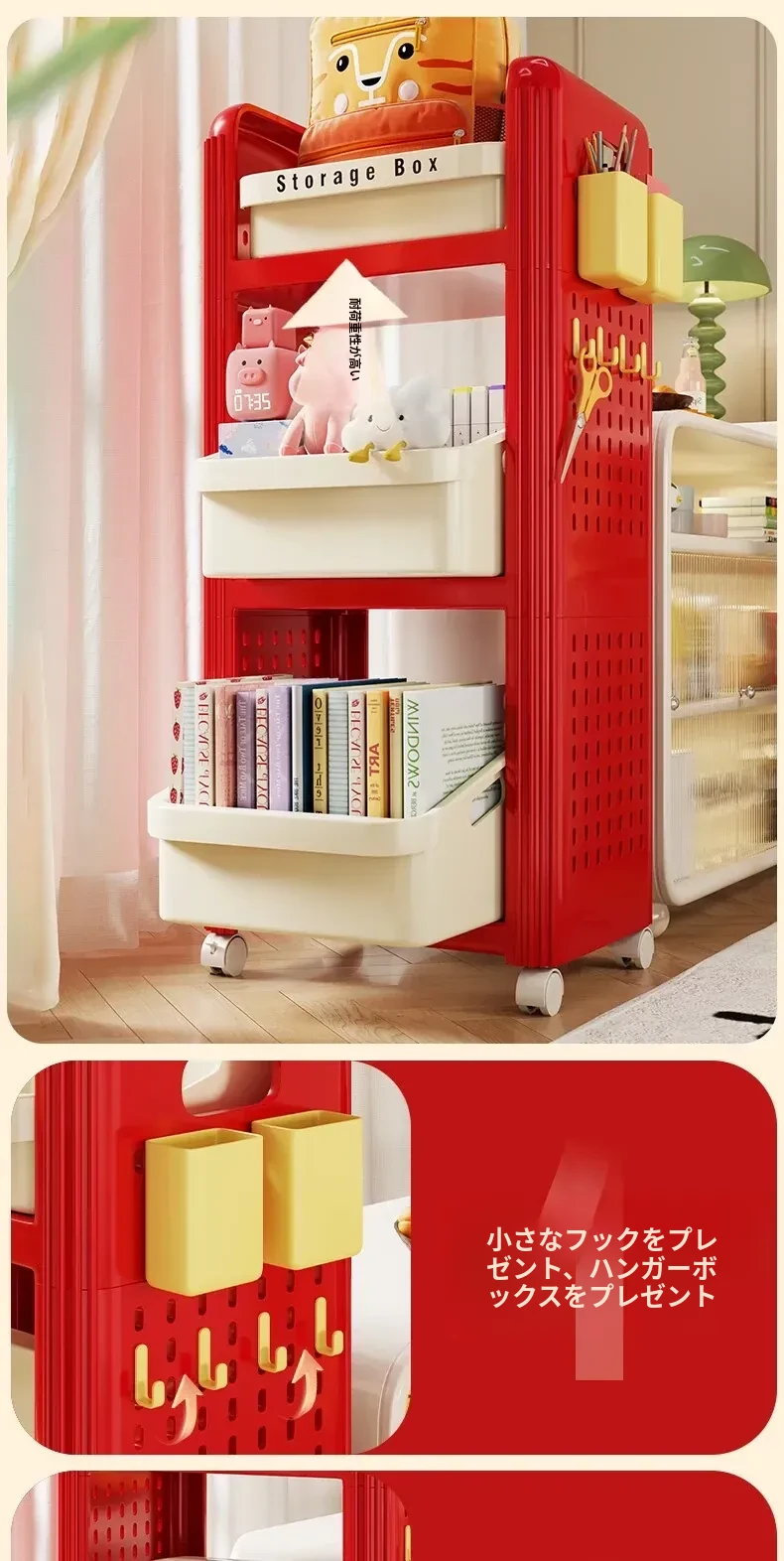 移動式キャスター付き多層収納ラック!家庭用・学生向けの書類整理に最適な書斎の必需品!書籍や文房具をスマートに整理整頓。デスク下にぴったりフィット!