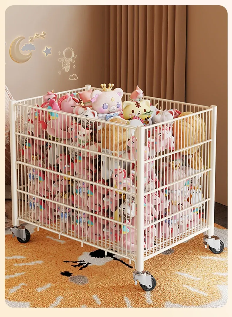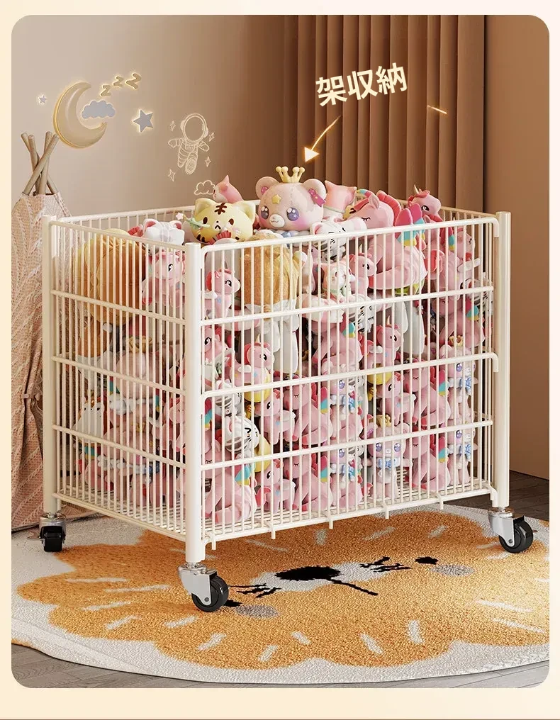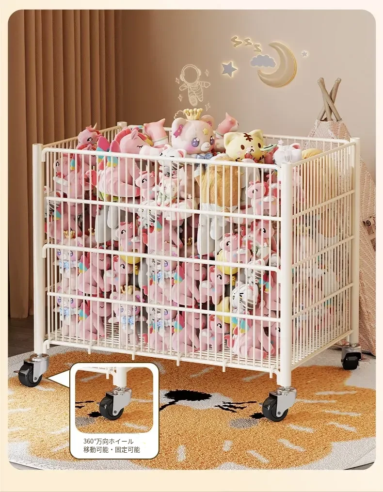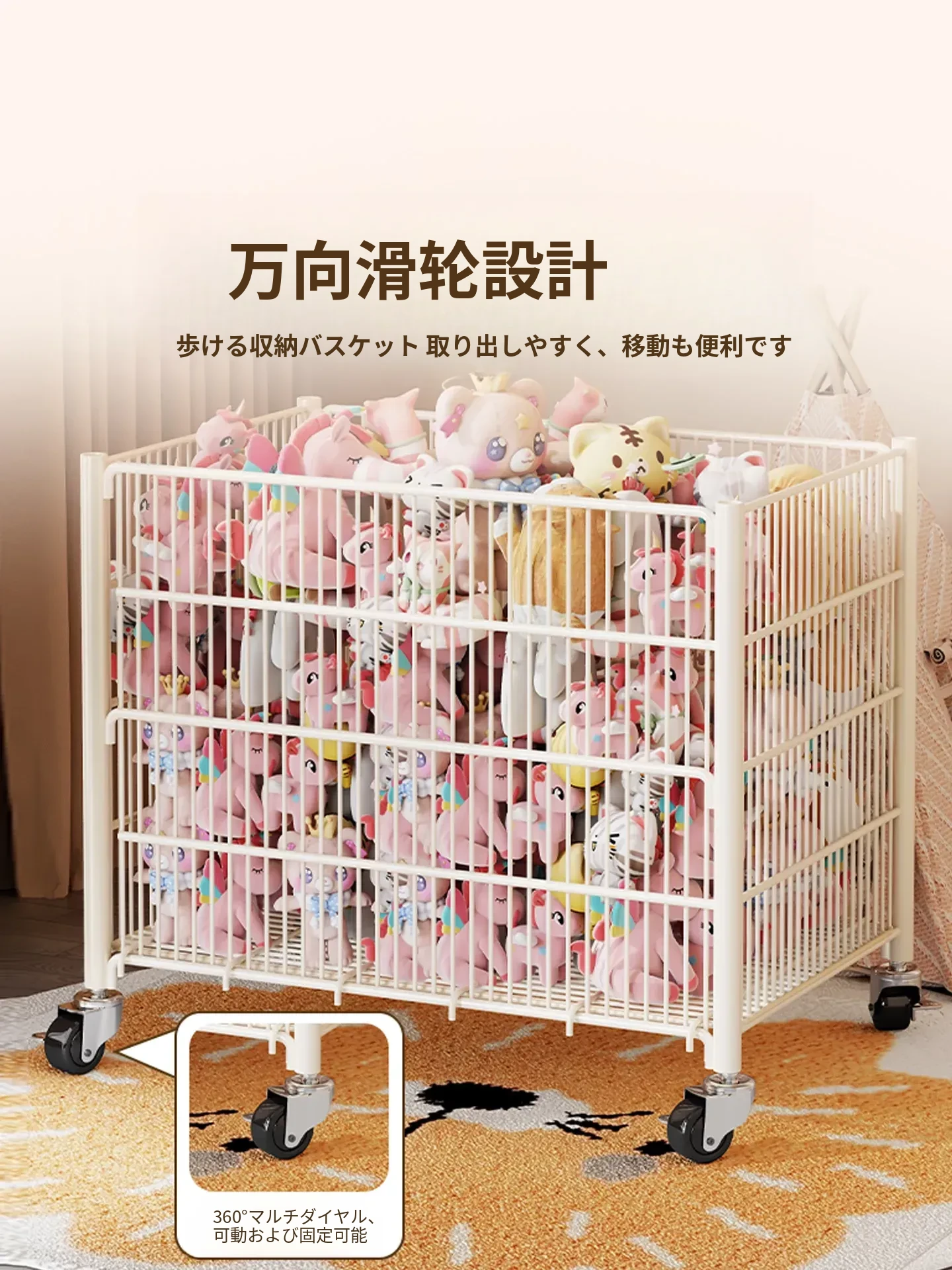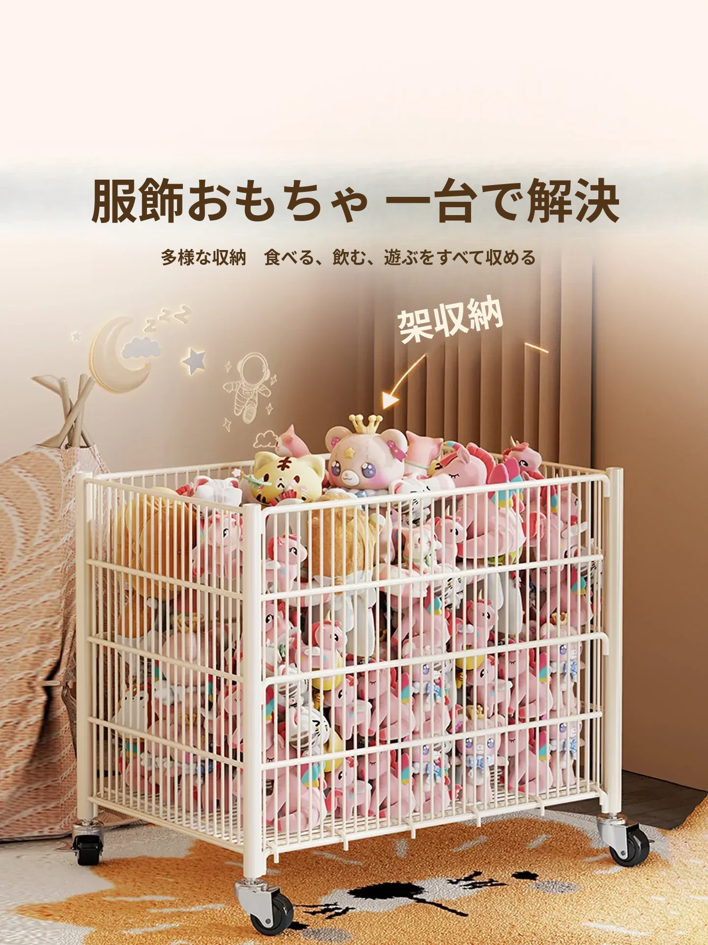 おしゃれな多機能おもちゃ収納ラック|リビングにぴったりな大容量移動式整理棚|ぬいぐるみやフィギュアもすっきり収納!