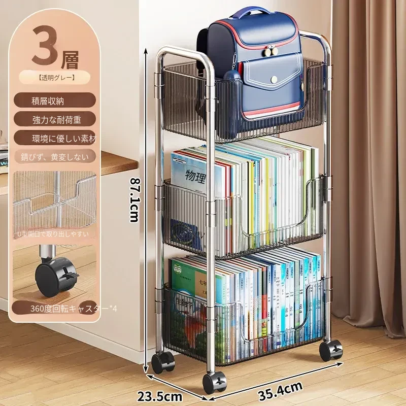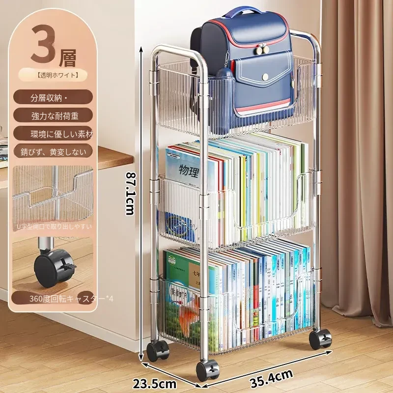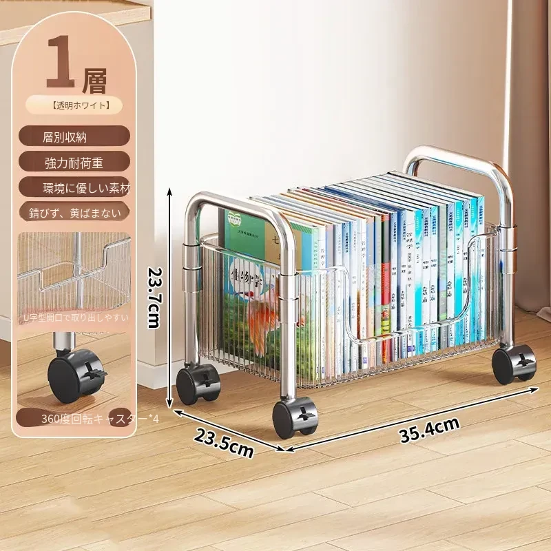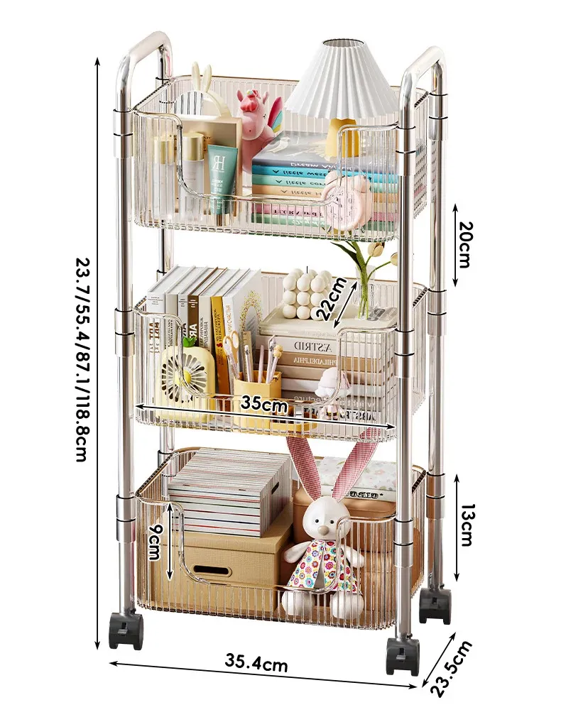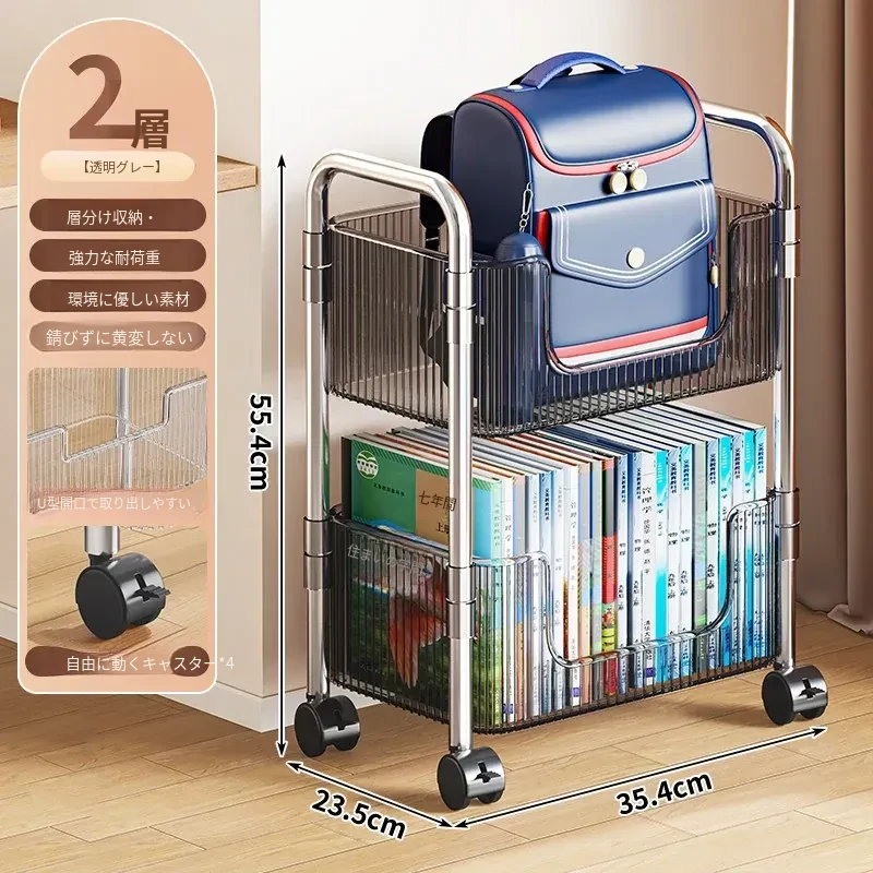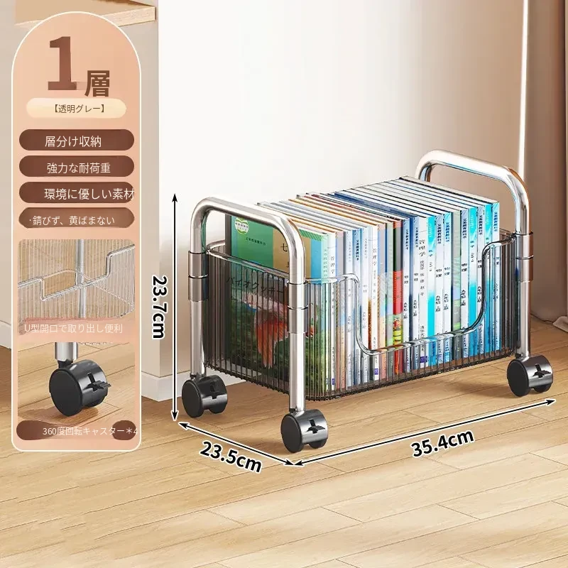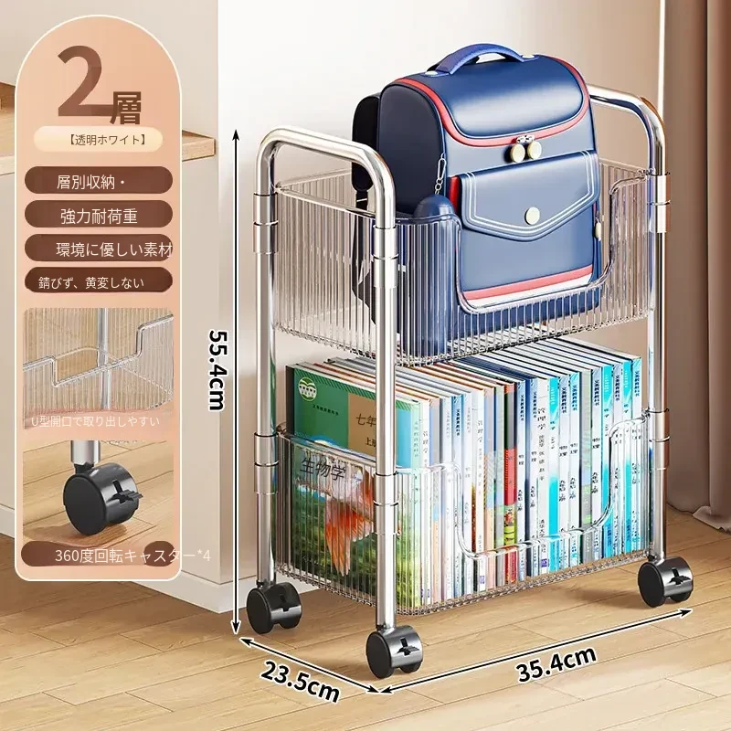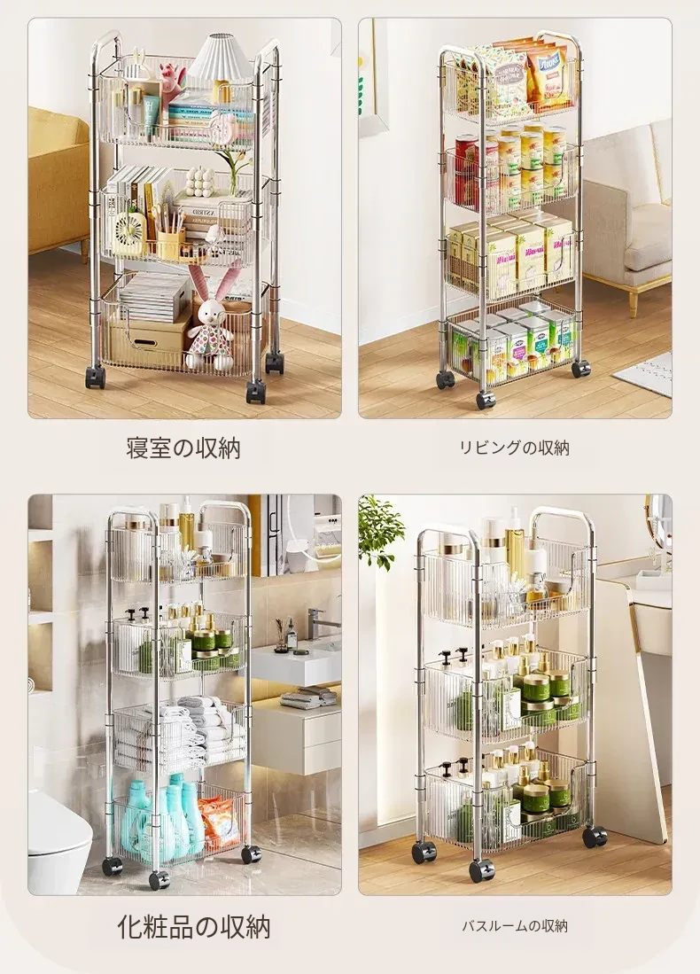 多機能アクリル製移動式収納ラック - 家庭用スナックや本の整理に最適なスタイリッシュな多層キャリーカート!使いやすさ抜群で、お部屋のインテリアにもぴったり!