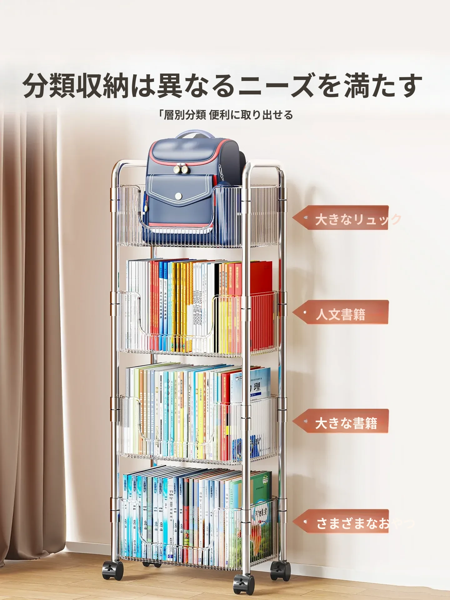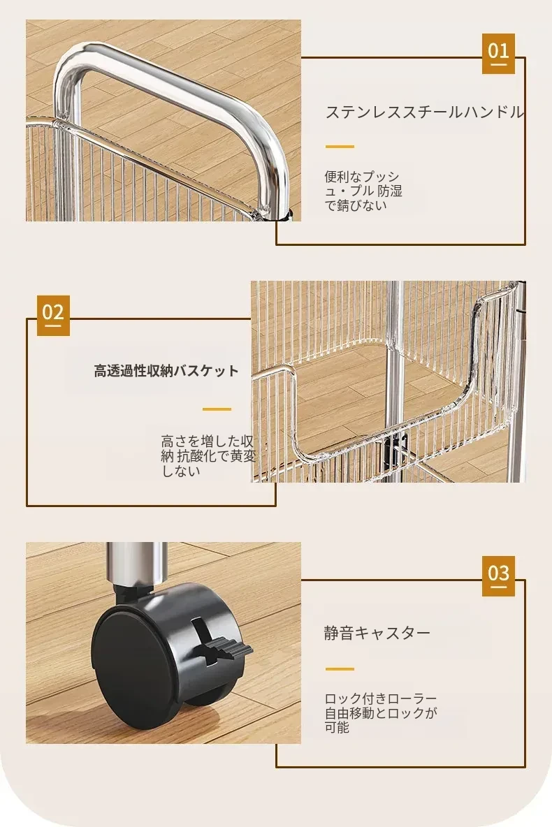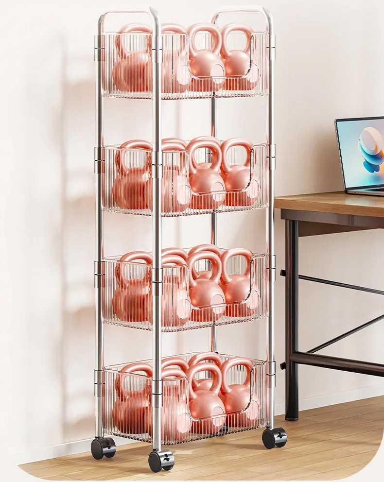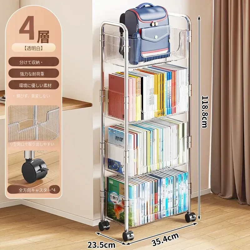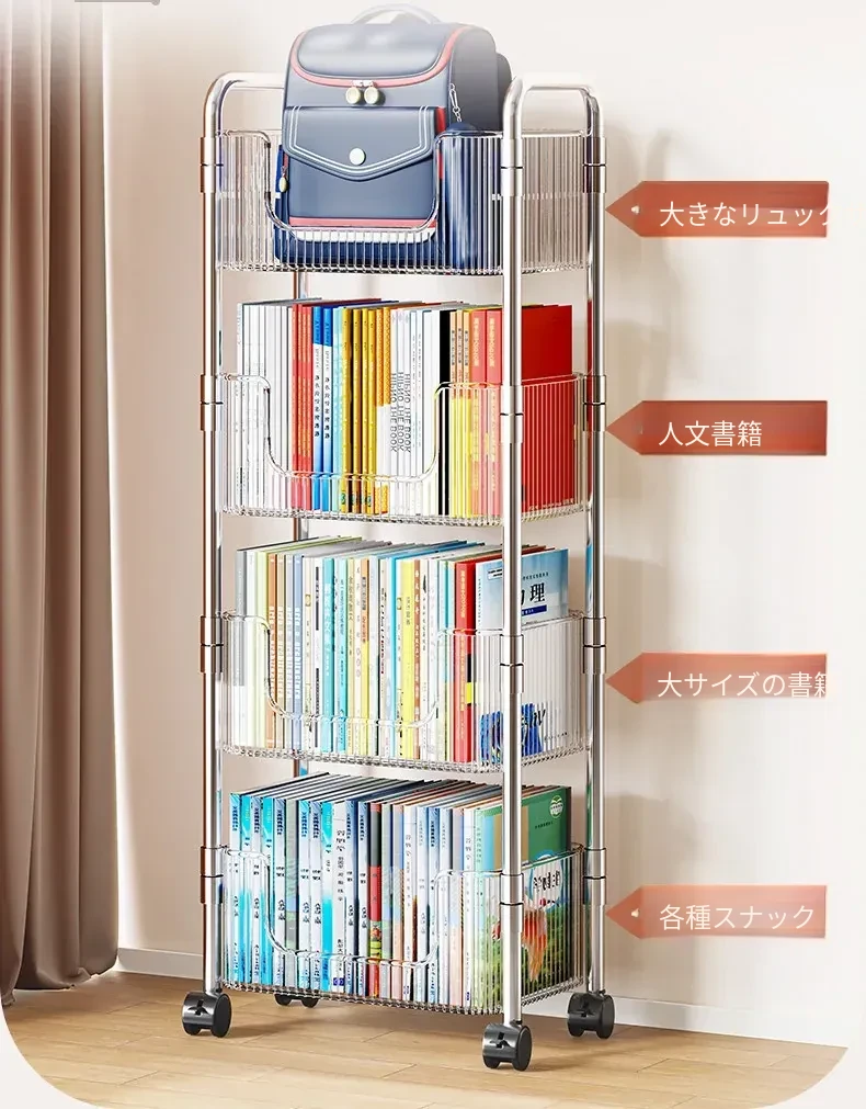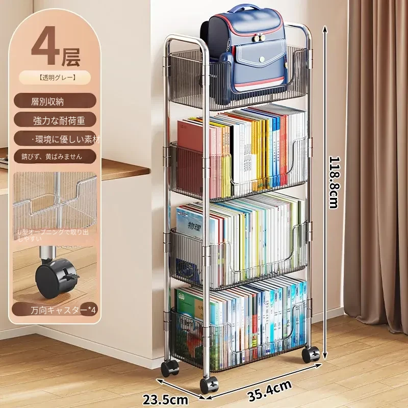 多機能アクリル製移動式収納ラック - 家庭用スナックや本の整理に最適なスタイリッシュな多層キャリーカート!使いやすさ抜群で、お部屋のインテリアにもぴったり!