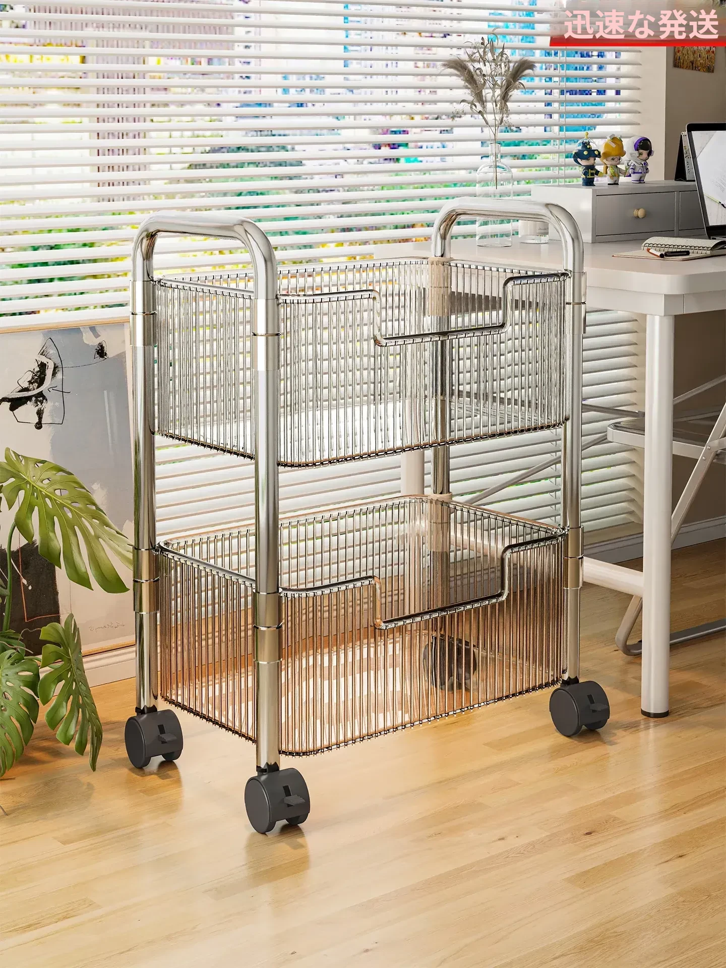 加厚二層•大号透灰【滑輪*4】❤デスク下おすすめ