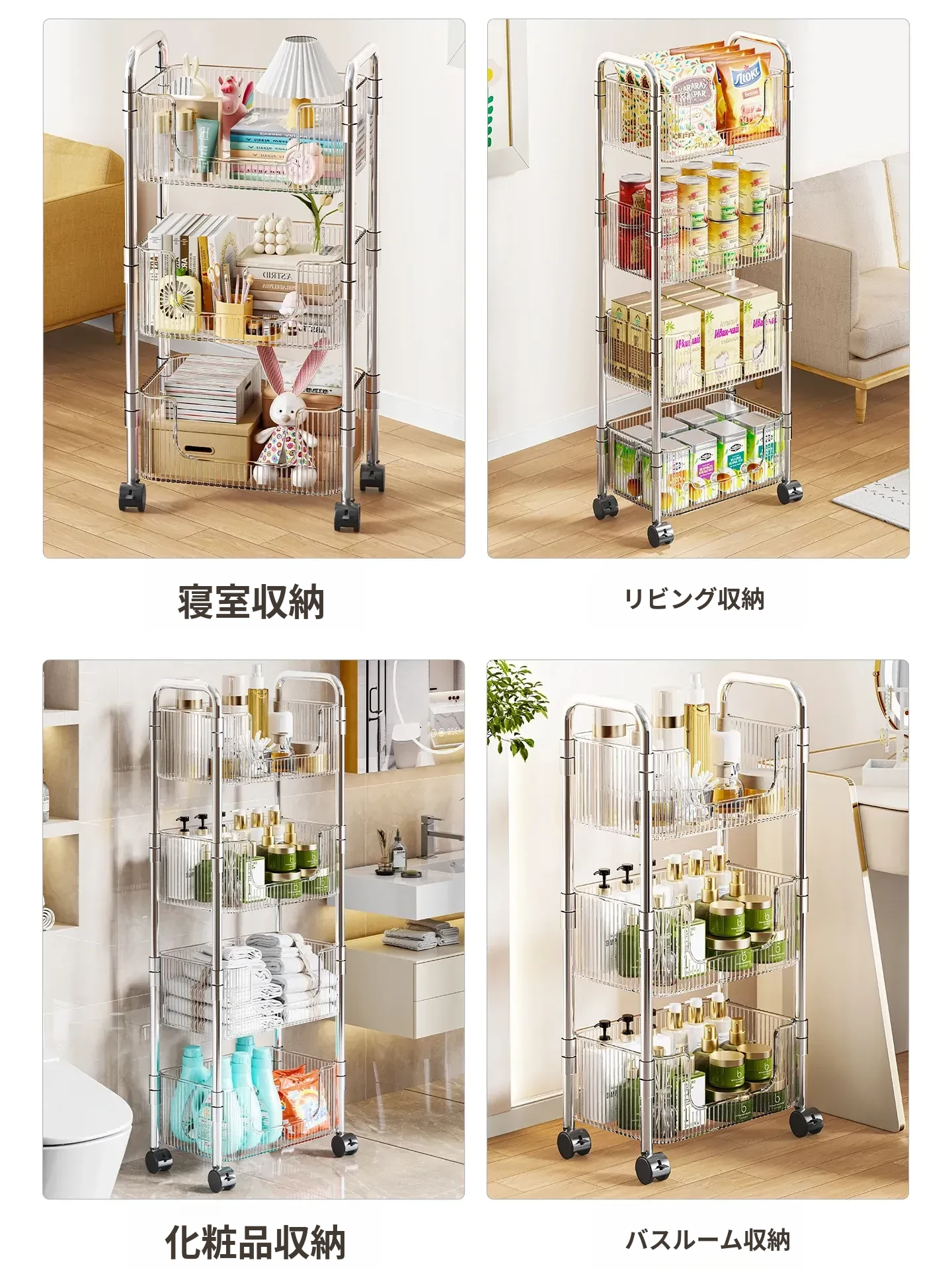 加厚四層•大号透灰【滑輪*4】❤収納万能