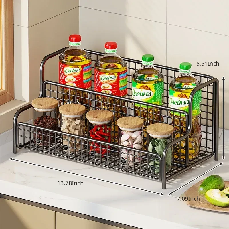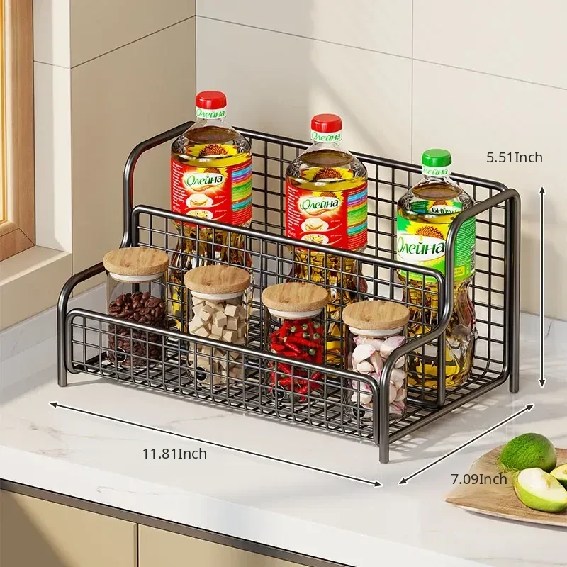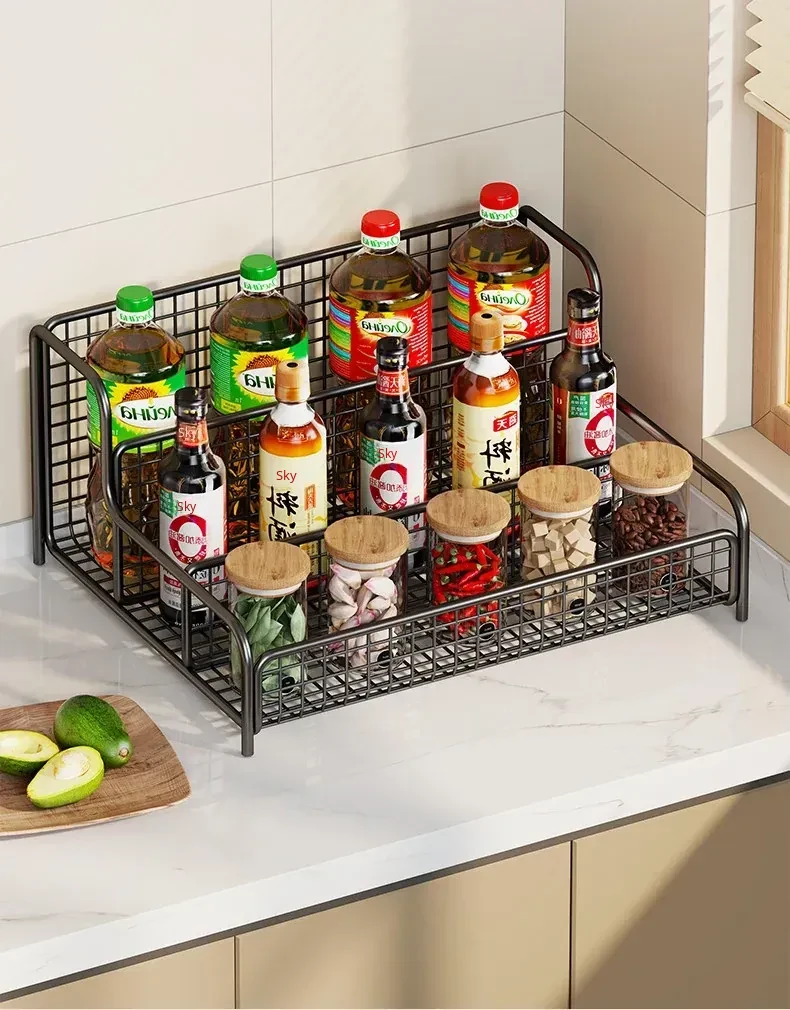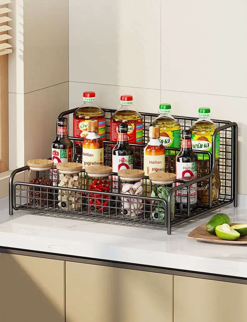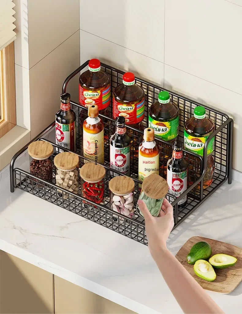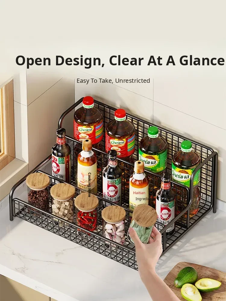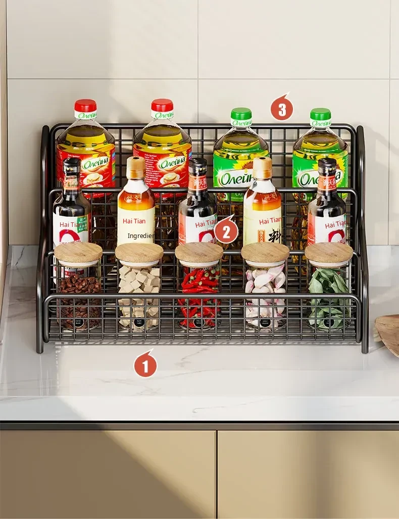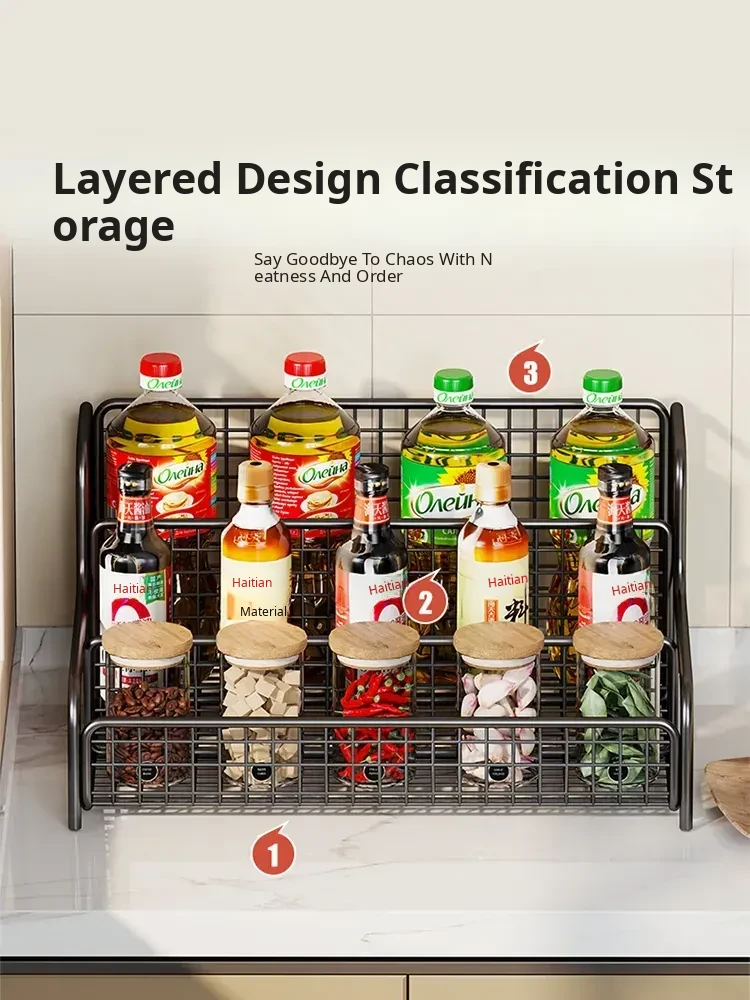 Multi-Layer Kitchen Storage Rack for Spices and Condiments - Versatile Organizer for Soy Sauce, Vinegar, Salt, and More - Perfect for Maximizing Countertop Space!