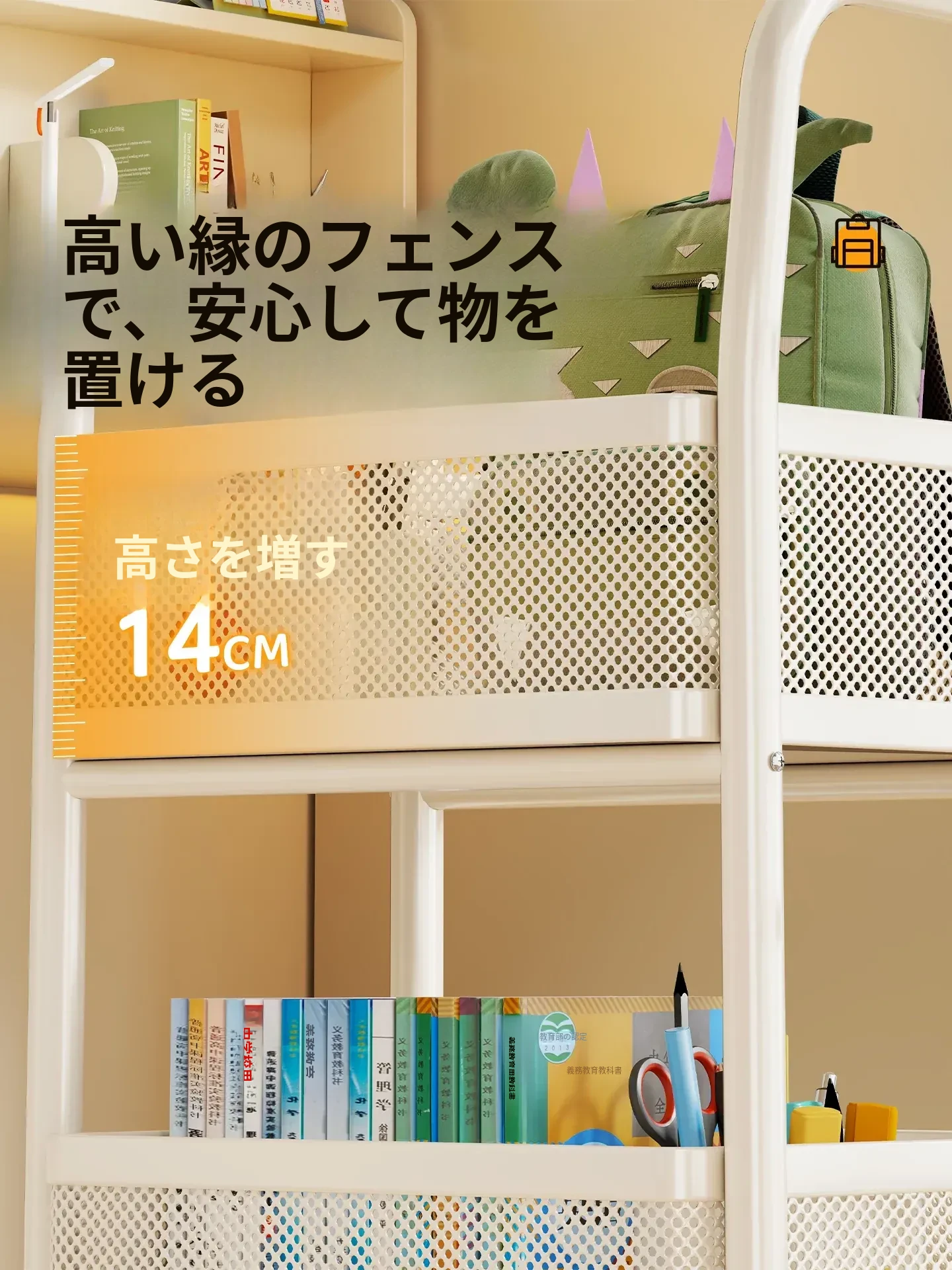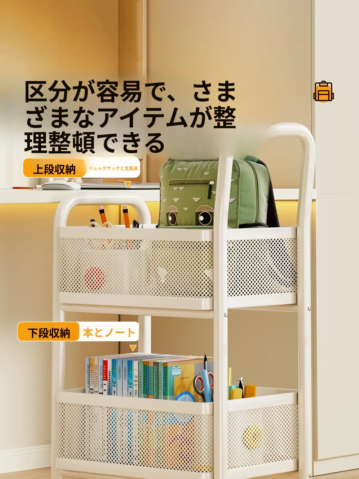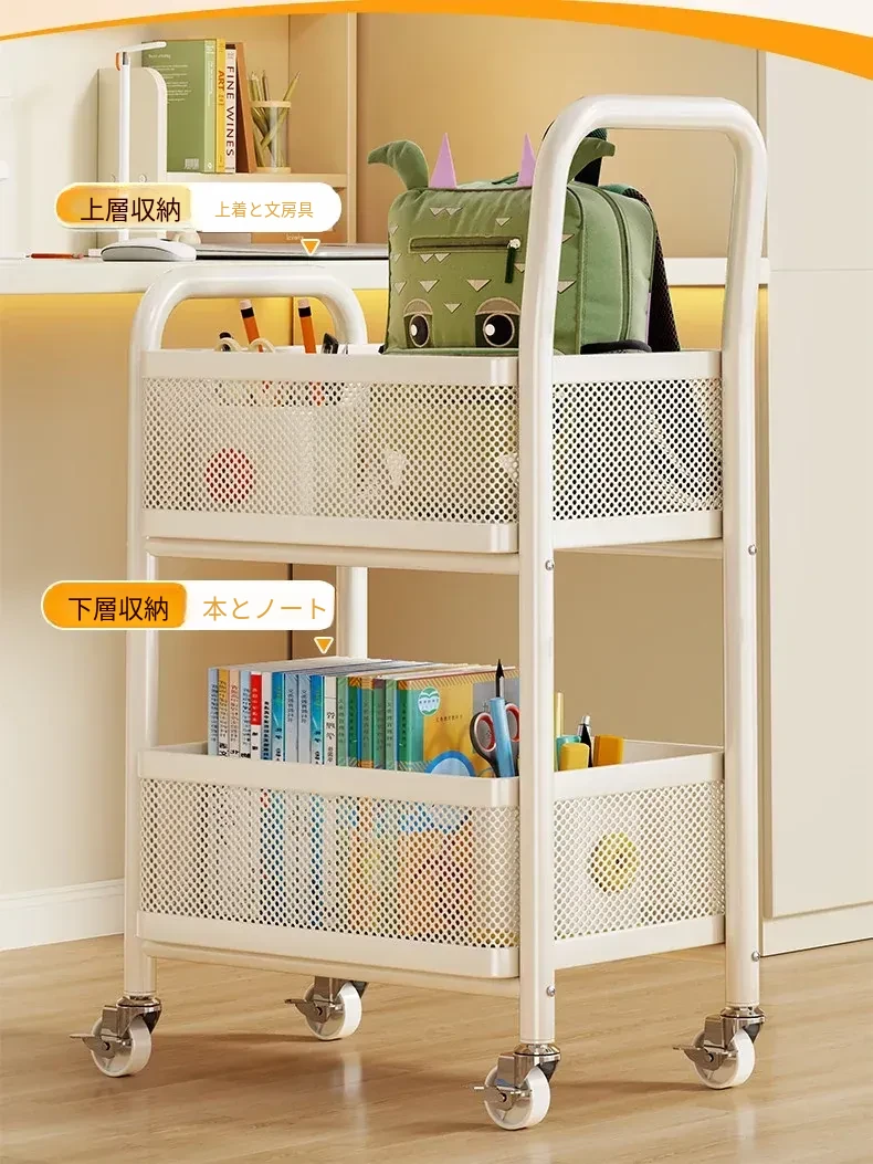 学生のための多機能収納ラック!教科書や文具をスッキリ整理できる、家でも使える移動式のブックシェルフ。デスクの下にも収まるコンパクト設計で、毎日の学びをサポートします!