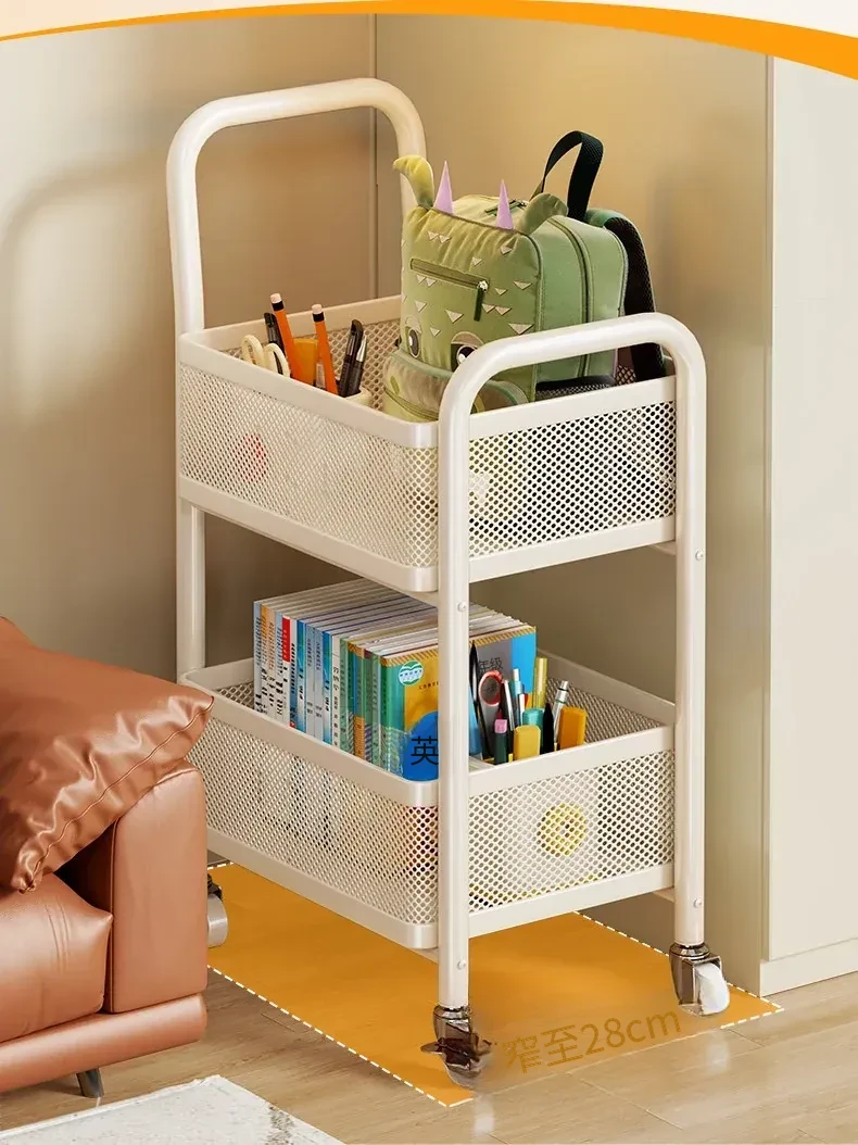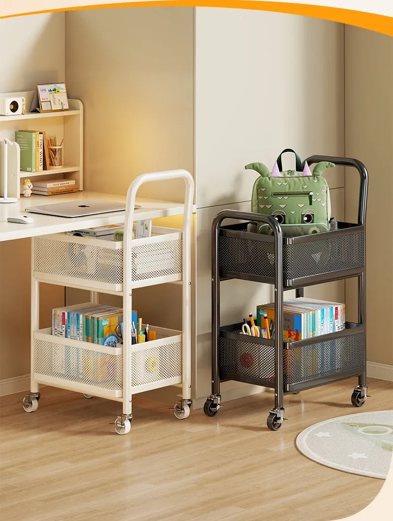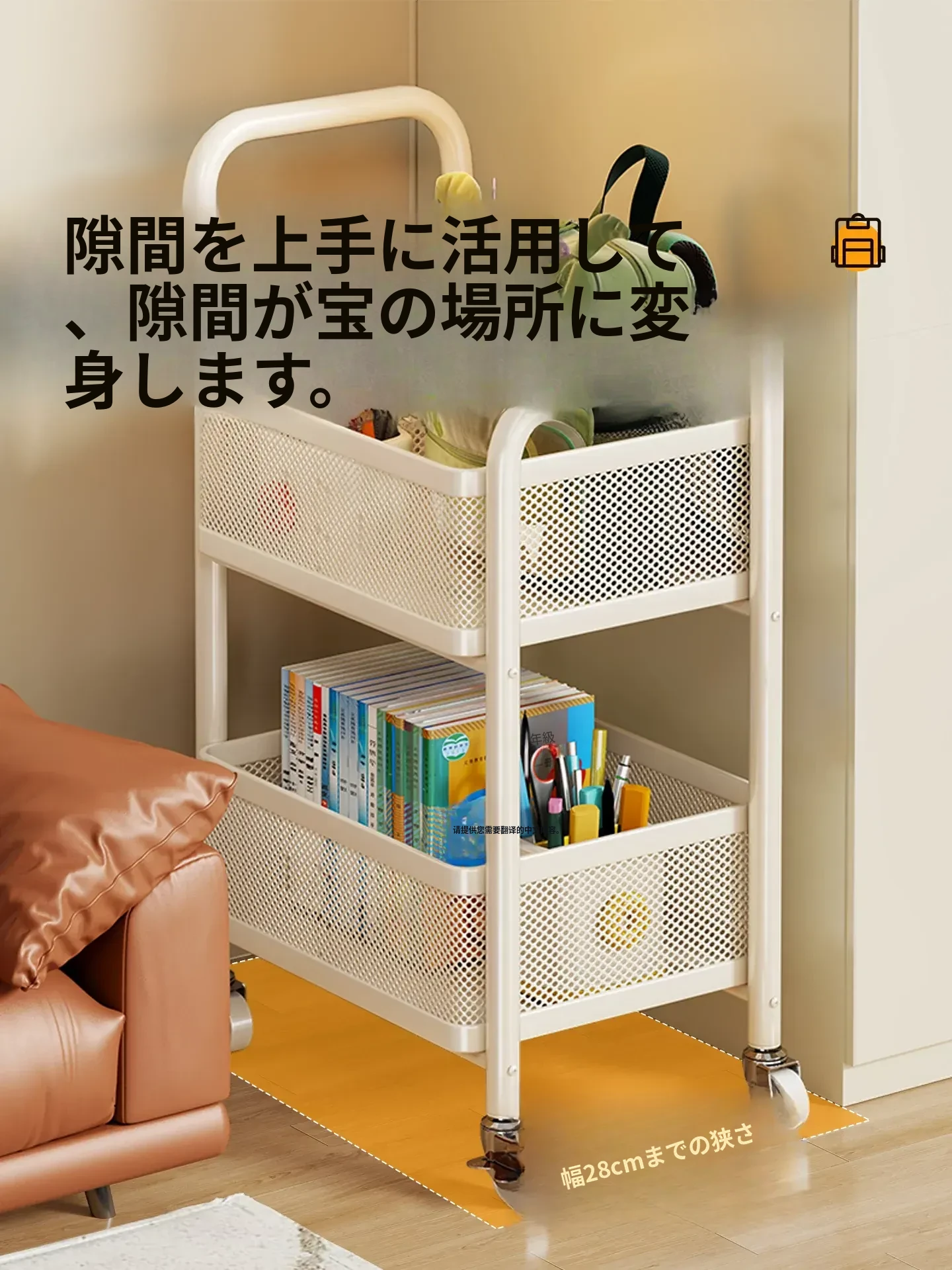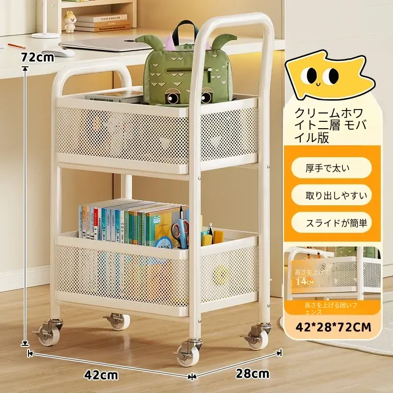 学生のための多機能収納ラック!教科書や文具をスッキリ整理できる、家でも使える移動式のブックシェルフ。デスクの下にも収まるコンパクト設計で、毎日の学びをサポートします!