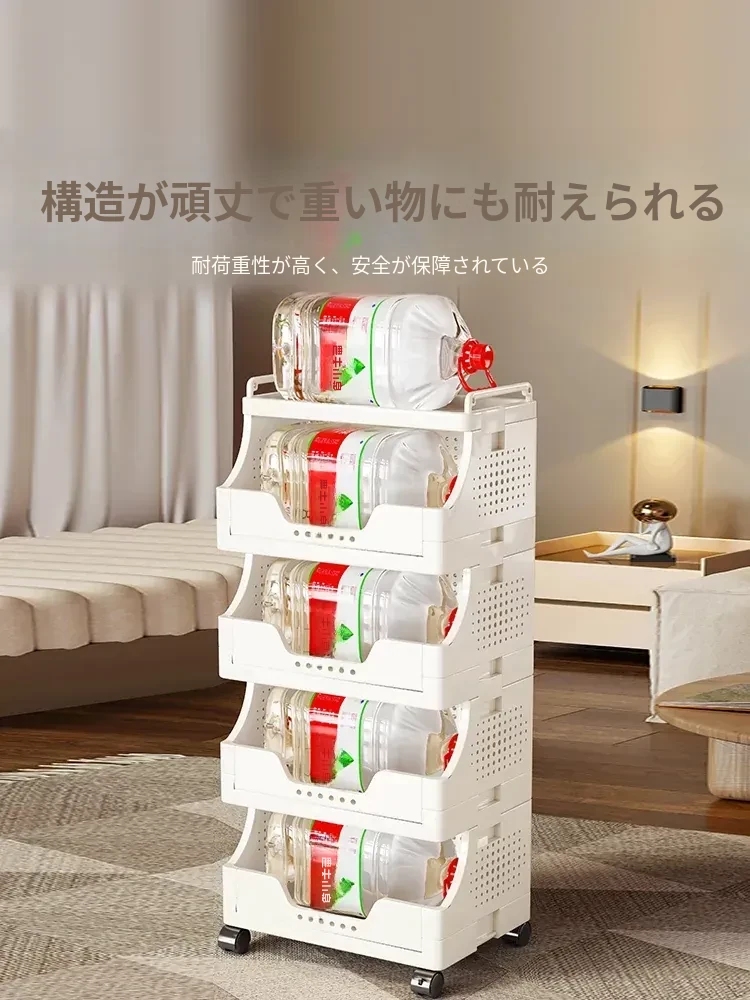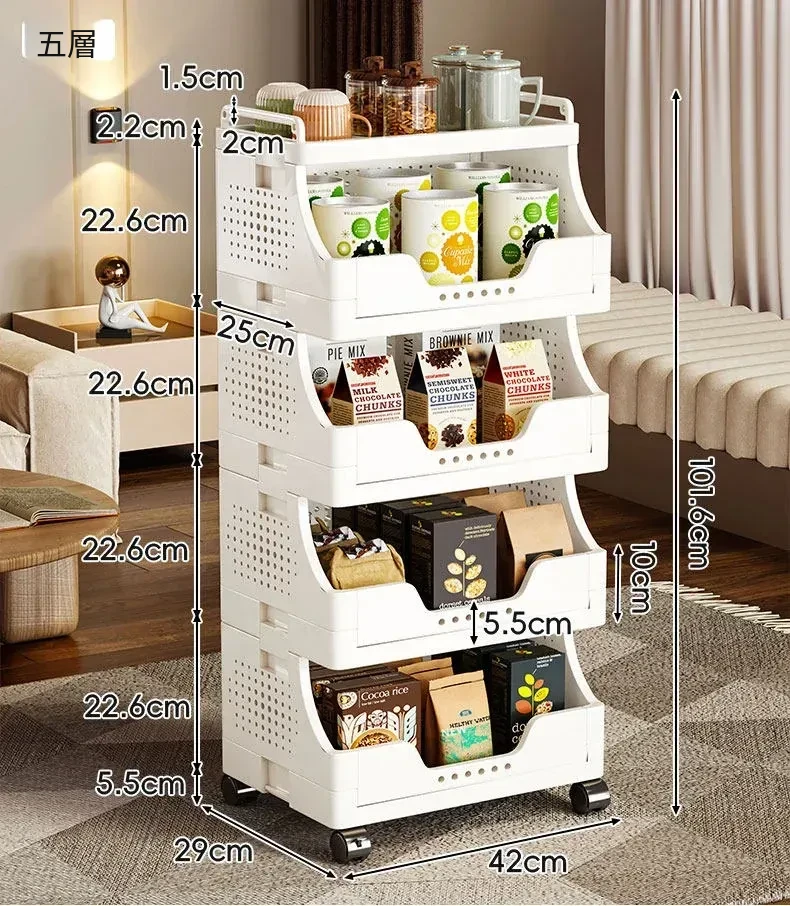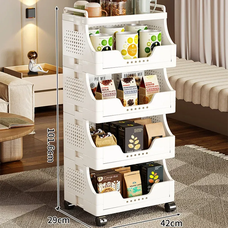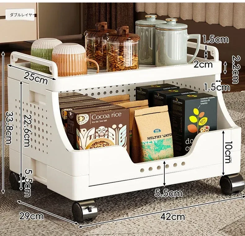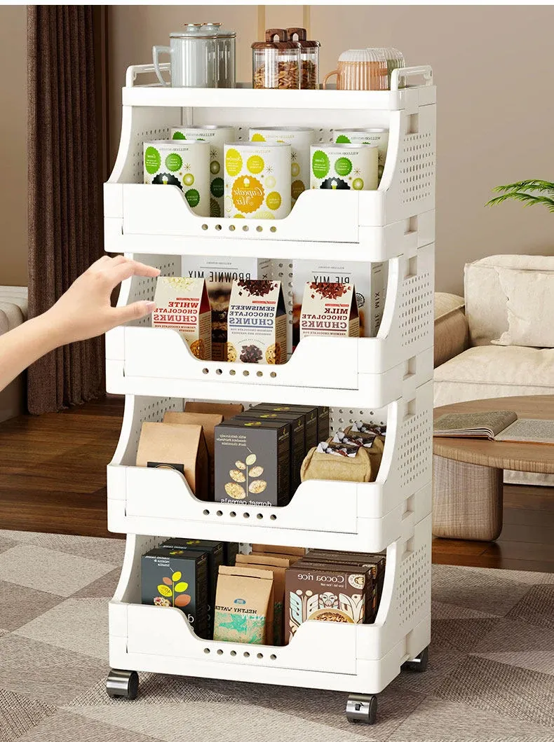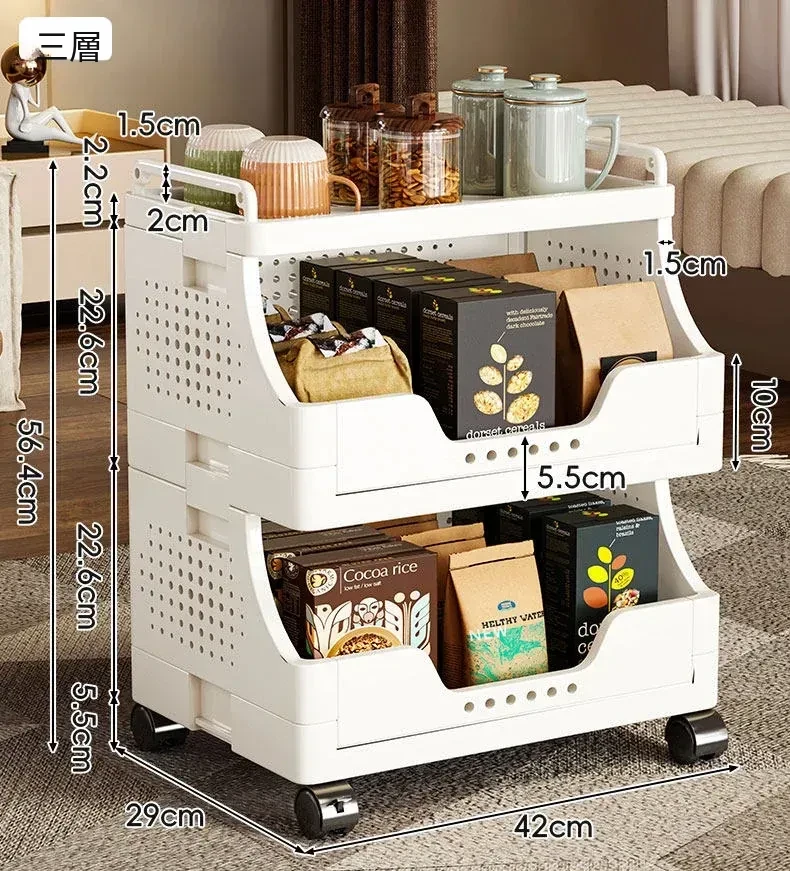 キャスター付き多段式リビングスナック収納ラック - 移動可能な収納カートで、書籍や小物をスッキリ整理!おしゃれで便利なオープンシェルフで、リビングをもっと快適に!