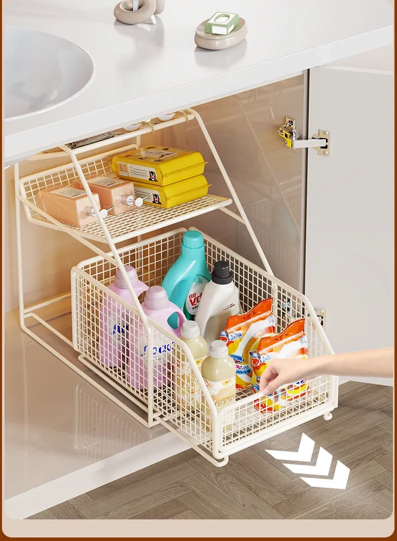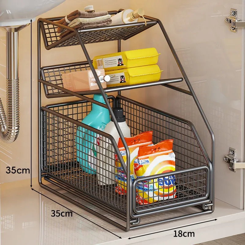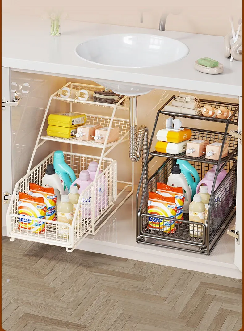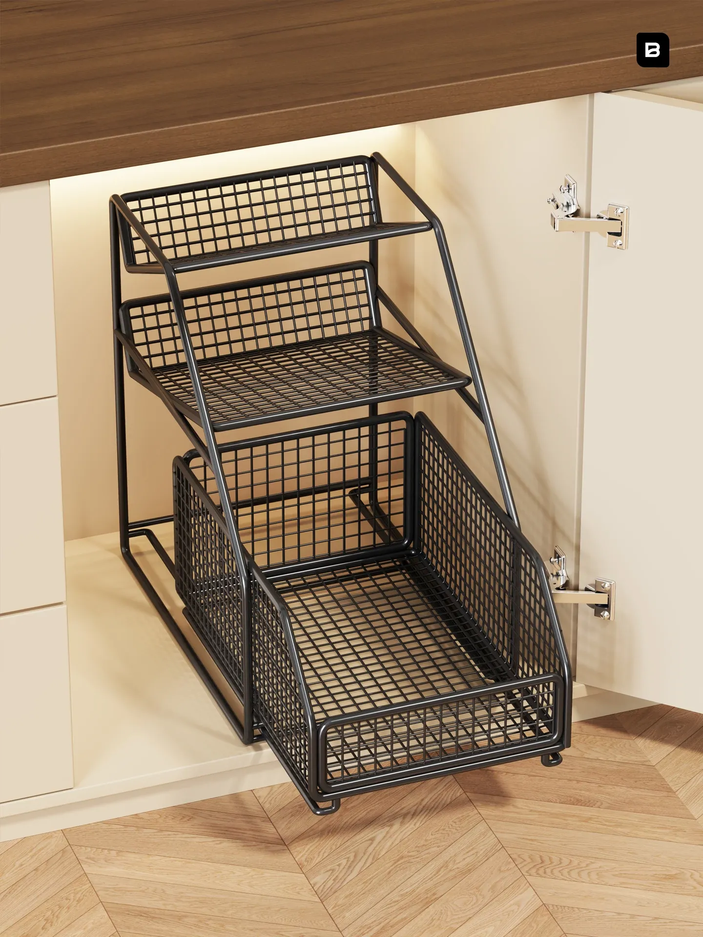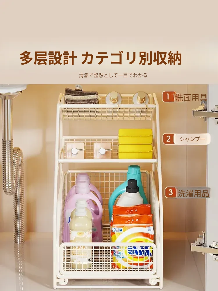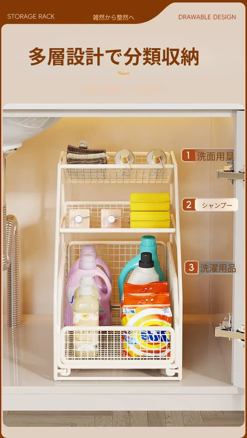 宿舎に最適!多層式収納キャビネット - スナックや主機を整理整頓!引き出し式で使いやすく、深いキャビネットにもぴったり。あなたの生活空間をスッキリと整えます!
