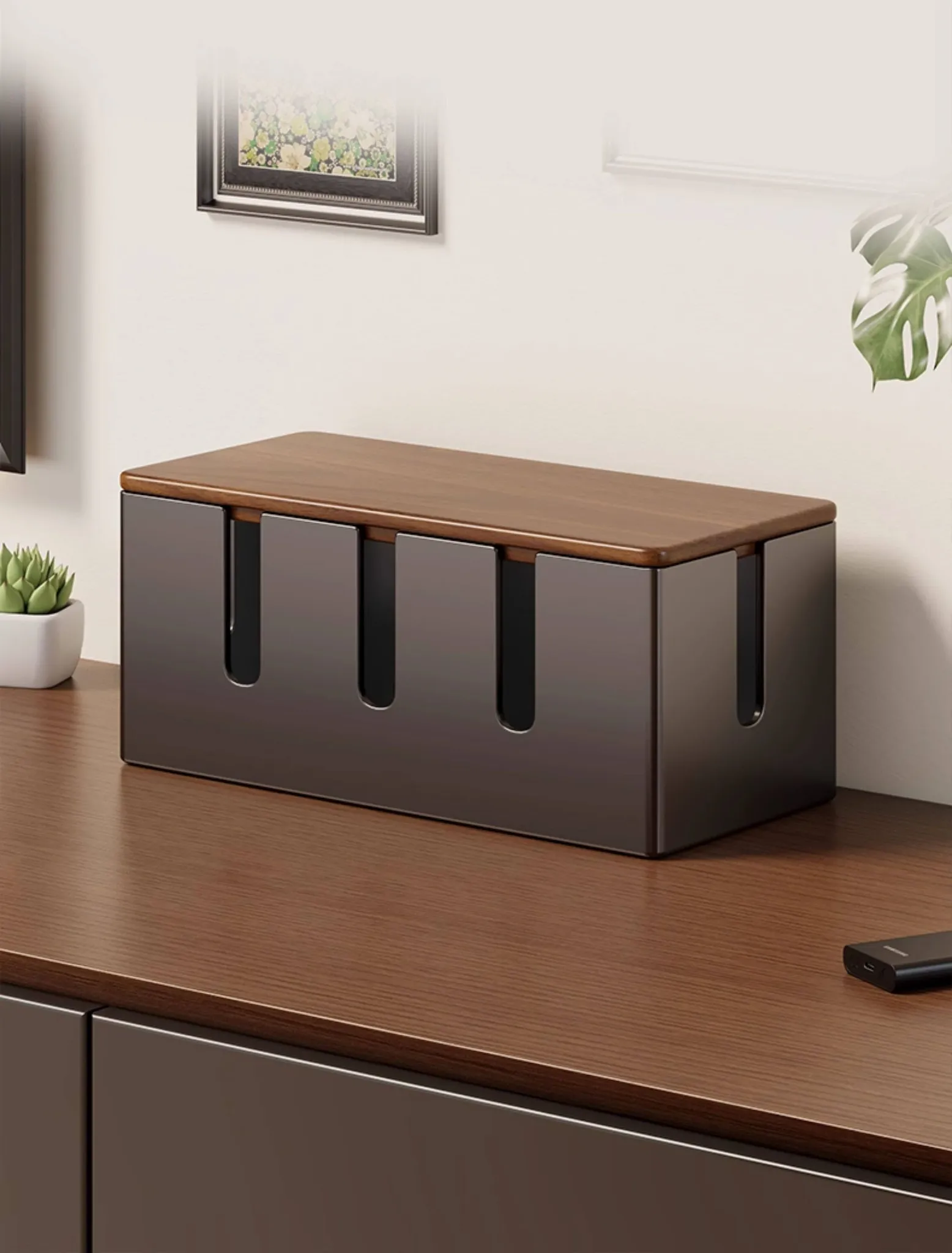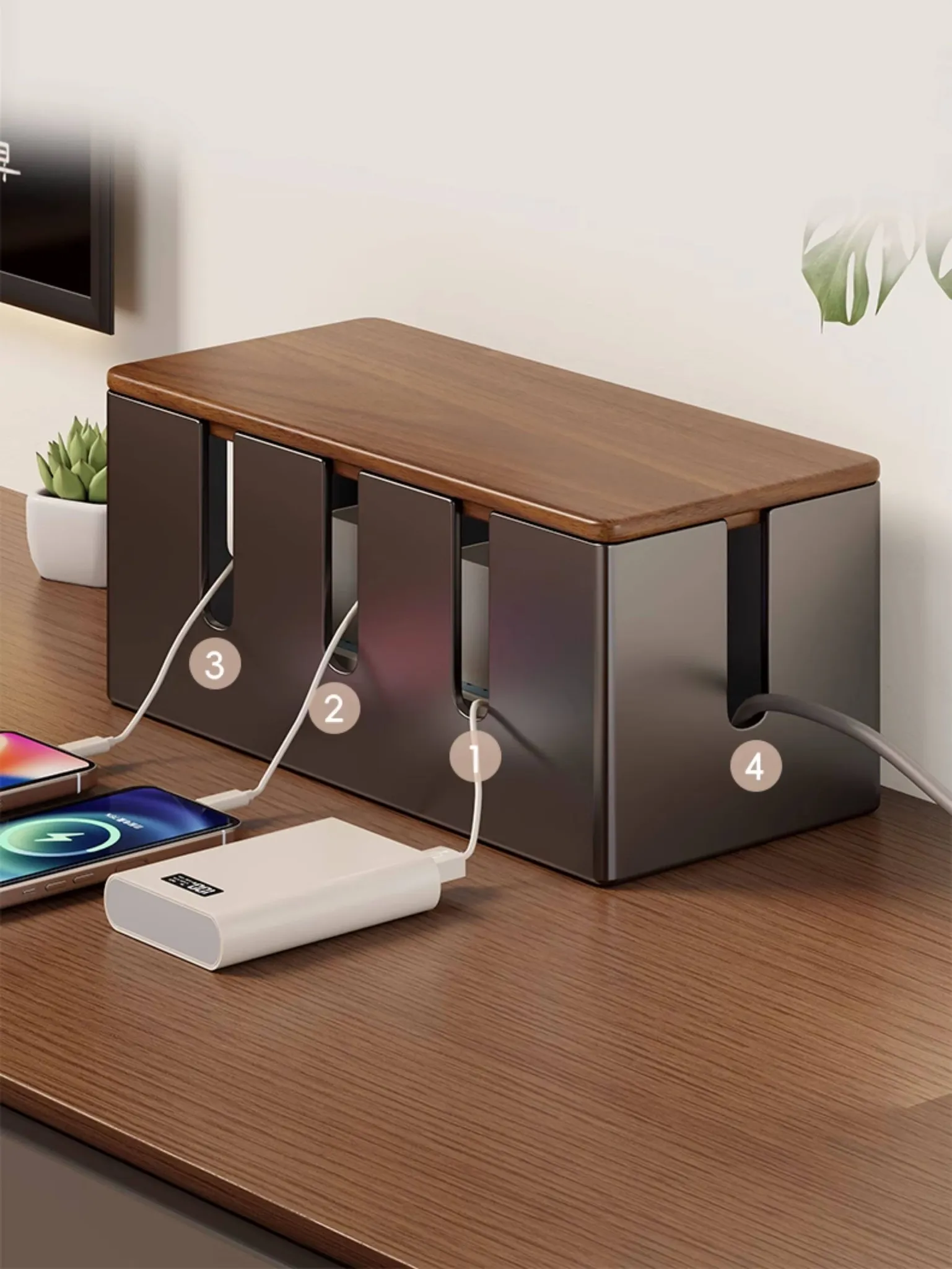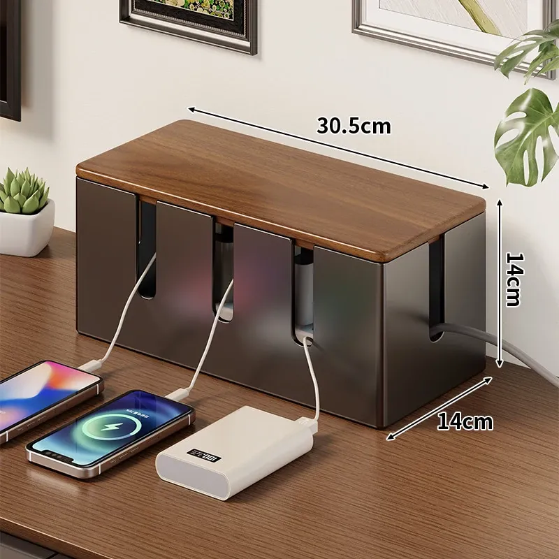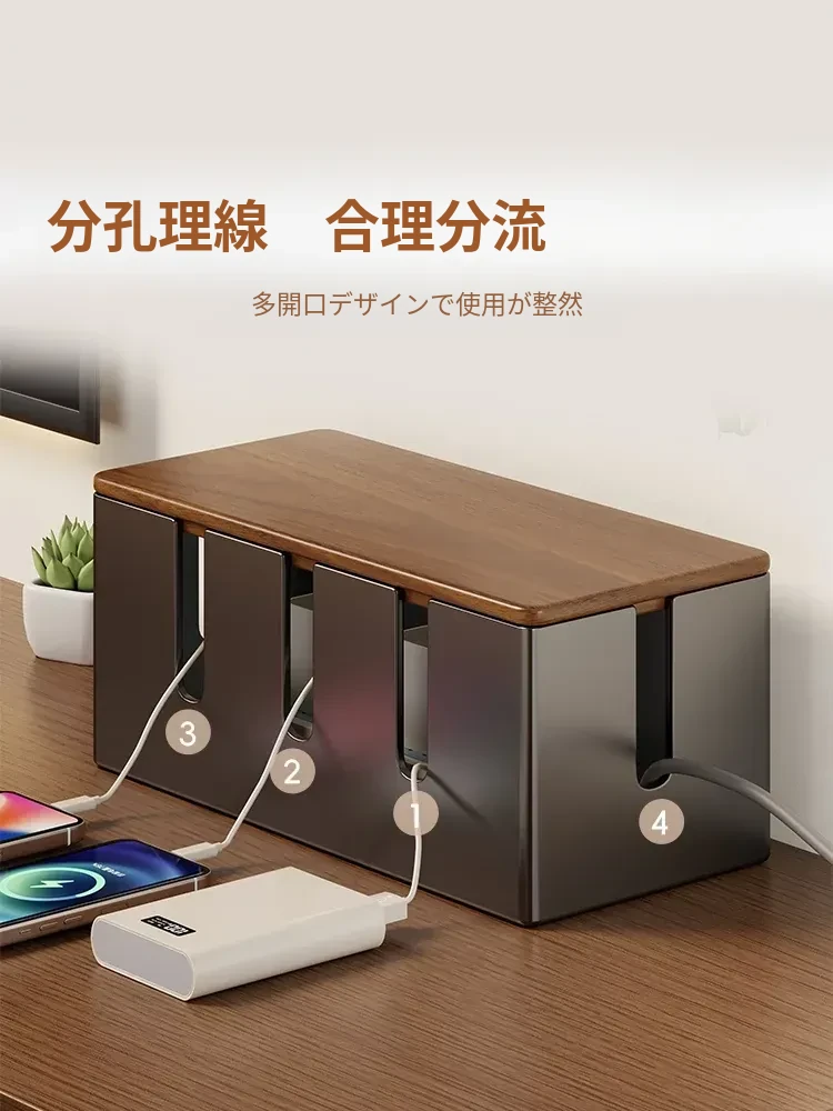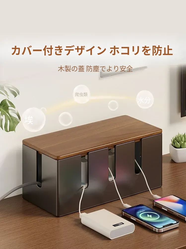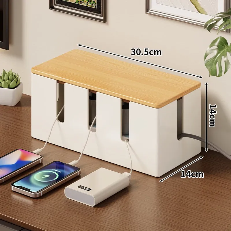 電源タップ収納ボックス - 散らかった充電ケーブルをスッキリ整理!多孔デザインでスマートな配線を実現。シンプルでスタイリッシュな収納アイテムで、あなたのスペースを美しく保ちます!