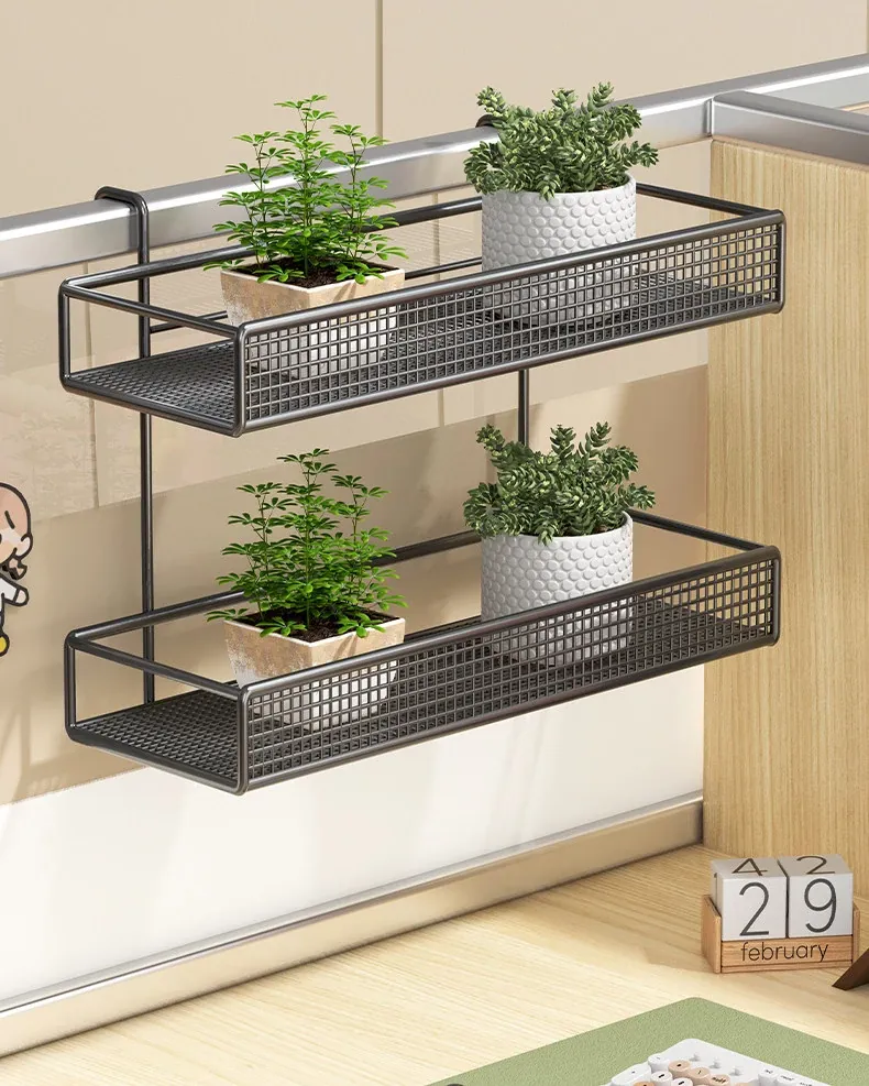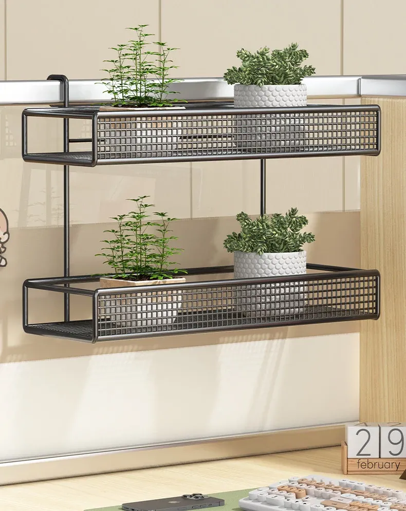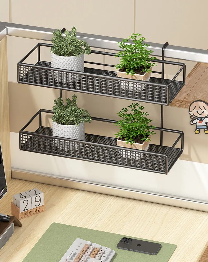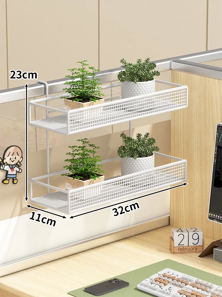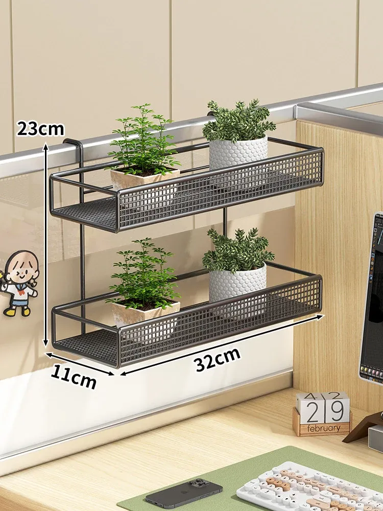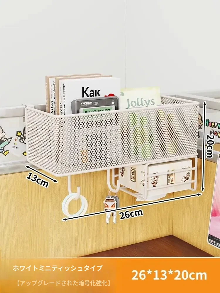 オフィスデスク用ハンギングバスケット!デスクトップスペースを有効活用するスクリーンパーティション付き収納ラック。おしゃれで便利なオフィス用品、整理整頓のお助けアイテムです!