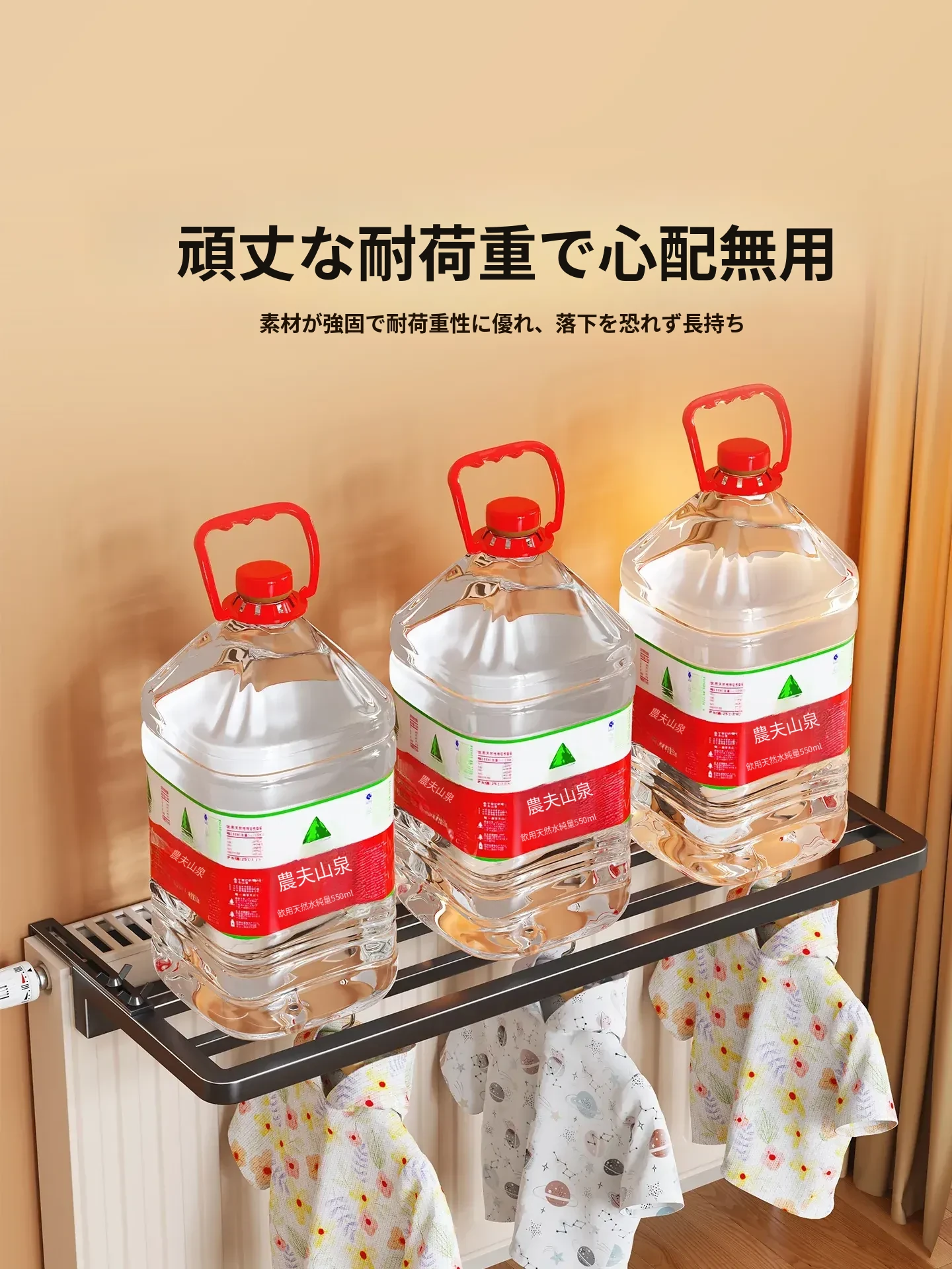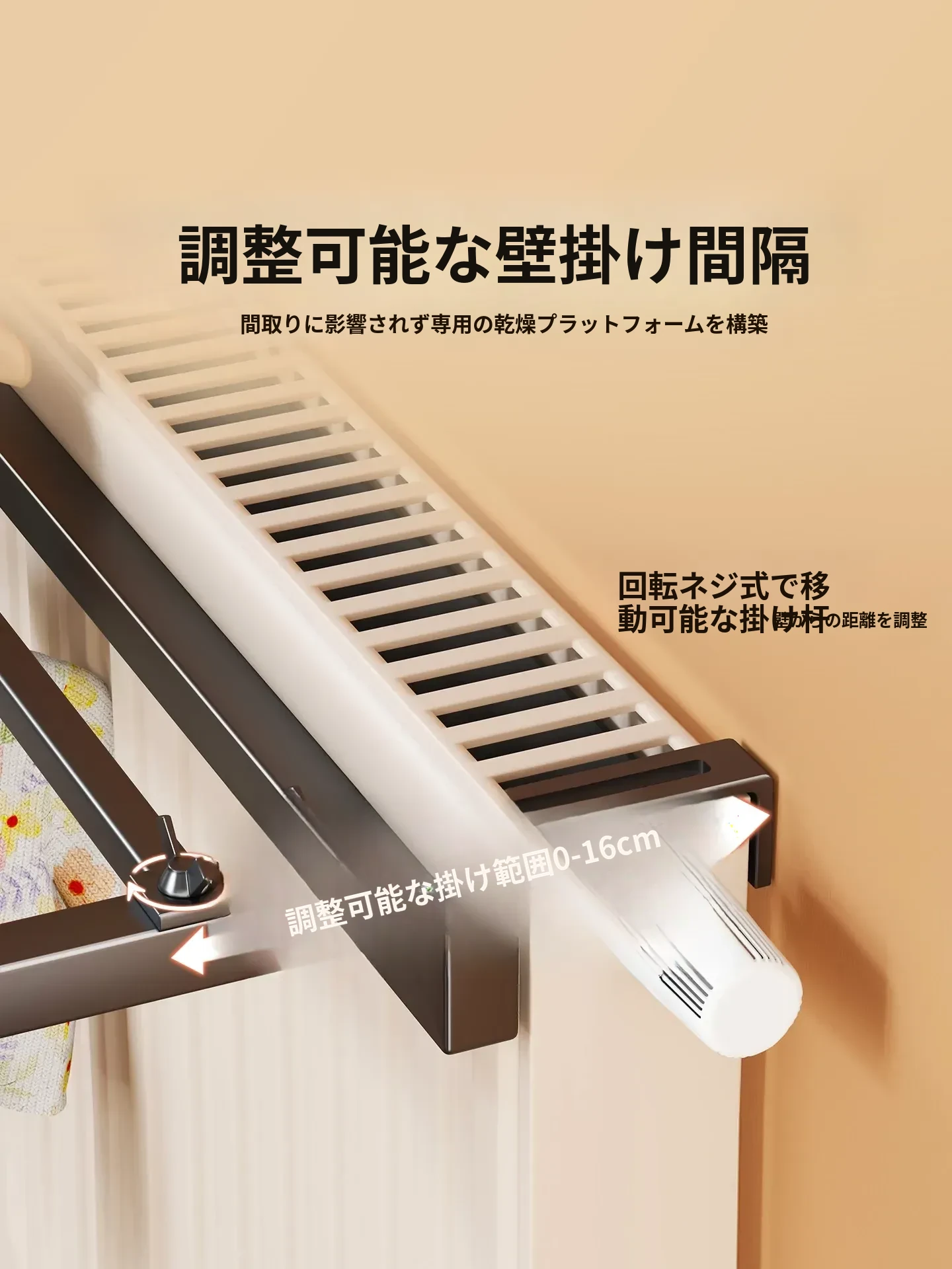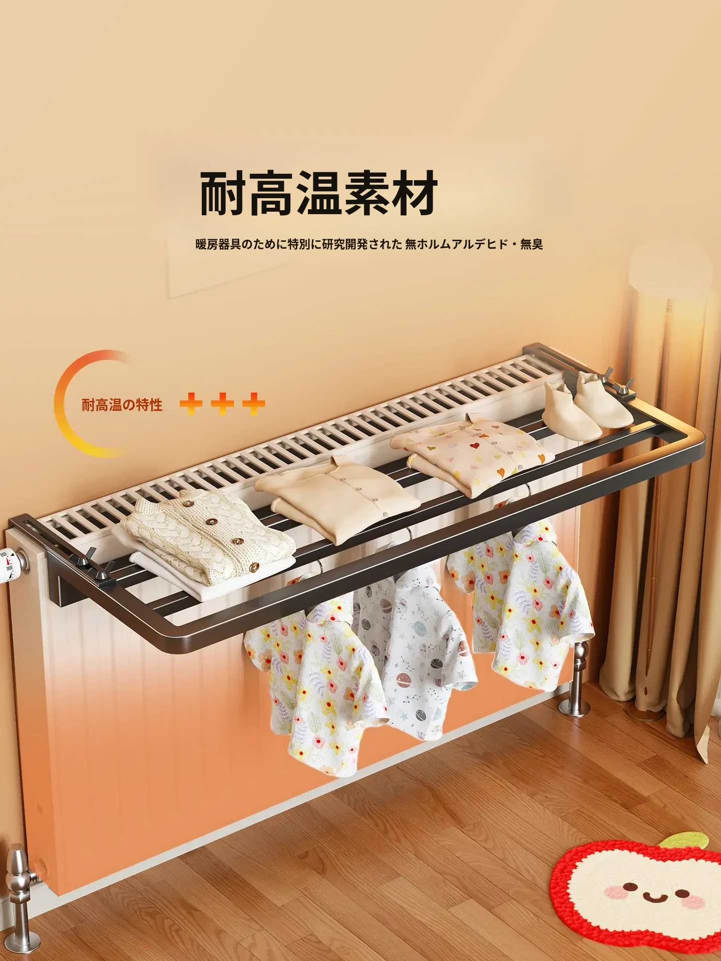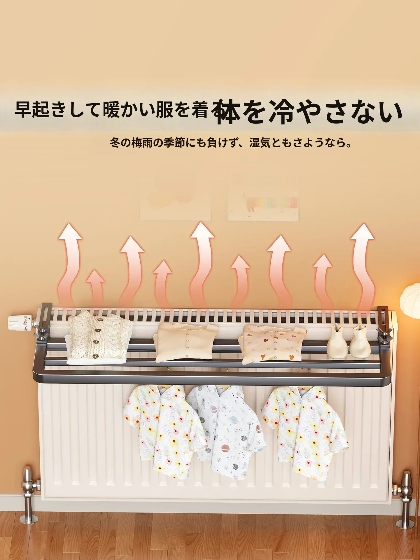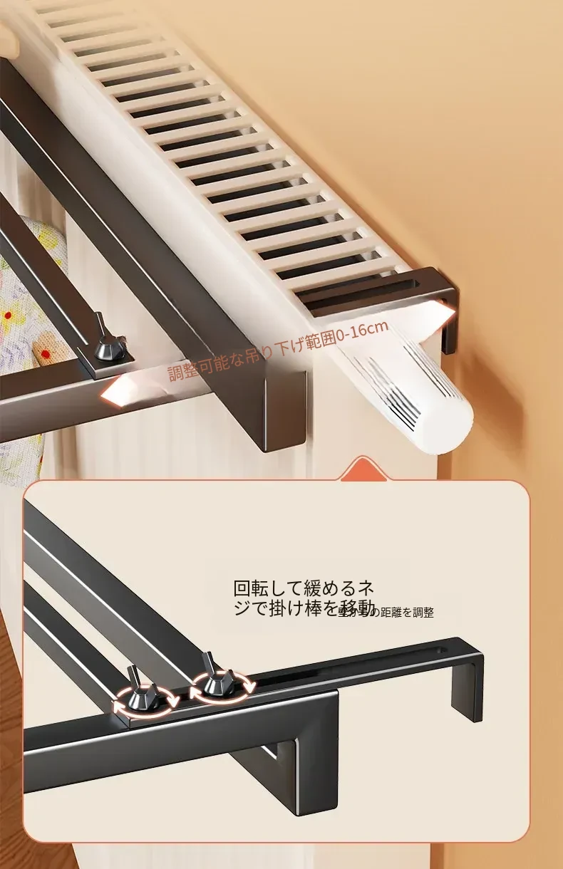 暖房用ハンガーフック・タオルラック・物干しスタンド—穴あけ不要で簡単取り付け、暖房器具に掛けるだけで、便利に衣類やタオルを乾かせる!おしゃれで実用的な収納アイテム!