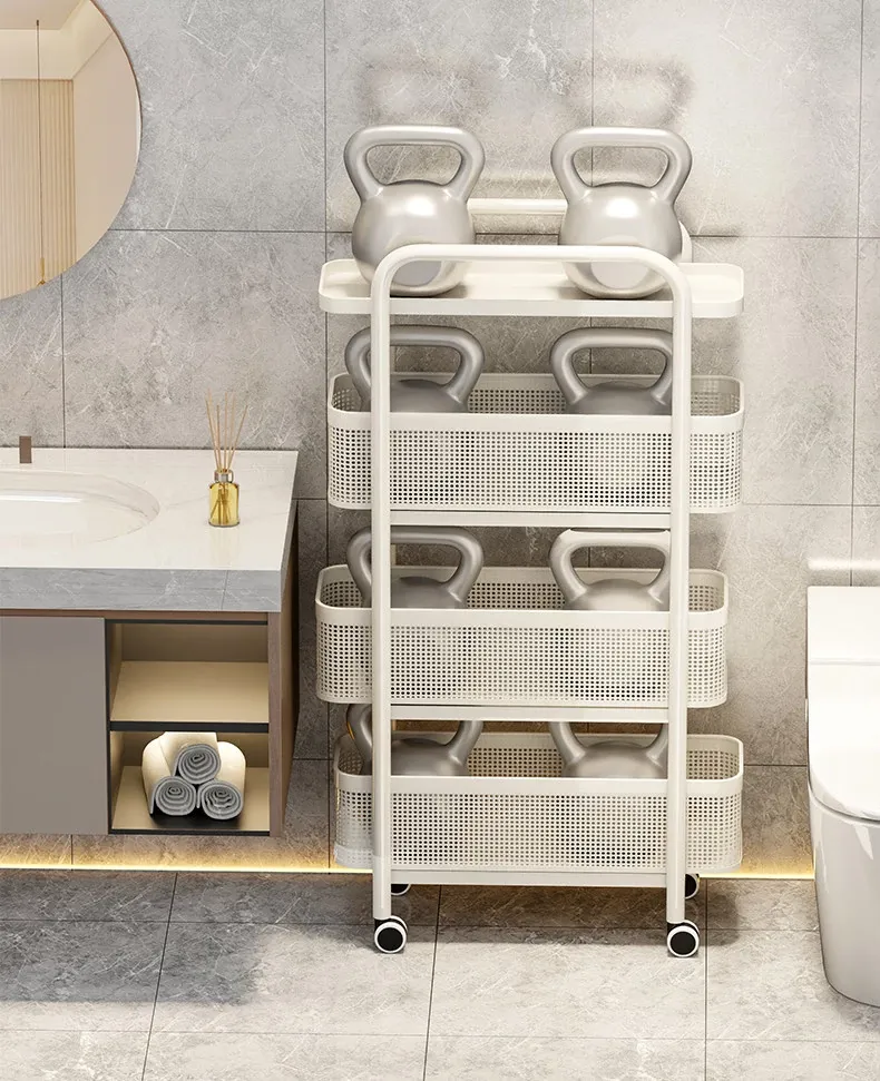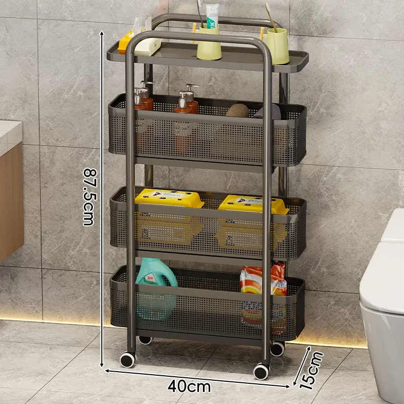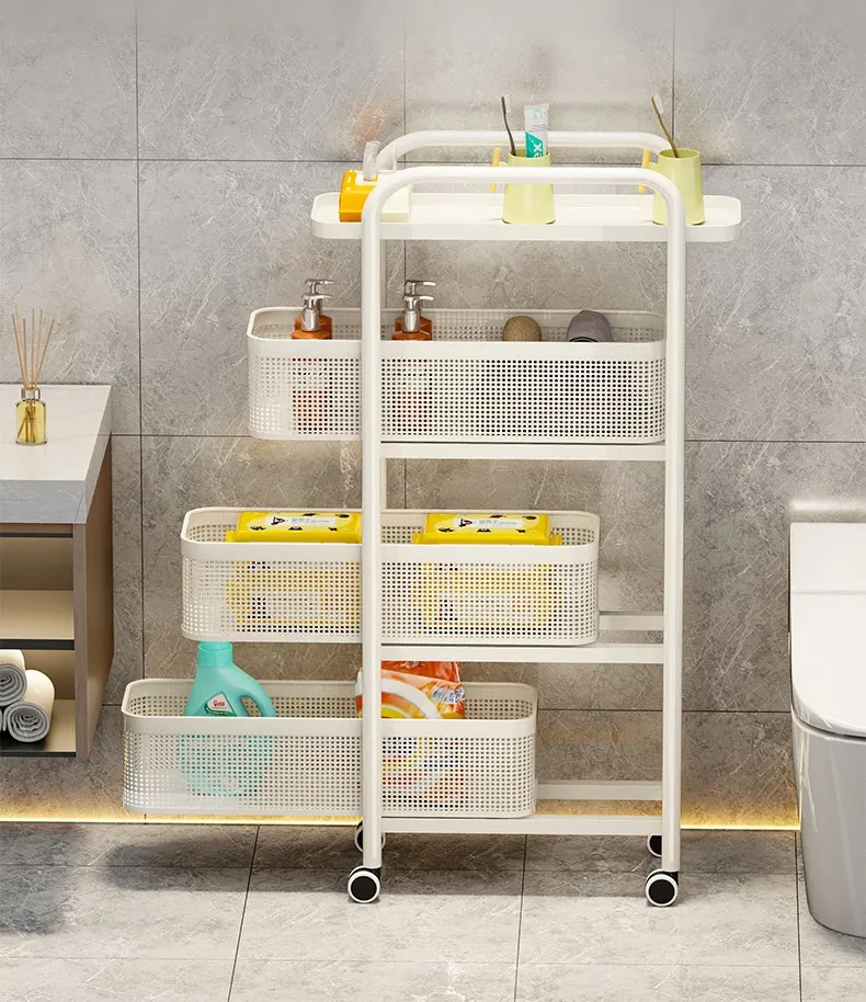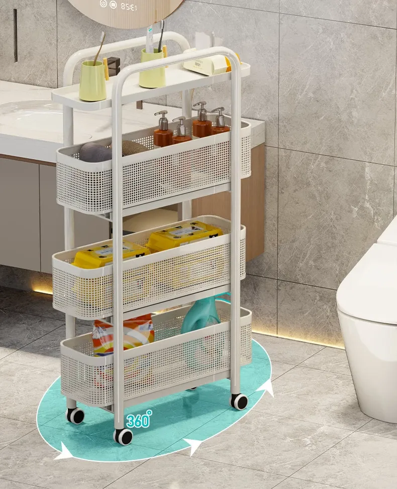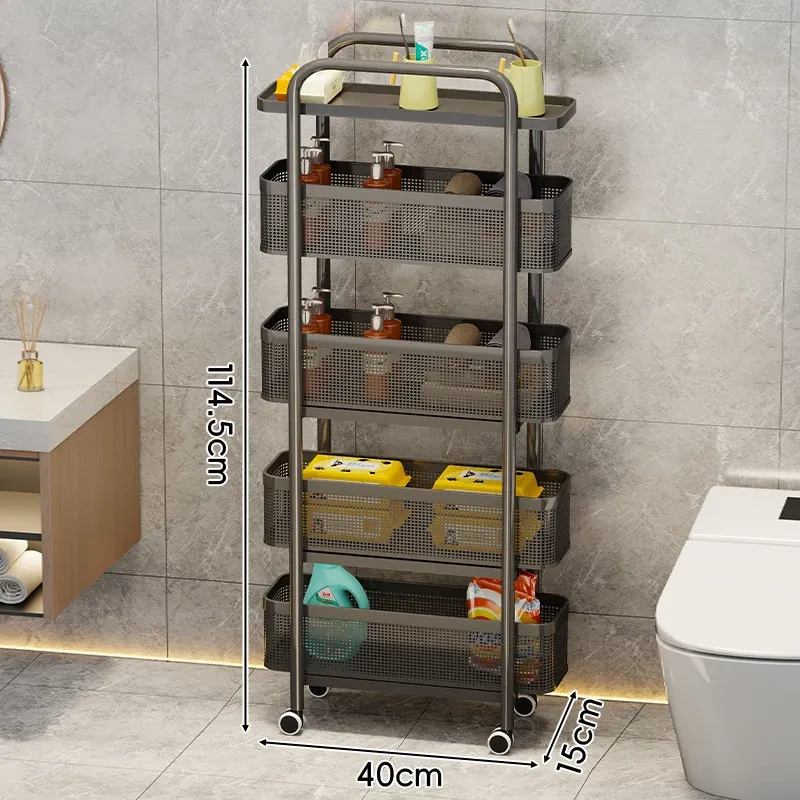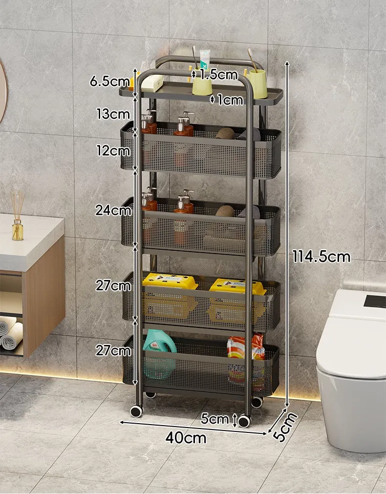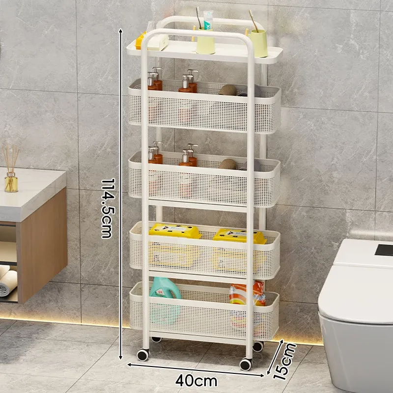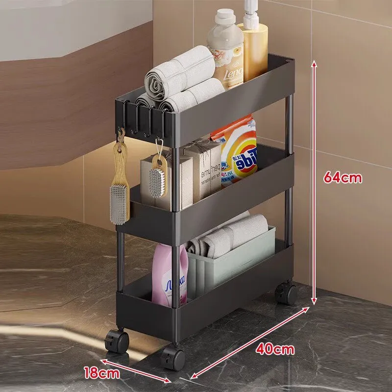 バスルーム用スリム収納ラック - 狭い隙間にもぴったりフィット!超薄型の立てかけ式キャスター付き小型ラック。キッチンやトイレの壁際に最適な収納ソリューション!整理整頓を簡単に実現します。