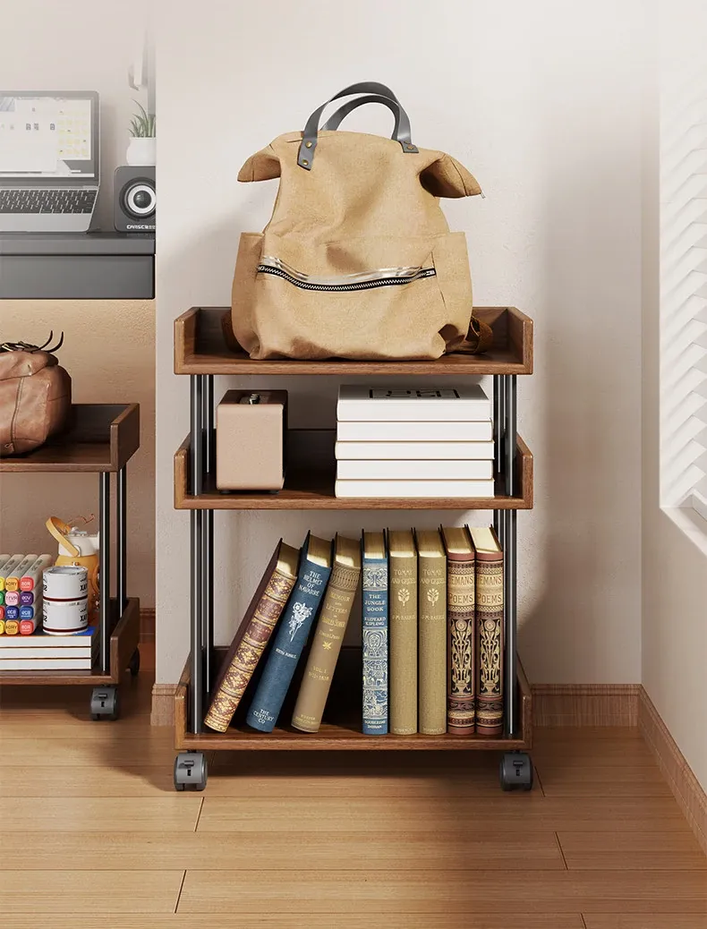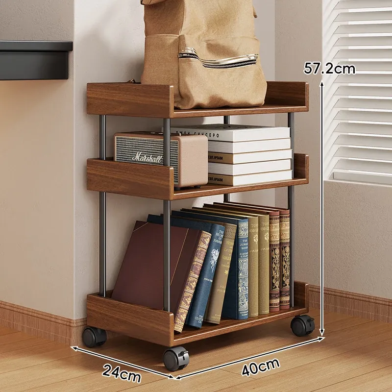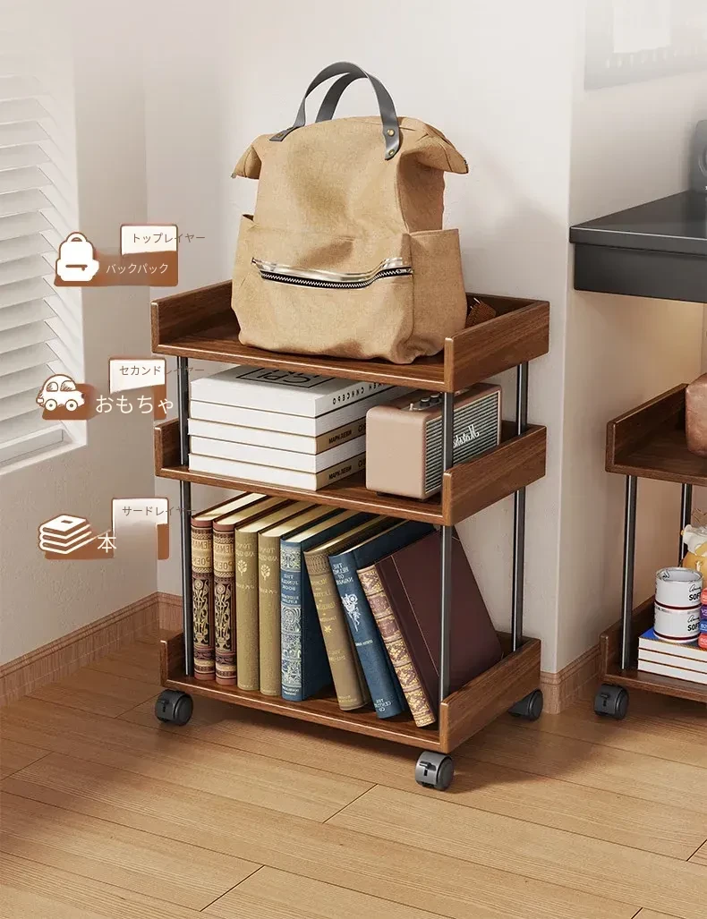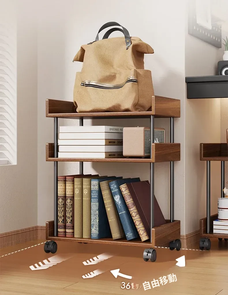 天然木製ブックラック 移動式書籍収納カート 机下スペース活用!キャスター付きの便利な書棚で、あなたの本をオシャレに整理!デスクサイドの必需品、居場所を作り出すアイテムです!