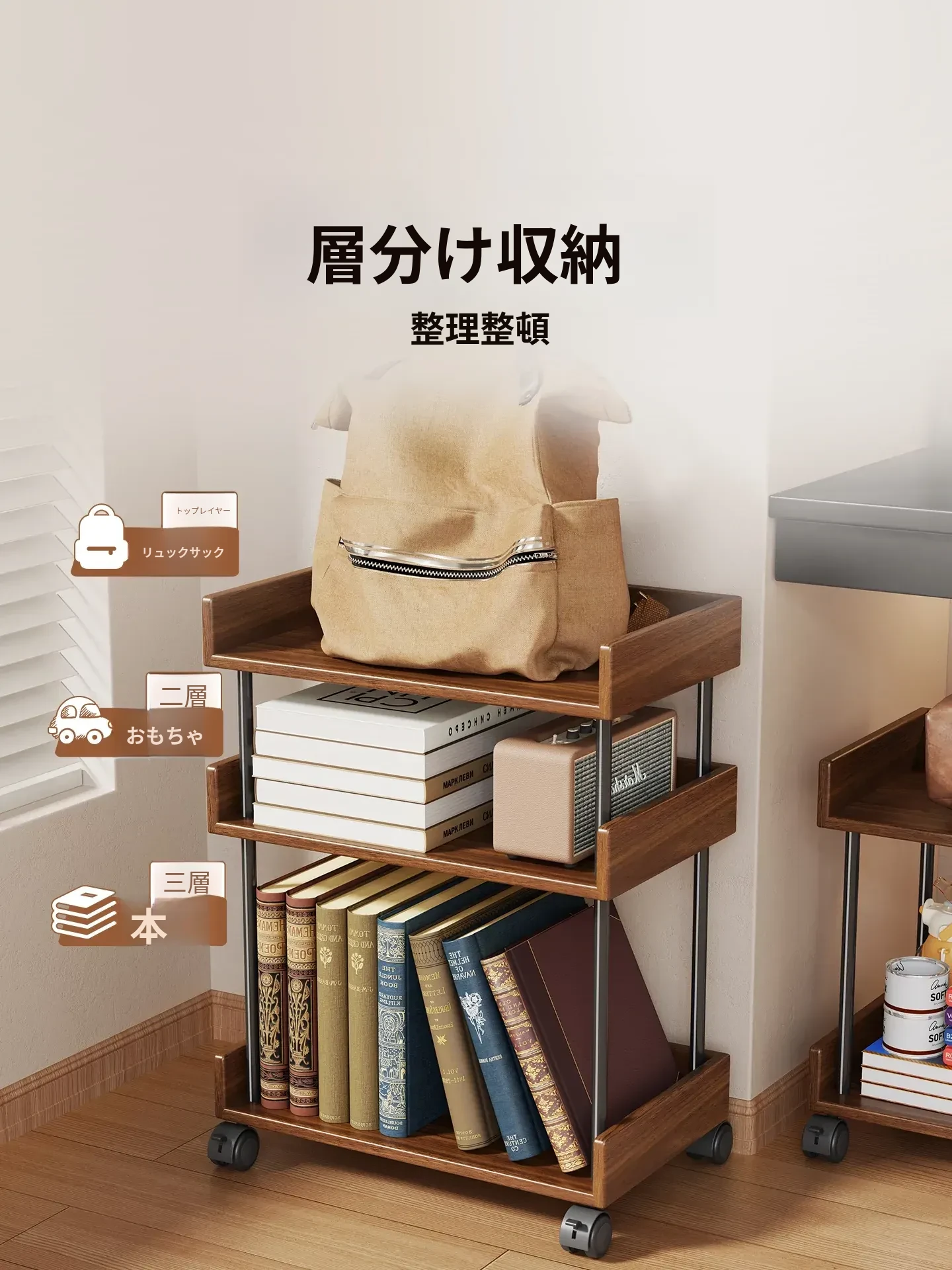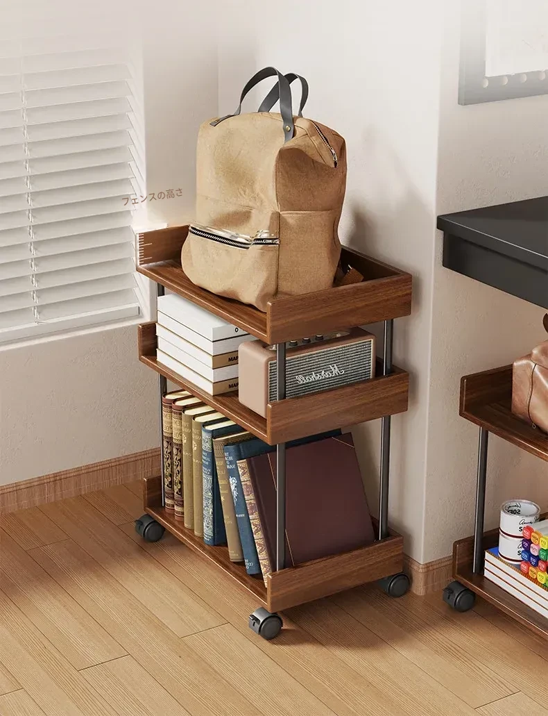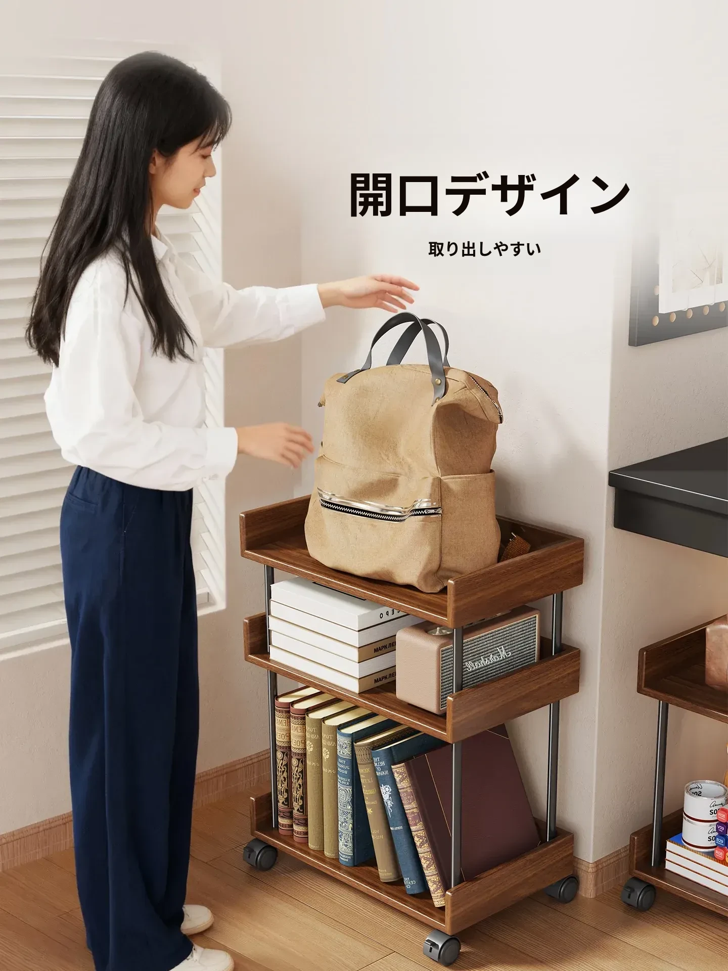 天然木製ブックラック 移動式書籍収納カート 机下スペース活用!キャスター付きの便利な書棚で、あなたの本をオシャレに整理!デスクサイドの必需品、居場所を作り出すアイテムです!