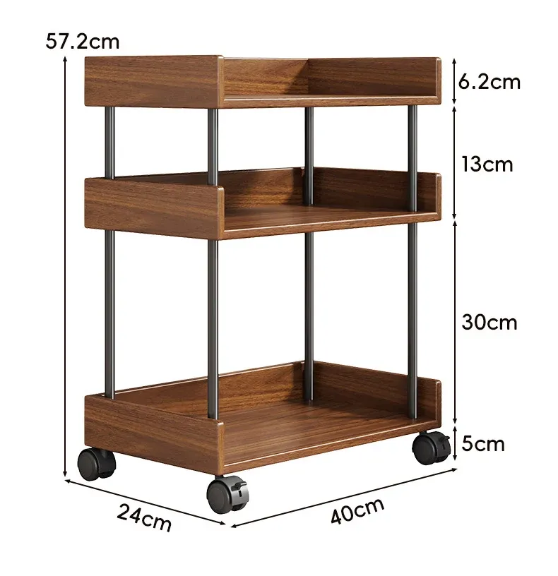 ウォールナット色キャスター付き(3段)【輸入無垢材】