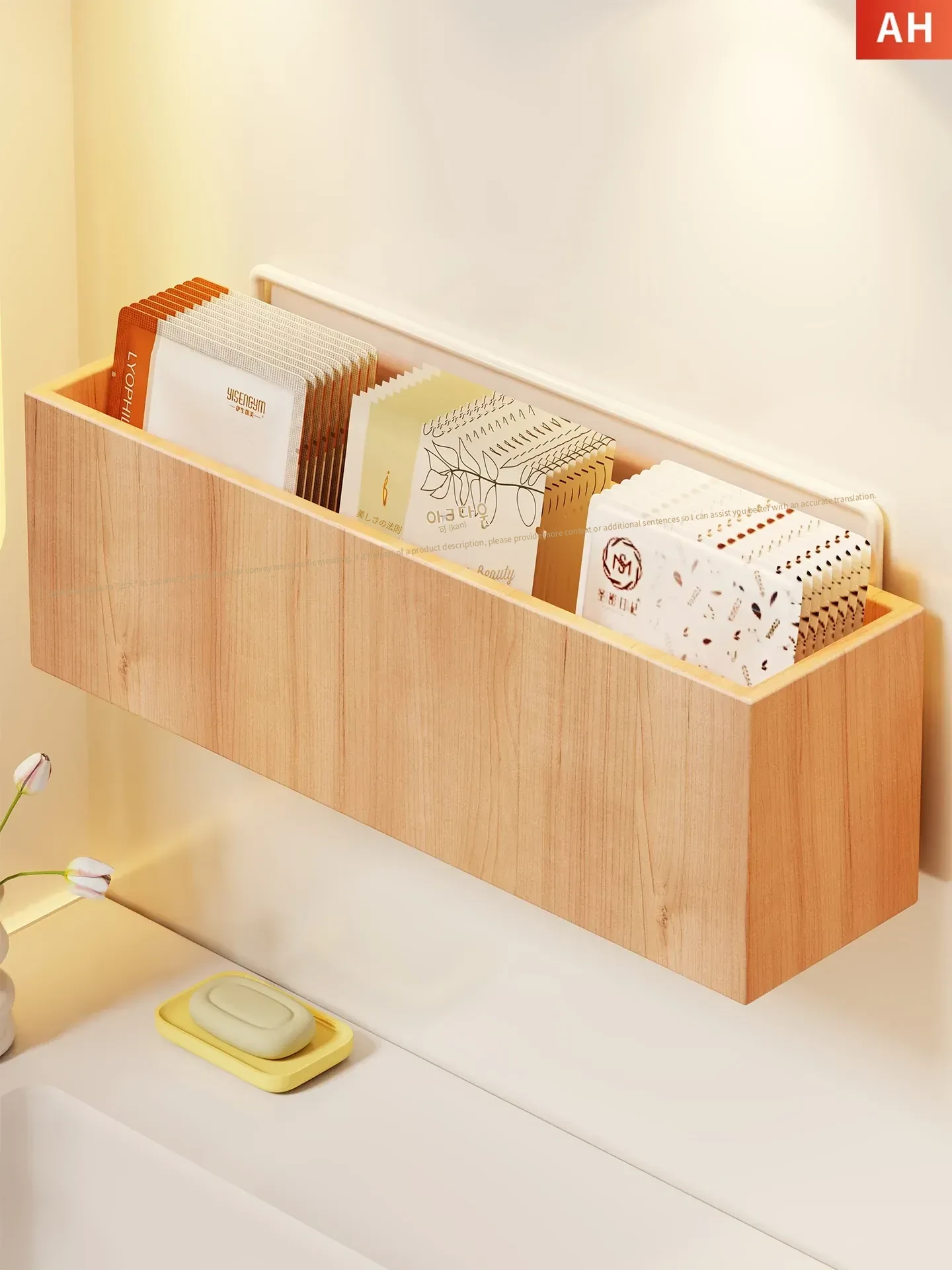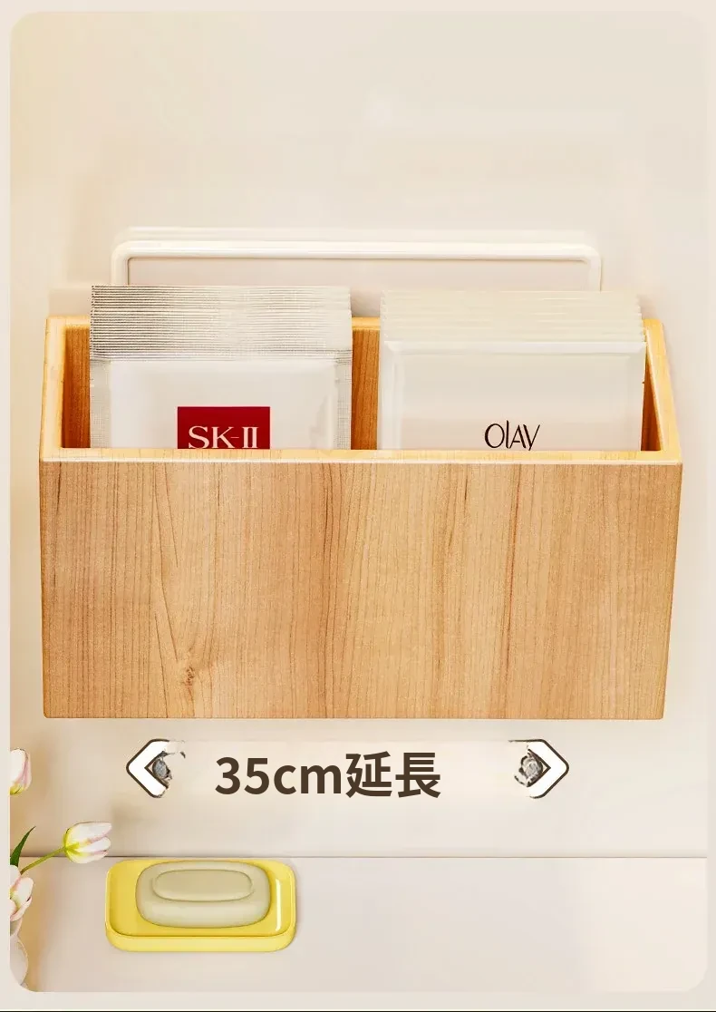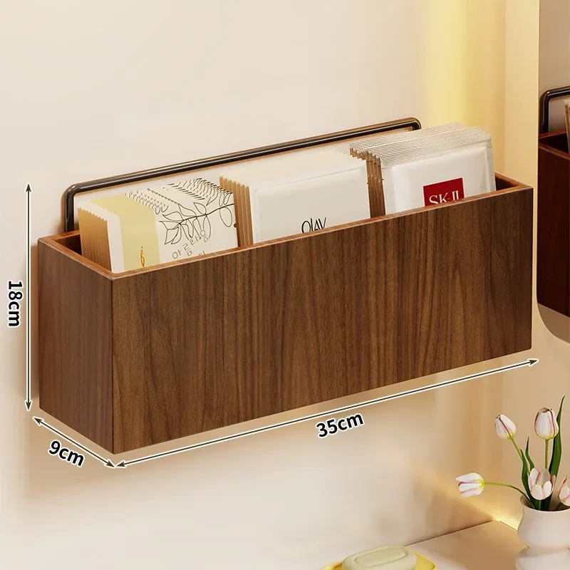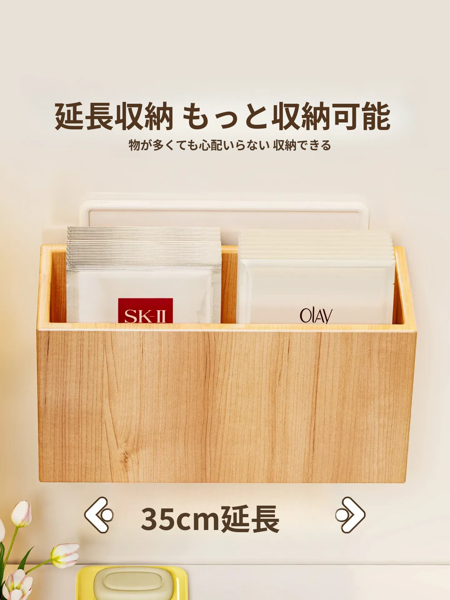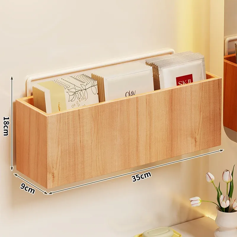 天然木製フェイスマスク収納ボックス&ミラーキャビネット - 化粧品やリップスティックの整理に最適!バスルームの壁掛け収納ラックで、あなたの美容アイテムをスタイリッシュにまとめます。