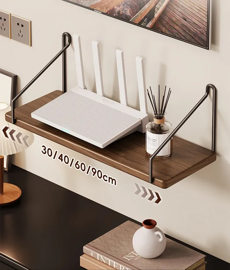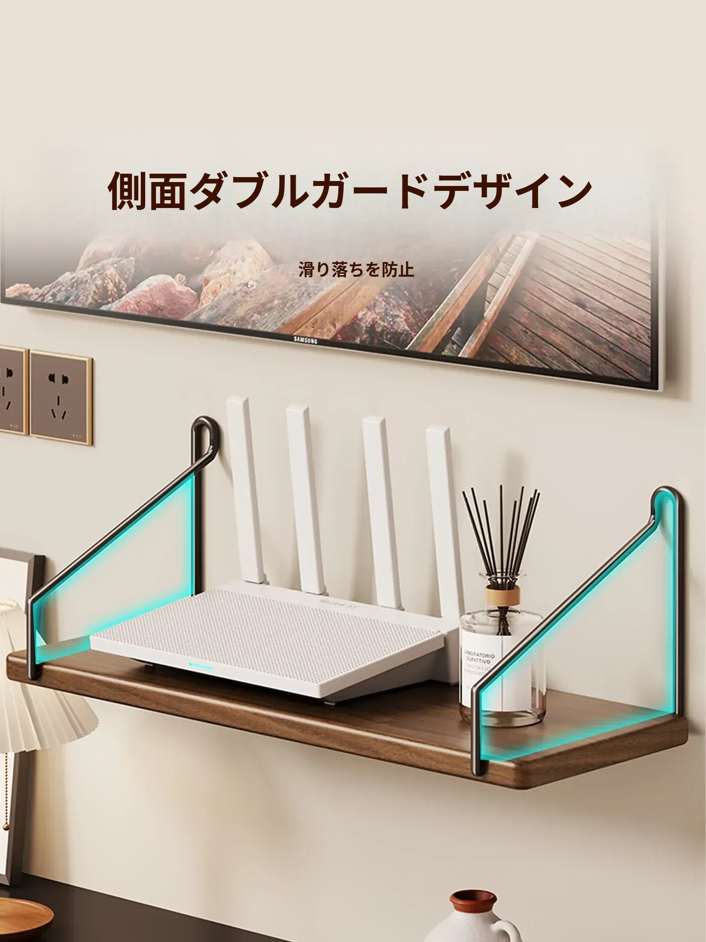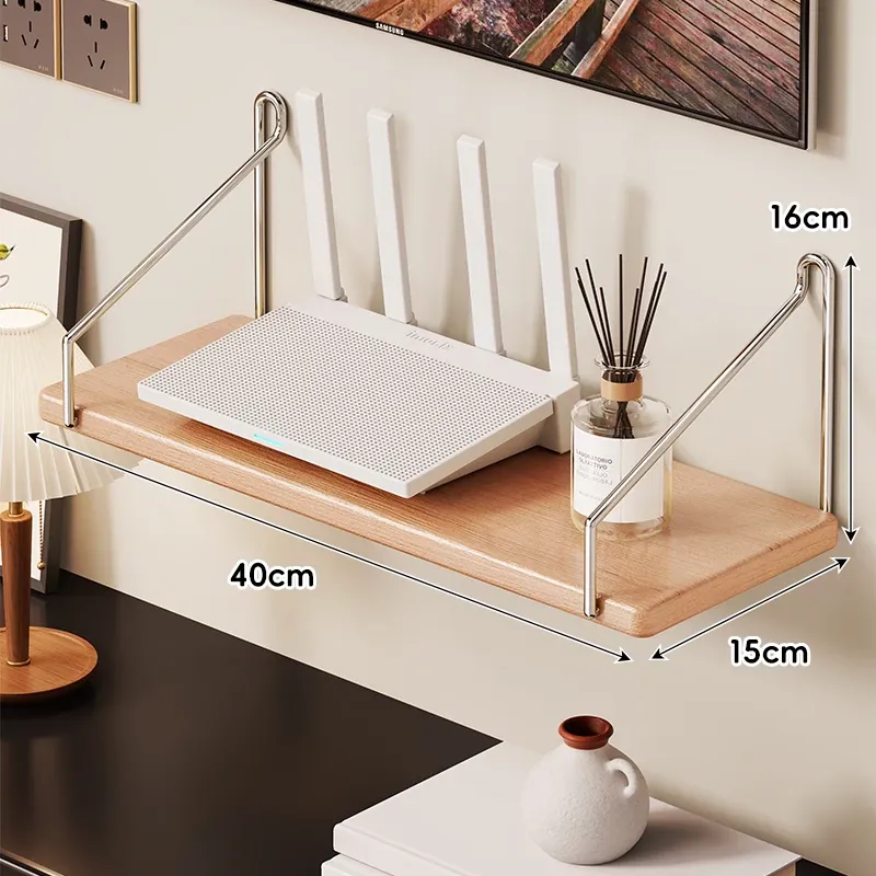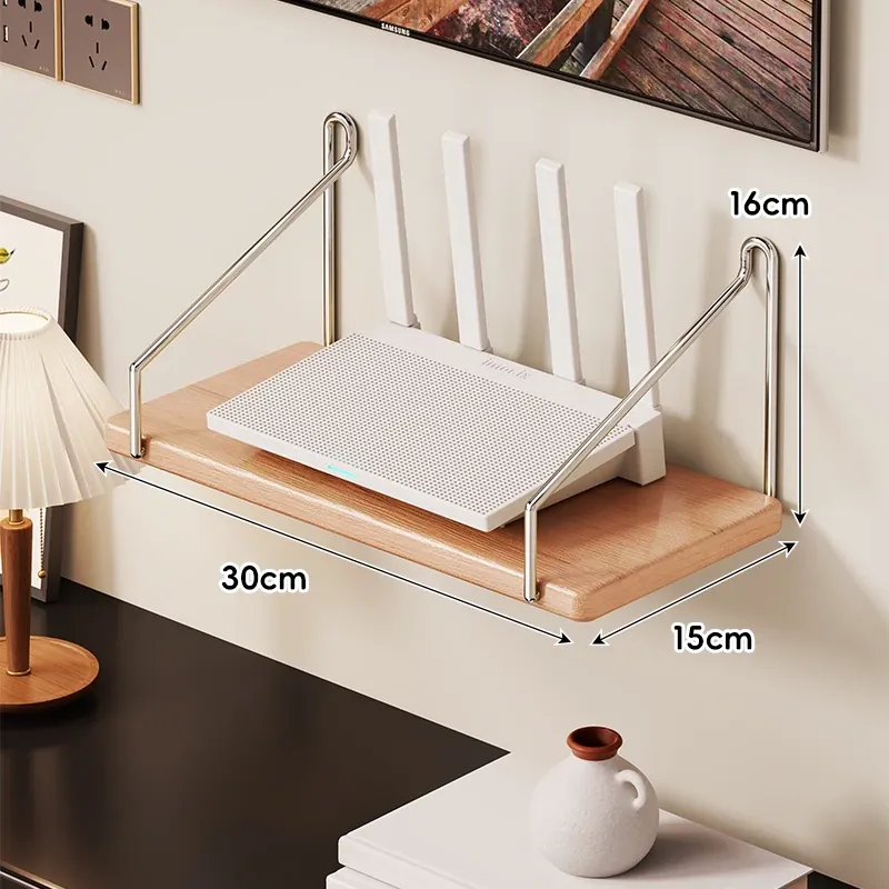 天然木製ルーター置き台 - テレビ下に最適!セットトップボックスや小物を整理する収納ボックス付き。強力なサポートで、美しいインテリアを演出!