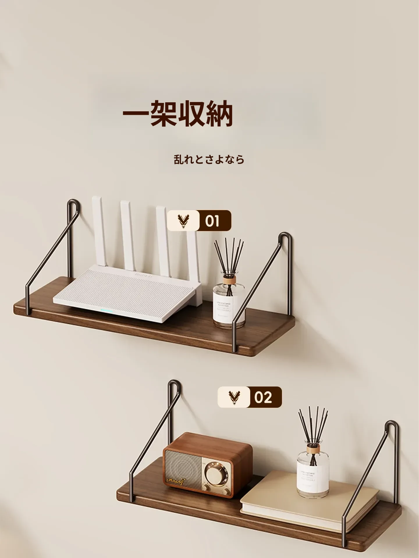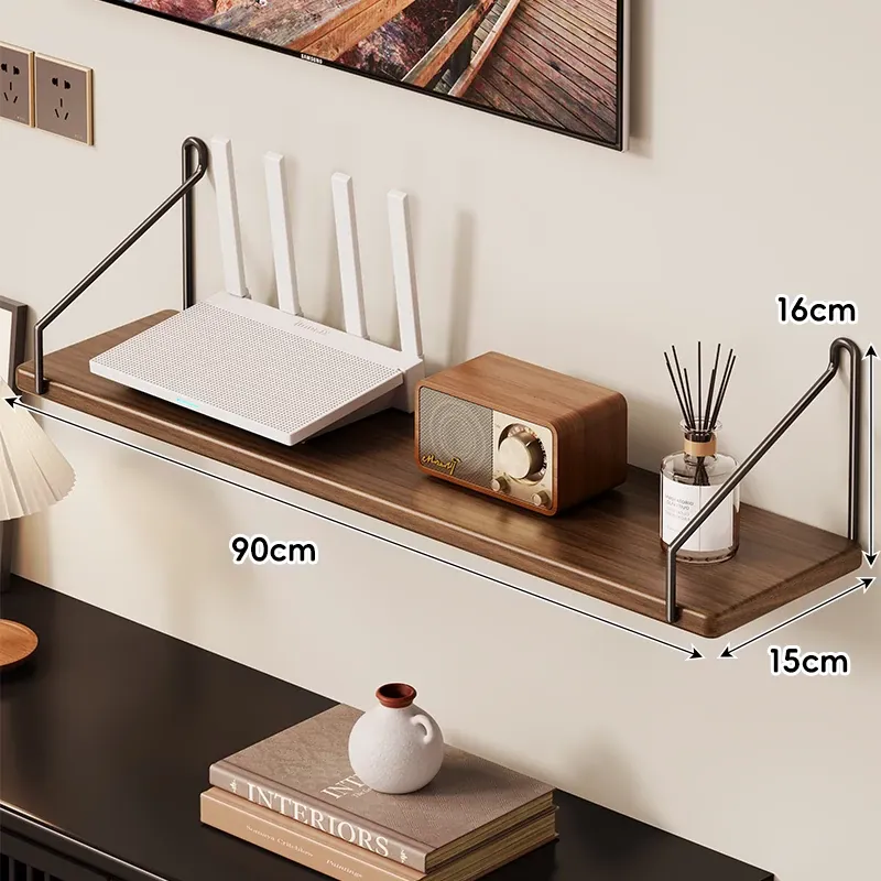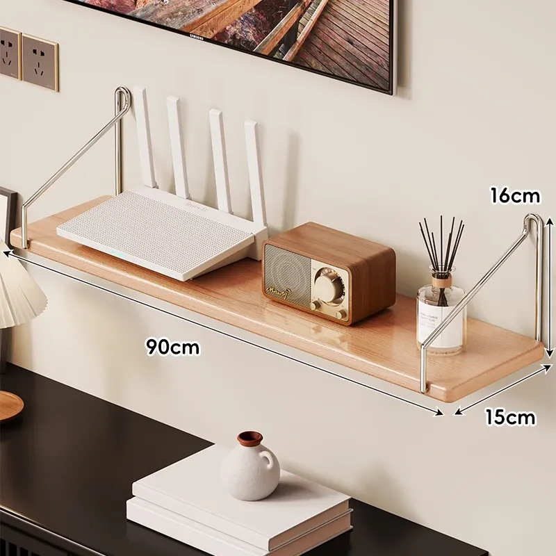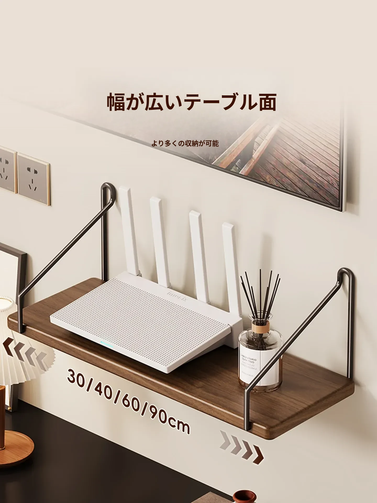 天然木製ルーター置き台 - テレビ下に最適!セットトップボックスや小物を整理する収納ボックス付き。強力なサポートで、美しいインテリアを演出!